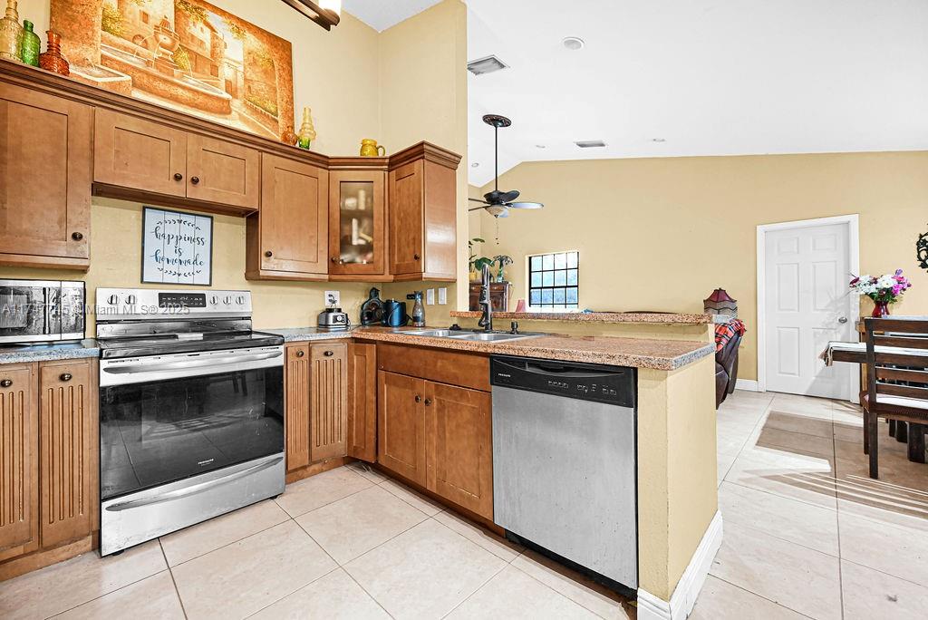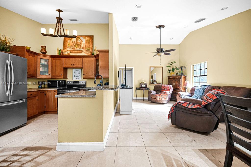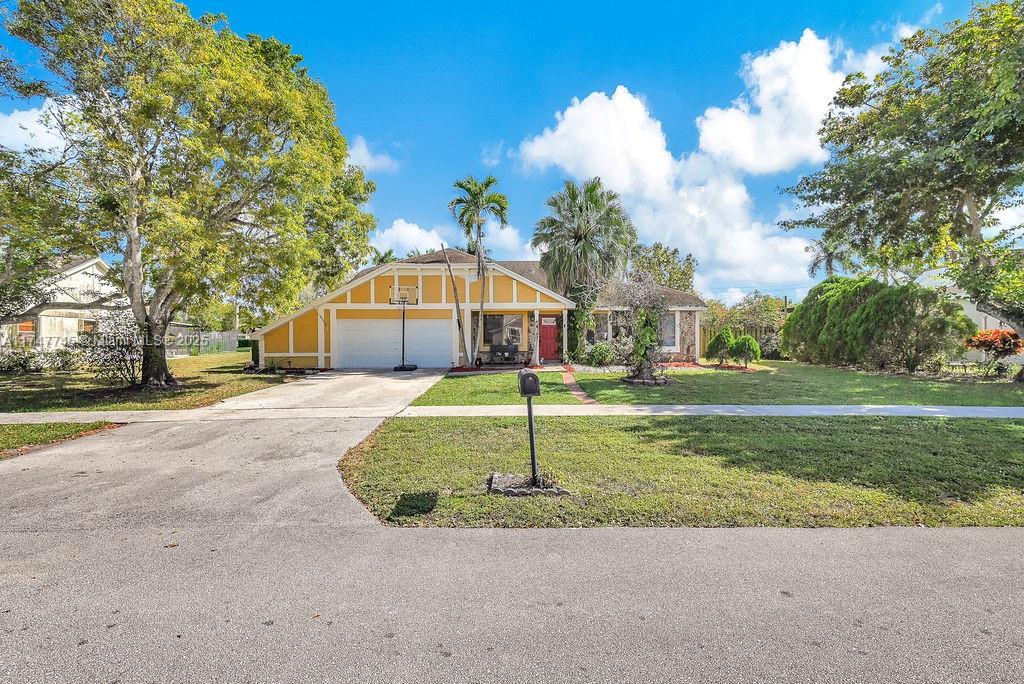 Discover this rare home in the sought-after New River Estates, within Weston city limits, offering access to top-rated "A" schools and benefiting from Sunrise tax rates! Situated on an expansive over 15,000 sq ft lot, this well-maintained home features a practical floor plan with 3 spacious bedrooms and a den that can be a 4th bedroom, abundant natural light, and vaulted ceilings in the living/dining area. The kitchen has stainless steel appliances, granite countertops, and an eat-in bar. The Primary Bedroom includes a walk-in closet and an en-suite bath. The backyard offers a private space with room for a pool and more, along with ample parking for an RV/boat. This family-friendly neighborhood has an HOA of only $180/year with minimal restrictions and no approval process required.