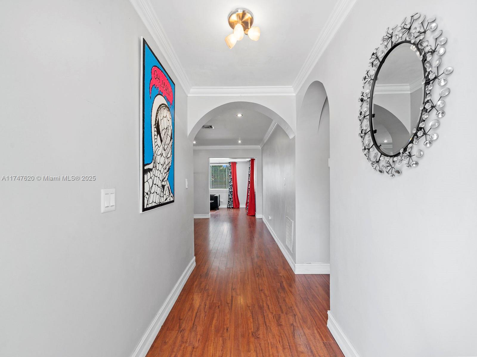 This 3-bed, 2-bath, one-story home nestled in the enchanting Pines Village is perfect for those seeking both style and convenience, and no HOA! The kitchen features a copper anti-bacterial sink and sleek finishes, while crown molding, LED recessed lighting, and tray ceilings in the master suite add an elegant touch. The home has travertine flooring in the kitchen and baths, with durable wood laminate throughout. A 2023 Rheem AC ensures year-round comfort, and hurricane impact doors provide peace of mind. Enjoy a private backyard retreat with CoolDeck patio flooring, tiki hut, and a refreshing pool. A spacious 1-car garage offers extra storage. Conveniently located near Pines Charter "A" Schools, the Turnpike, and Pembroke Pines Blvd, this gem won’t last in this fast-selling neighborhood!