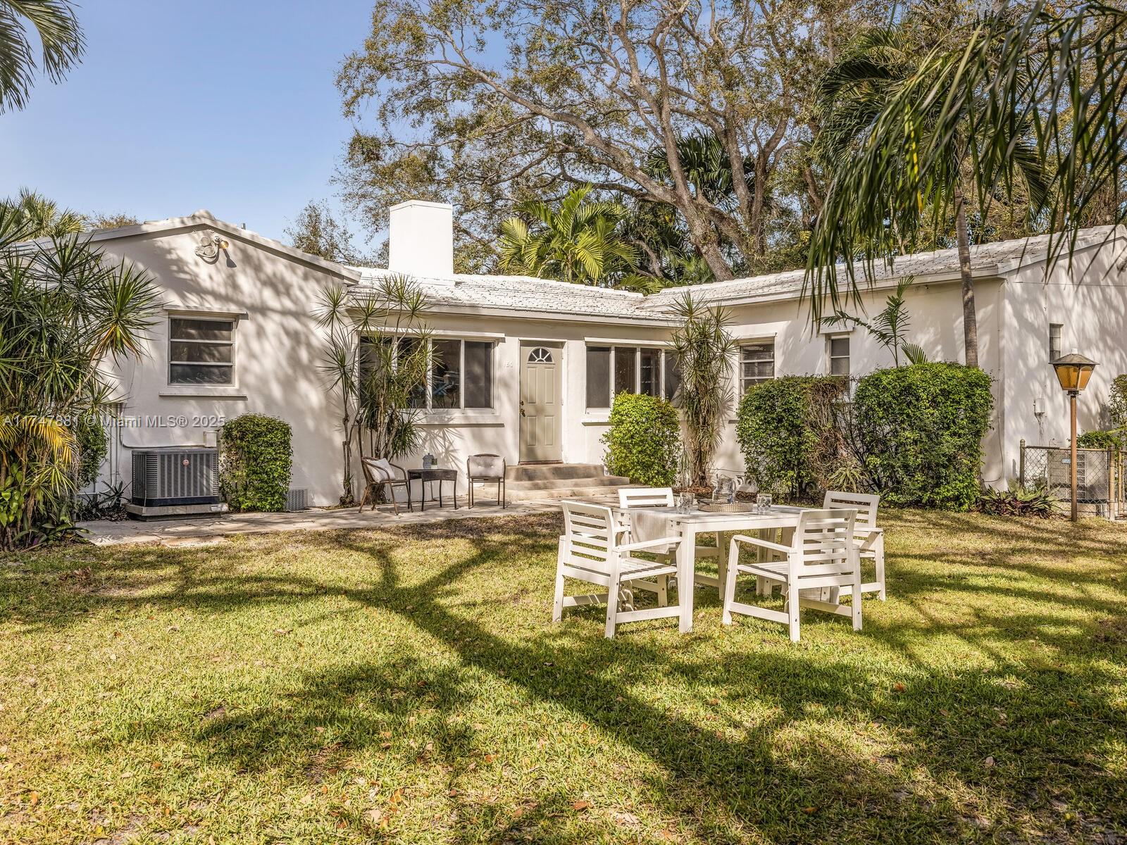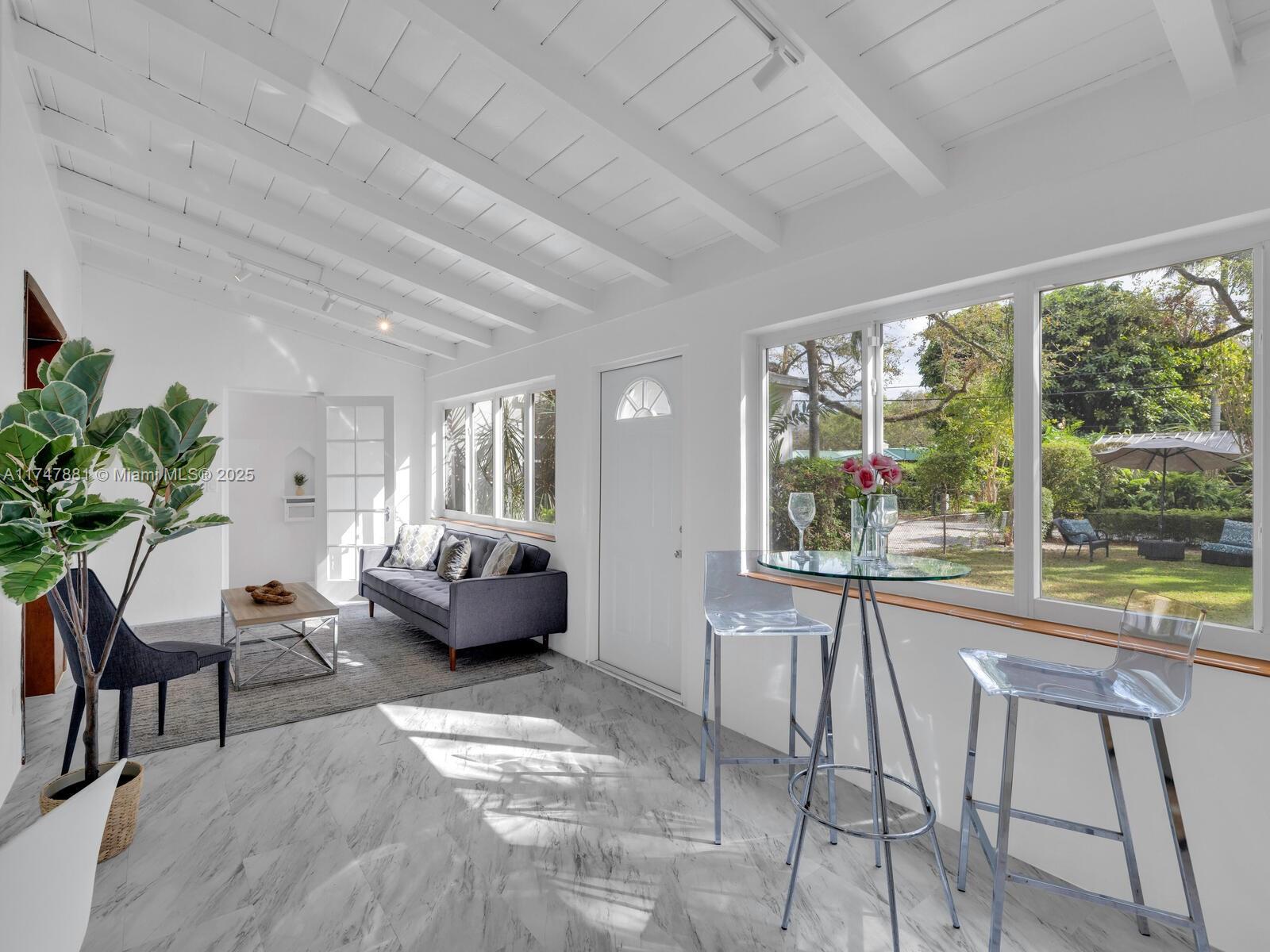 Welcome to Ten Oaks! Create your own dream home in this lovingly maintained, spacious early mid-century home on an oversized 12,900 SF lot enveloped by ten majestic oak trees. Enter into the grand vaulted great room with elegant formal dining, spacious kitchen, and bright sunroom den opening to the huge rear gardens. Three spacious bedrooms and two bathrooms in the main house, plus a separate detached 200+ SF bonus unit with powder room-- great as a home office, gym, zen den, or guest nook. Great features: timeless character and period charm, new roof (2024), vintage fireplace, retro custom built-ins, volume ceilings, plus a one-car garage, an additional carport, and bonus rear alley driveway. All in an amazing downtown Miami Shores non-flood zone location, with upside galore!
