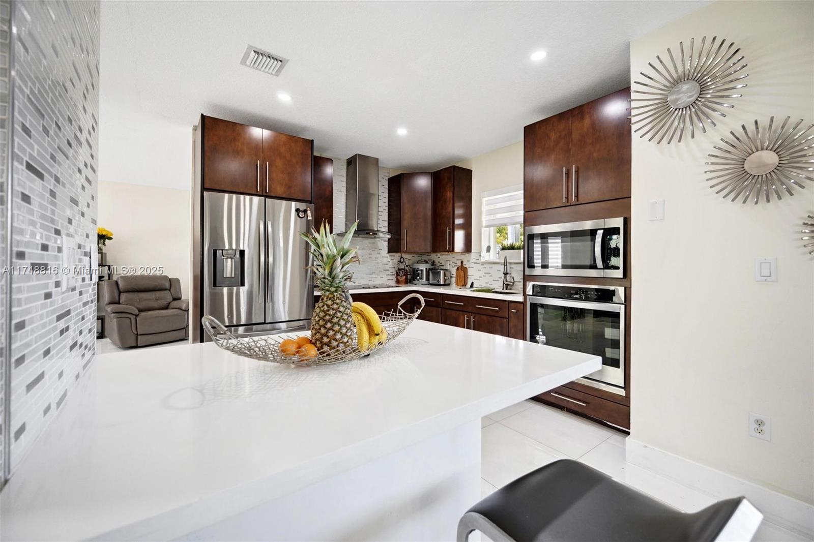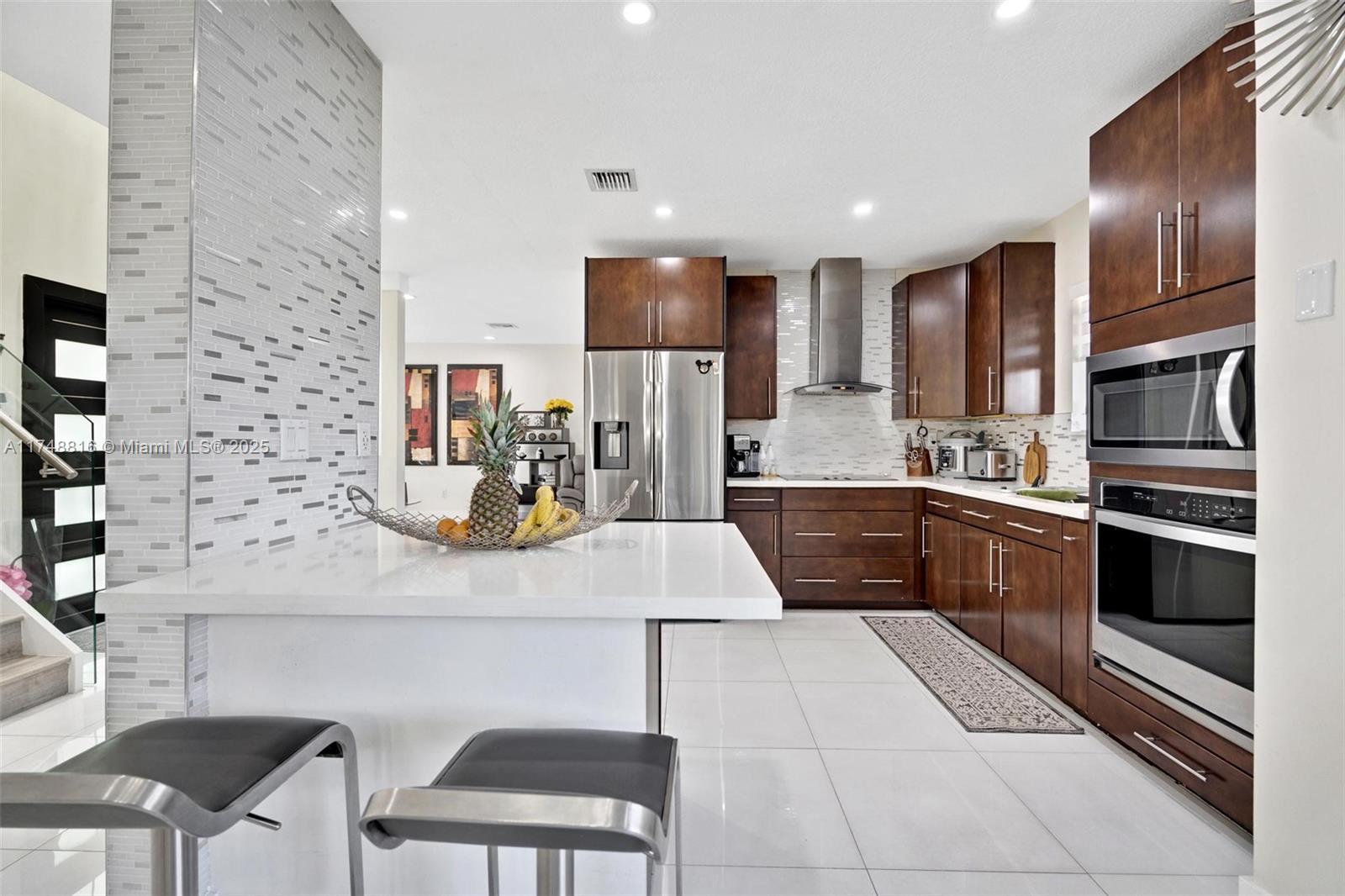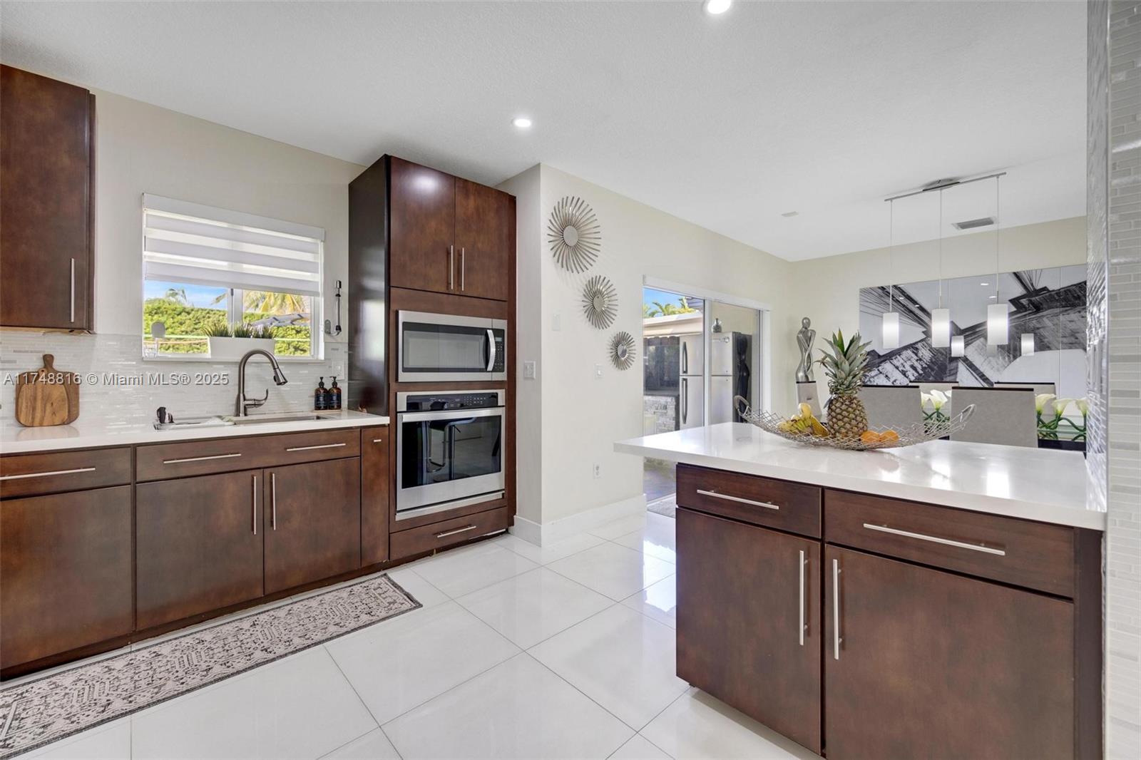 PRICED TO SELL!!! Welcome to this stunning two-story home tastefully remodeled in the highly sought-after community of Pelican Bay at Old Cutler Lakes. This beautifully and recently designed residence offers 4 bedrooms, 3 bathrooms and spacious living and family rooms, providing ample rooms for everyone. The first floor features an impressive gourmet kitchen with granite countertops, stylish backsplash, stainless steel appliances, with a brightly lite breakfast nook. Garage has been converted into a 1 bedroom & full bath currently used as a guest room. Formal dining area, laundry room, AC less than 5 years old and newly upgraded patio with outside kitchen and above ground jacuzzi perfect for entertaining.