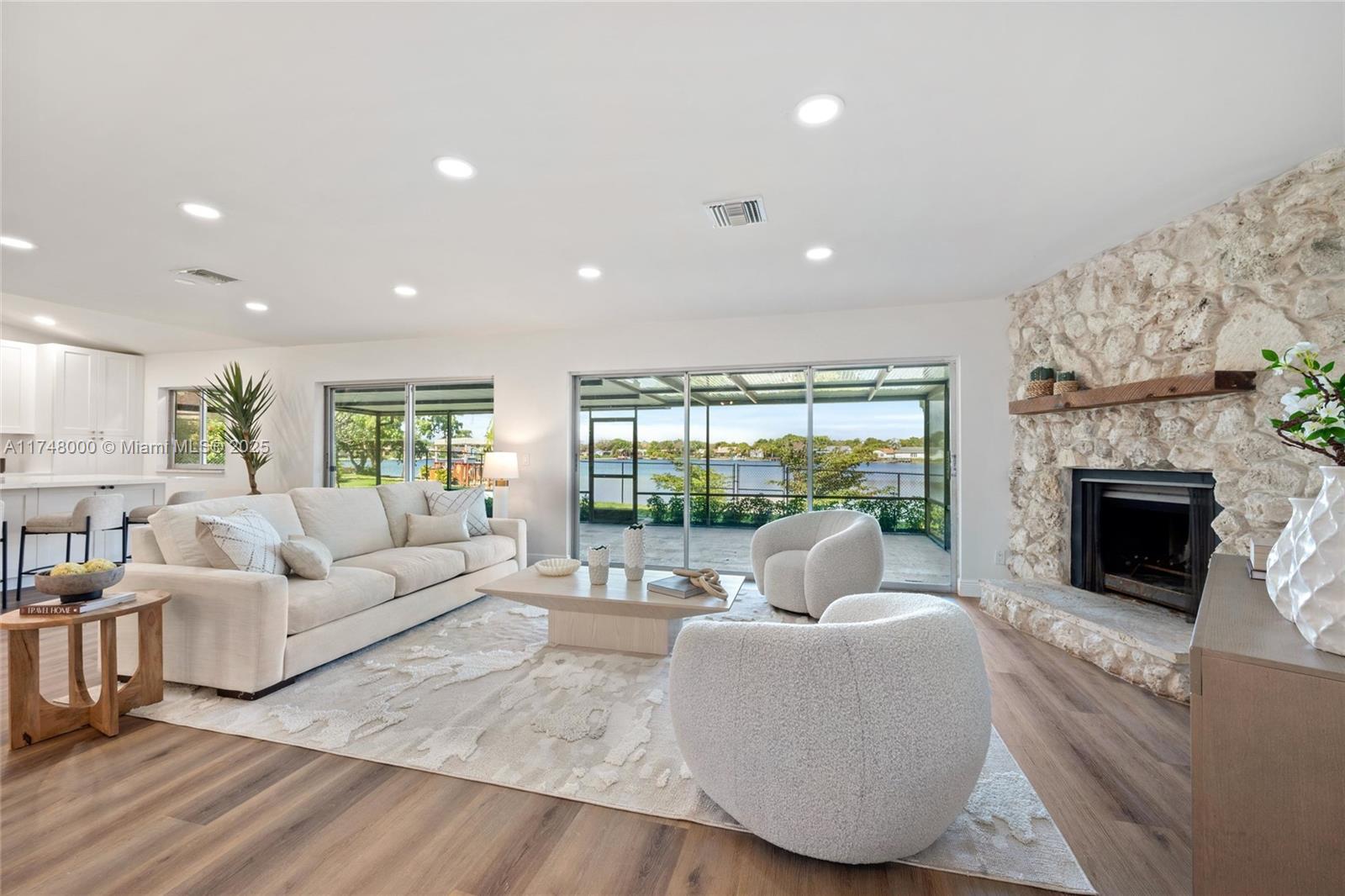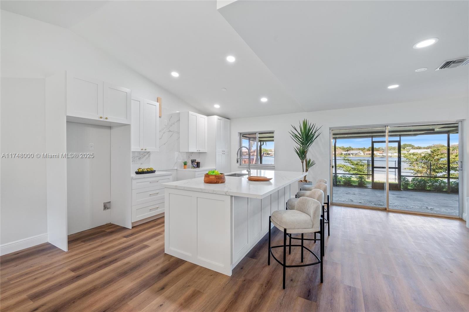 Stunningly renovated lakefront home on a massive corner lot in the rarely available Stirling Springs of Cooper City. When you step inside, you'll be struck by the vaulted ceilings and a renovated open-concept kitchen and living spaces, showcasing lake views from every direction. Luxury vinyl plank flooring runs throughout, while stylish bathrooms with designer materials create a spa-like feel. A large screened patio overlooks the lake and opens to a fenced backyard with a private dock. This unique neighborhood offers swimming (yes, swimming), fishing, and paddle boarding on the crystal-clear, spring-fed lake. Walking distance to Houses of Worship, the Cooper City Sports Complex, and zoned for top-rated schools, including Embassy Lakes Elem. A fantastic opportunity to make this oasis yours.
