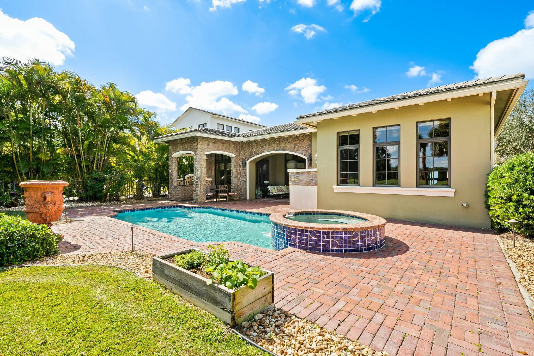 Welcome to this stunning home, located on a tranquil cul-de-sac with spectacular double fairway golf views and a spacious fenced lot. The entryway features a charming private porte-cochere and outdoor fireplace, offering a luxurious welcome. Inside, the home is beautifully renovated with elegant wood doors and flooring across the living areas, enhancing its warmth and grandeur. The gourmet kitchen is a chef's dream, equipped with high-end Wolf induction cooktop and ovens, a Miele dishwasher, a SubZero refrigerator, and ample storage with pull-out drawers and a large island perfect for entertaining. This thoughtfully designed single-story open floor plan includes a guest wing at the front and an expansive primary suite at the rear, both offering delightful views of the pool & golf course.