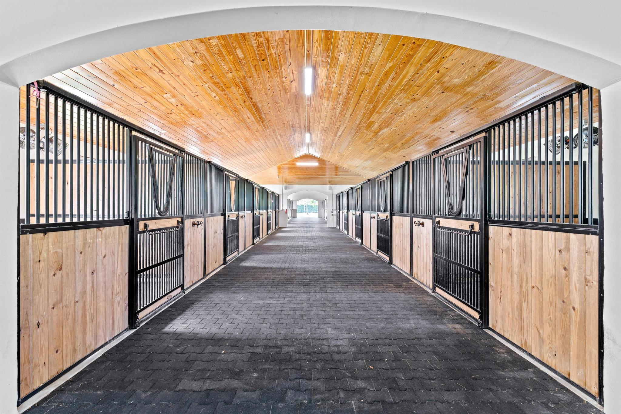 Enjoy the best of both worlds on this exceptional 10+-acre equestrian property, ideally located just minutes from Global and WEF while offering the tranquility of Wellington's farm life. This property combines top-tier equestrian amenities with luxurious living, providing everything needed for you and your horses. The 26-stall center-aisle barn is the standout feature of this property, equipped with 6 wash stalls, 2 tack rooms, a feed room, and a lounge. A separate building offers even more versatility, with a second lounge, 2 bathrooms, an oversized laundry room, and 2 spacious 2-bedroom, 1-bathroom apartments. Additionally, a huge storage area provides ample space for hay, shavings, tractors, golf carts, jumps, and farm equipment. Other equestrian facilities include 2 all weather arenas