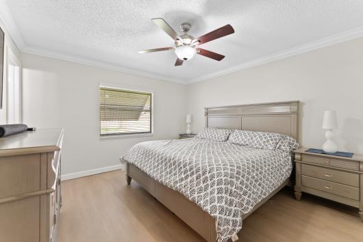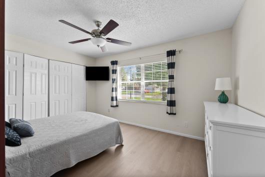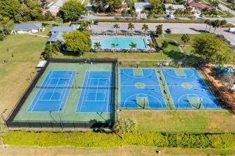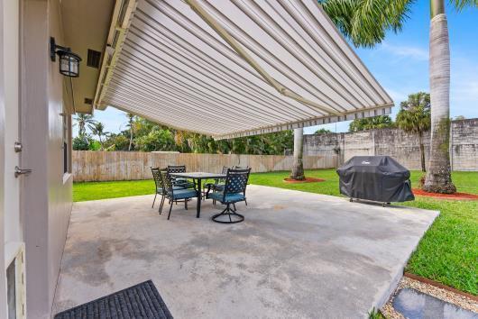 Welcome to this beautifully remodeled 2/2 home with large den/office in great neighborhood with low HOA fees and brand NEW ROOF. The modern kitchen has black walnut cabinetry with quartz countertops and stainless steel appliances. Bathrooms have been completely remodeled with custom cabinetry and tiling. There are endless possibilities for the additional living space that leads to your huge backyard oasis. Completely fenced yard with motorized retractable awning and dedicated firepit area has room for a pool is great for entertaining. Exterior has just been painted. Front door and garage door hurricane rated with protection for all other windows. Neighborhood amenities include pool, playground, tennis, basketball and pickleball. Great schools, shopping and restaurants.