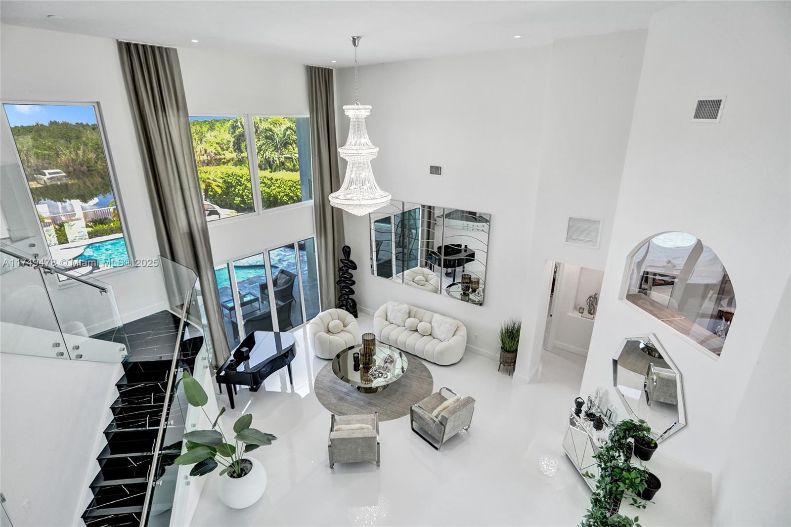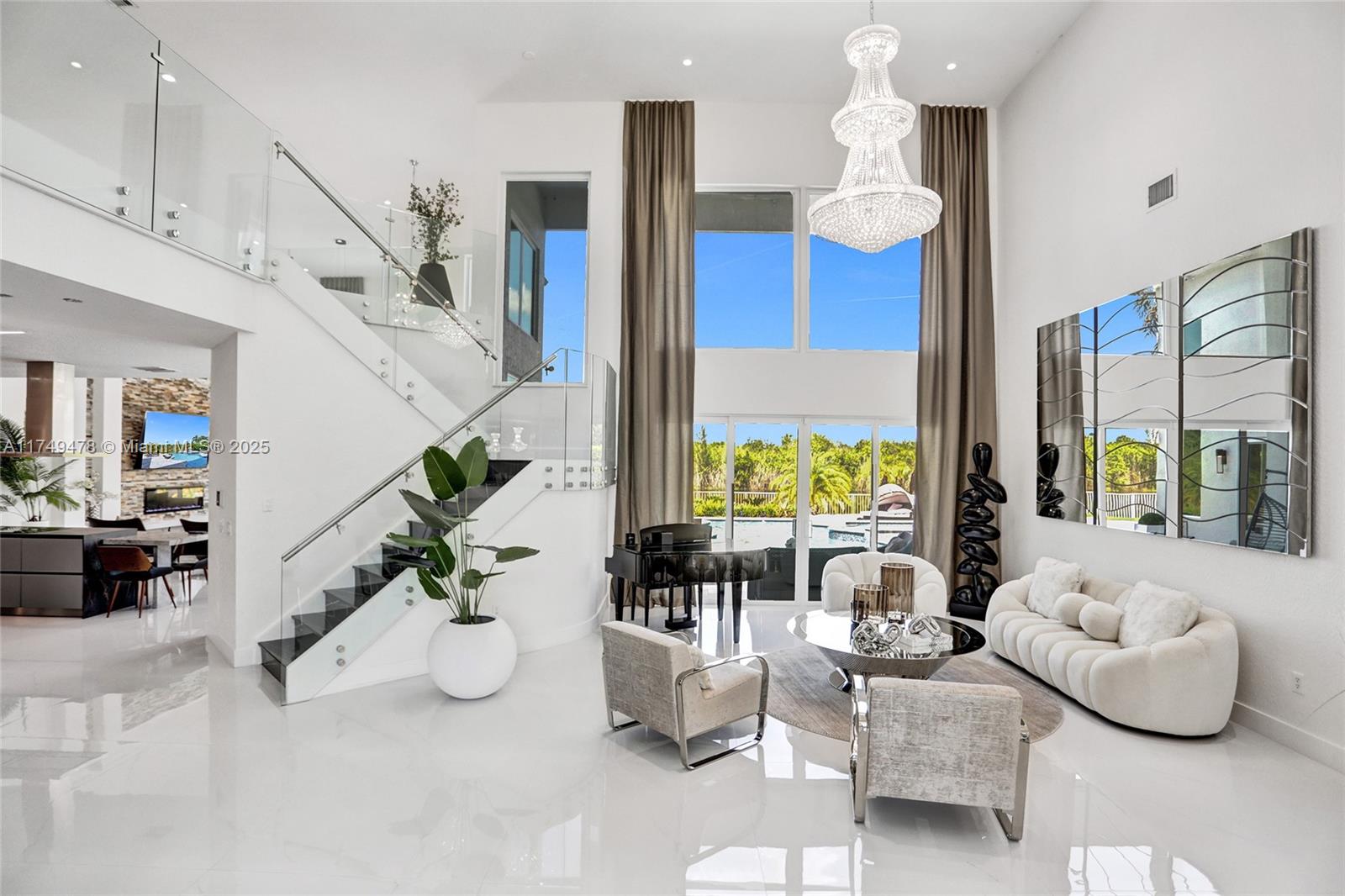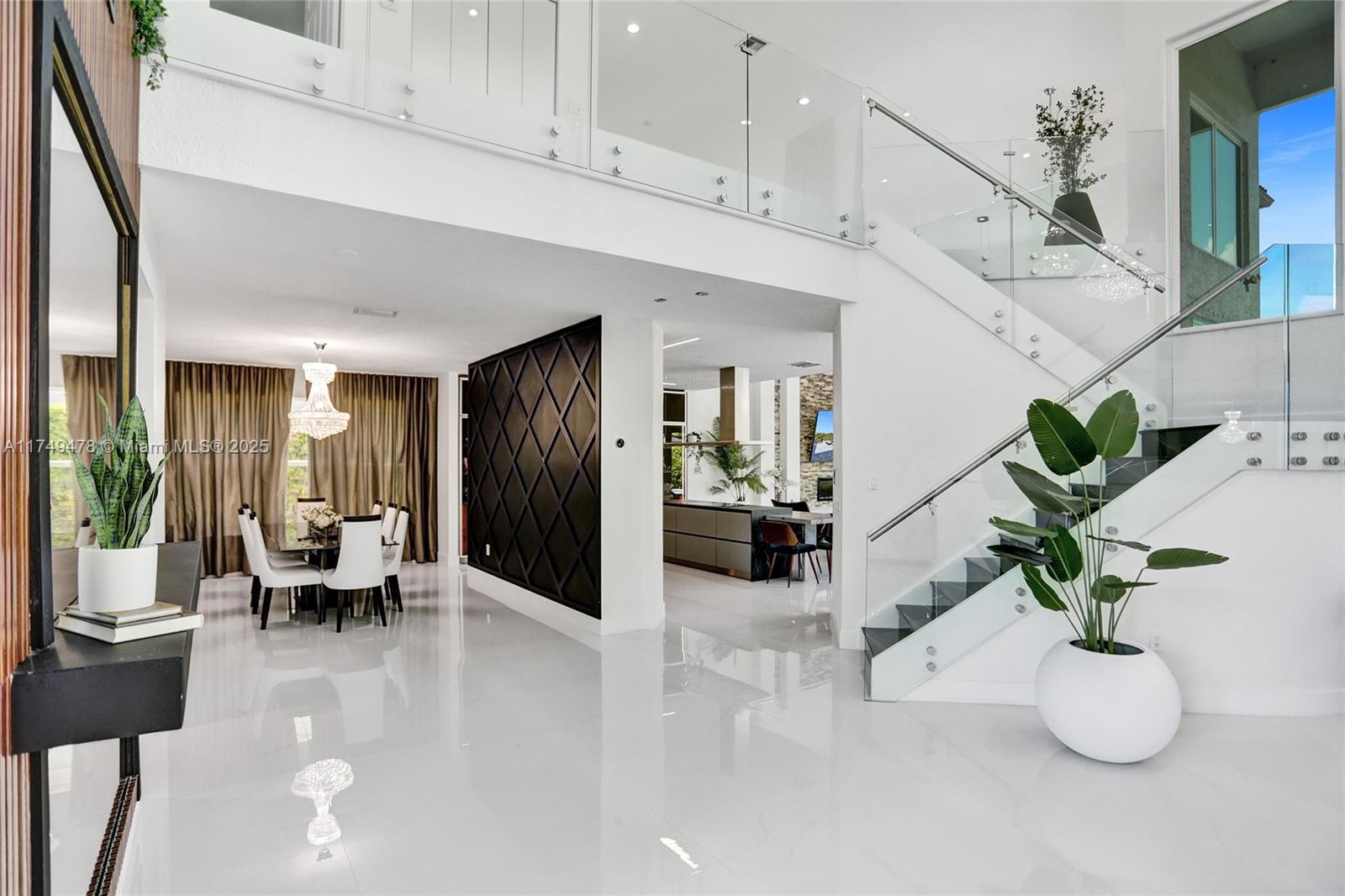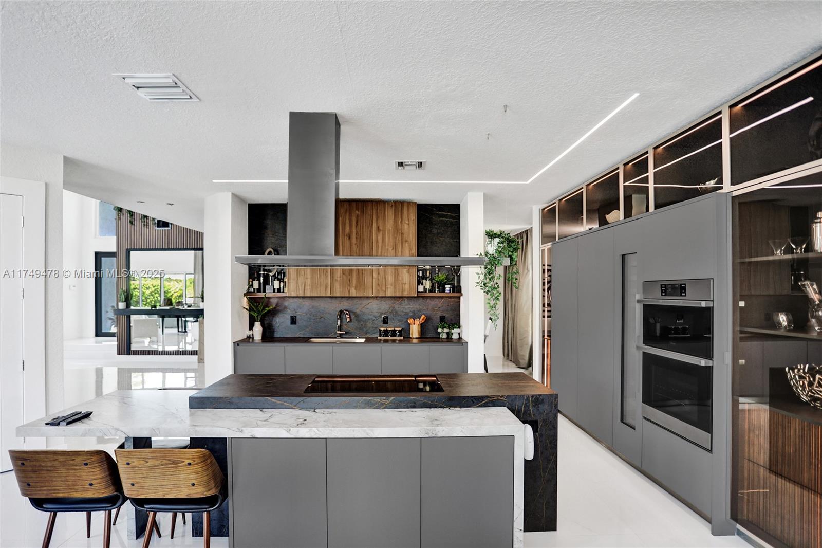 This exquisite 5-bedroom, 4-bathroom home boasts 4,512 square feet of luxurious living space and showcases meticulous renovations, including 48x48 porcelain tile, a spectacular custom kitchen equipped with top-of-the-line Dacor appliances, striking stone countertops, and sleek Italian cabinetry. The master bathroom is a serene retreat, featuring a Dual Wall-Mount Rainfall Shower and a Modern Smart Floor Mount Elongated Automatic Smart Bidet Toilet Seat. This smart home also features an Intelligent Motion Sensor LED Stairs, custom-made closets, and a picturesque pool that overlooks a tranquil canal in the prestigious Sunset Lakes community of West Miramar. Enjoy breathtaking sunsets and unparalleled upgrades in Miramar's finest community.