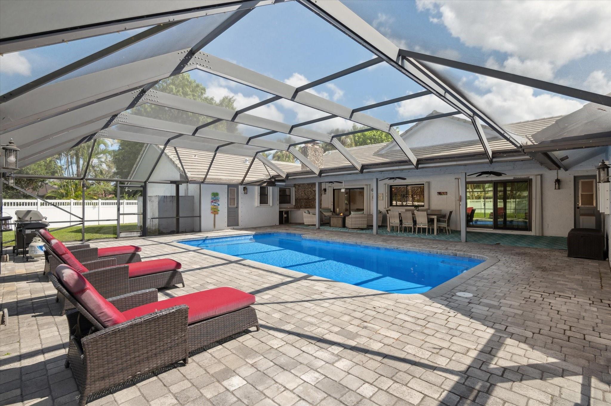Outstanding opportunity to own this expansive estate home in the sought-after Treasure Island enclave of Maplewood. Offering over 4,000 square feet of living space, this home sits on a fully fenced ½-acre lot. Features include a new roof and gutters (2021), a newly remodeled and heated pool with an extended deck (10 feet), a new screen enclosure with custom LED lighting, and a variable-speed pool pump. Additional upgrades include a newer PVC fence for privacy, storm-rated garage doors, partial impact windows and doors, accordion shutters, and new attic insulation. The home boasts a spacious layout, an updated kitchen, a split-bedroom plan, and a coral wall with a fireplace. Add your final touches to this wonderful home—no HOA! Conveniently located near top-rated schools, mall & restaurants