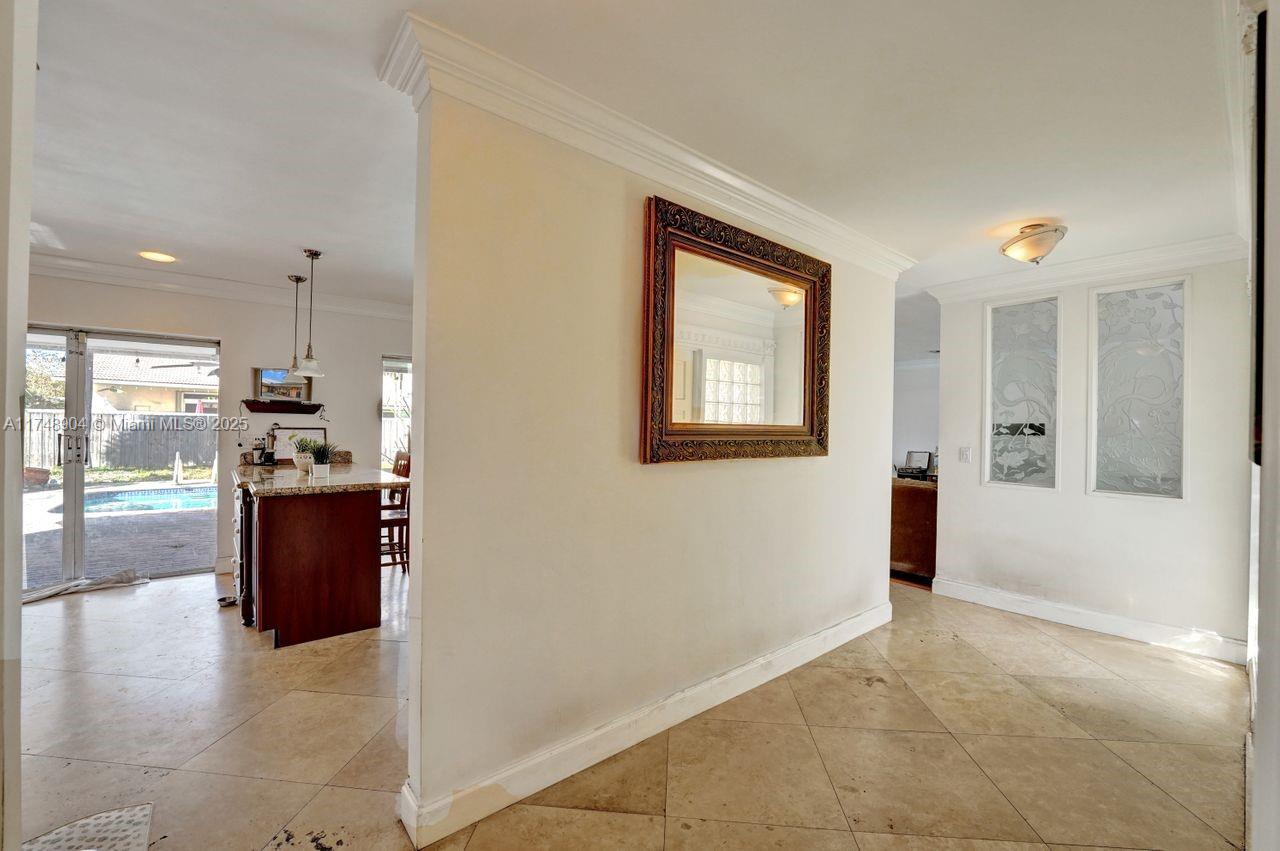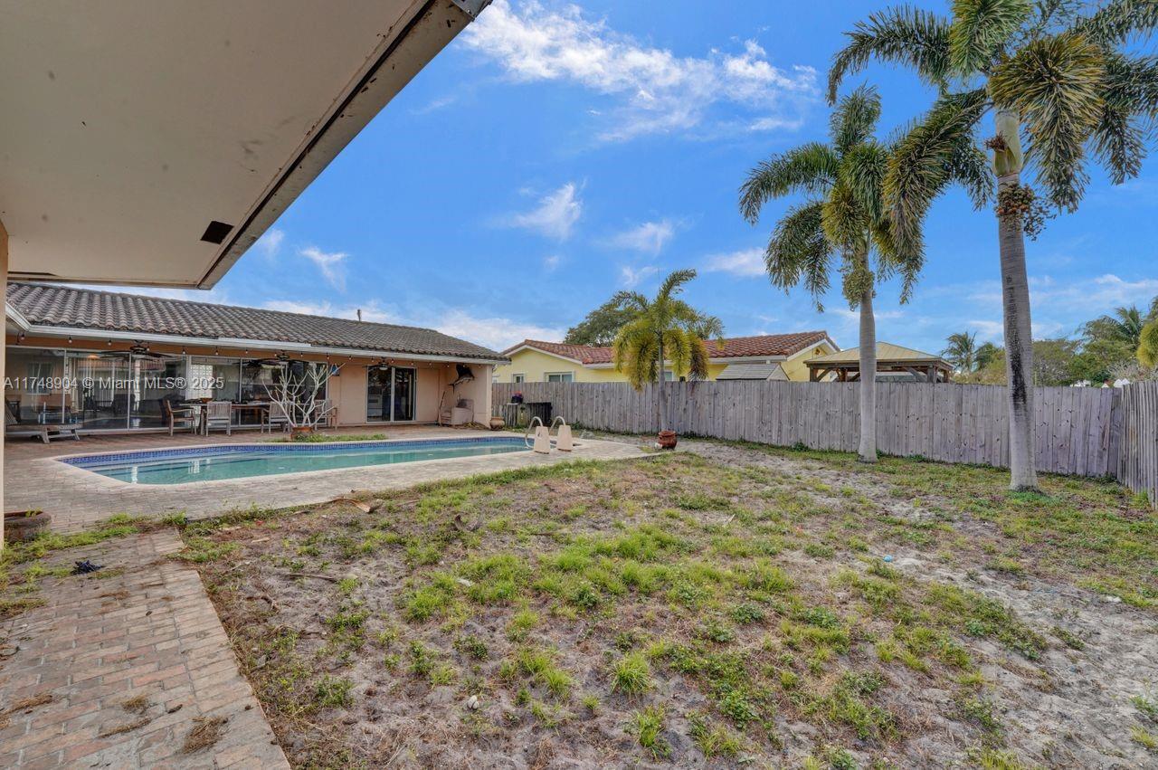 THREE BEDROOM PLUS MEDIA ROOM (COULD BE FORTH BEDROOM) IN PRIME HOLLYWOOD HILLS LOCATION ON DESIRABLE NORTH SIDE OF THE BOULEVARD ON A LOW-TRAFFIC STREET. THIS HOME IS A DIAMOND IN THE ROUGH. WITH TLC, IT WILL BE A SHINING GEM. FEATURING OPEN FLOOR PLAN WITH BEAUTIFUL VIEWS OF THE POOL AREA FROM THE LIVING ROOM AND PRIMARY BEDROOM.THREE BEDROOMS PLUS A ROOM OR A FOURTH BEDROOM. NO FLAT ROOF LIKE SIMILAR HOMES IN THE AREA. OVERSIZE GARAGE THAT WILL ACCOMMODATE TWO CARS AND A MOTORCYCLE. THE KITCHEN HAS BEEN REMODELED IN TRUE CHERRY WITH BEAUTIFUL PROFILED GRANITE COUNTERTOPS. DUAL ZONE CENTRAL AIR: BEAUTIFUL PAVED PATIO AND POOL WAS RESURFACED IN 2022. TRUE CABANA BATH ACCESSED FROM THE POOL. THE MASTER BATHROOM HAS ACCESS TO THE POOL, READY FOR YOUR IMAGINATIVE TOUCHES.