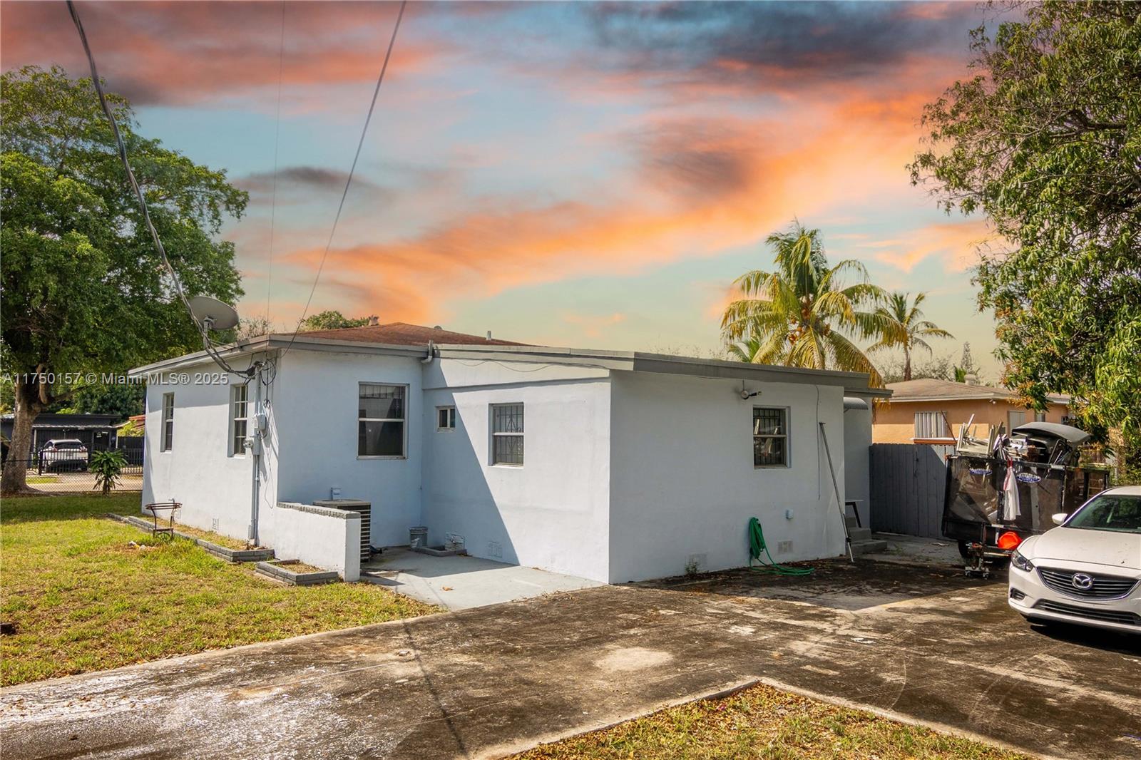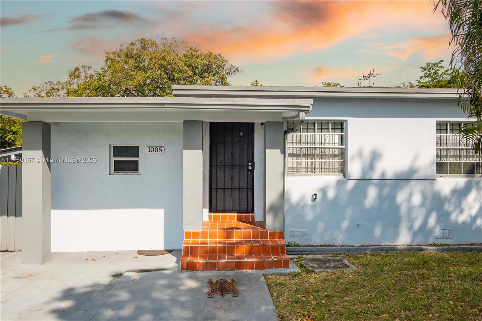 Welcome to this charming 3-bedroom, 2-bathroom home, blending classic appeal with modern comfort. This concrete block residence features tile floors, a bright and airy layout, and a well-equipped kitchen with a electric range, microwave, and refrigerator. The spacious primary suite offers a private bath, with potential for a separate guest/in-law quarters add versatility. Outside, enjoy a large fenced yard with fruit trees, an open porch, and a patio, perfect for relaxing or entertaining. With central heating and cooling, ample parking, and a prime location, this home is the perfect retreat for those seeking space, comfort, and style!