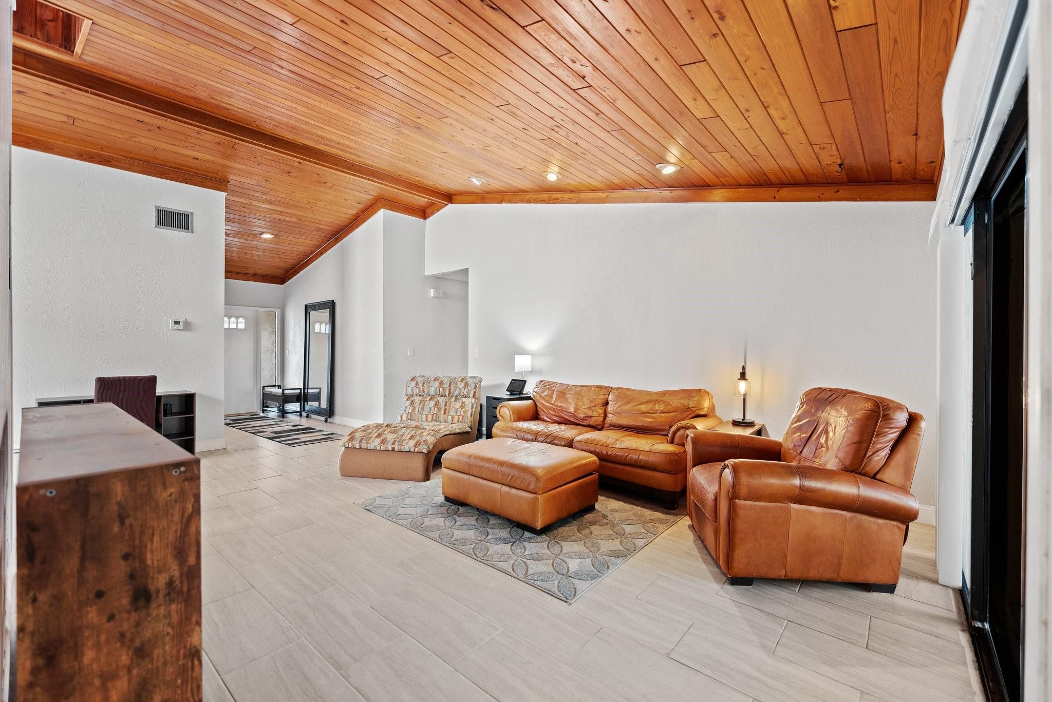 Beautifully Remodeled Home with a Custom Open Pool, Fenced Yard and Large Covered Screened Patio. Gorgeous New Kitchen and Bathrooms with the Feel of a Modern Flair. Granite Counters, Tiled Backsplash, Stainless Steel Appliances, Light and Bright! High Vaulted Ceilings in Main Living Areas are Adorned with Stunning Tongue and Groove Wood. Formal Dining Area, Spacious Main Bedroom with access to the Pool/Patio Area. Full Hurricane Protection, Accordion Shutters/Panels, 2 Car Garage & Circular Drive. Conveniently located near top-ranked schools, shopping centers and recreational facilites.