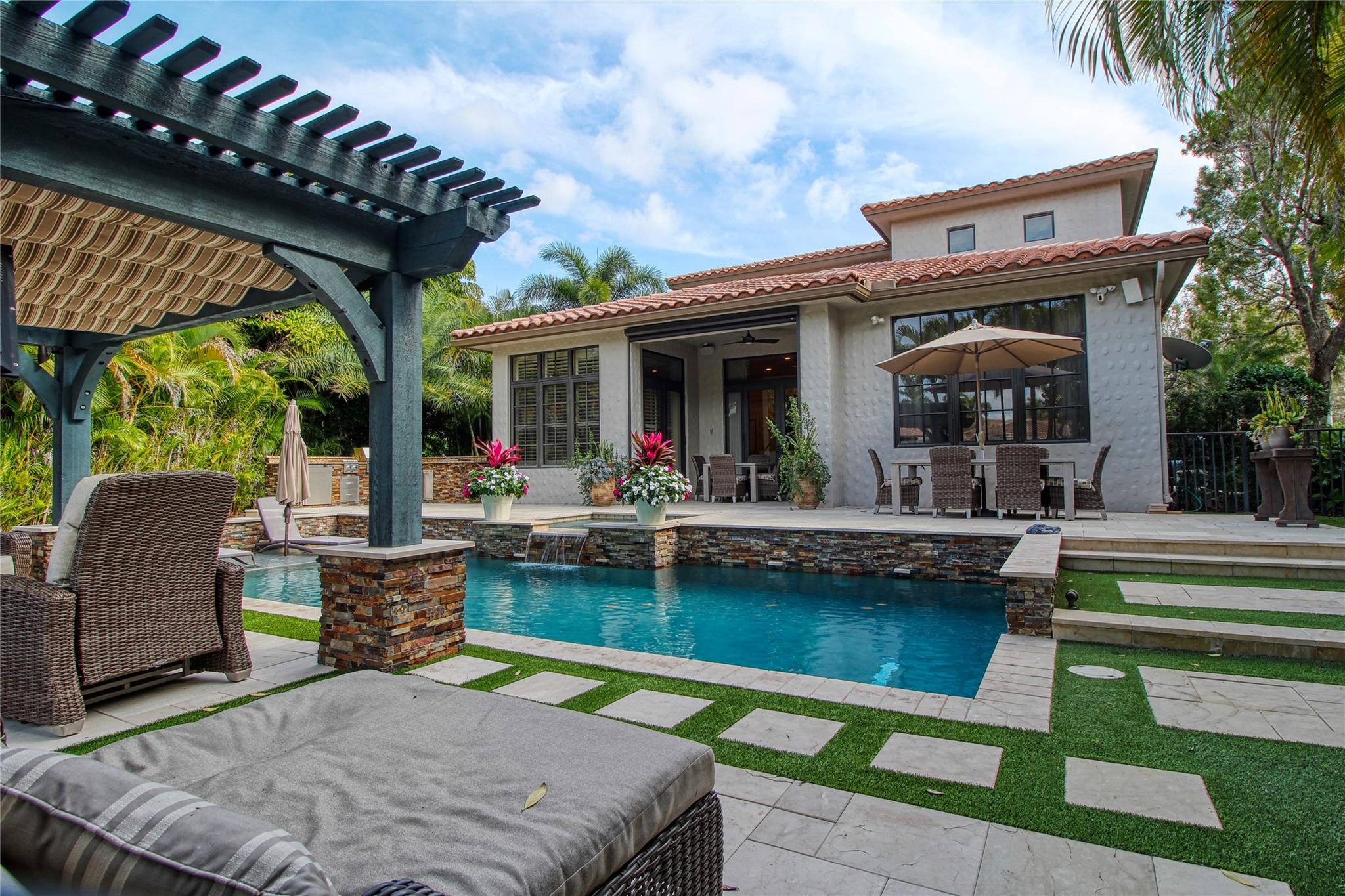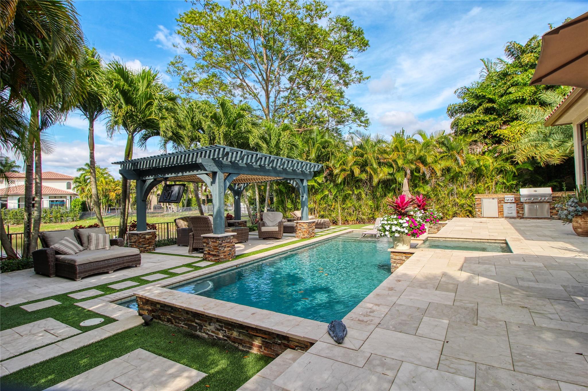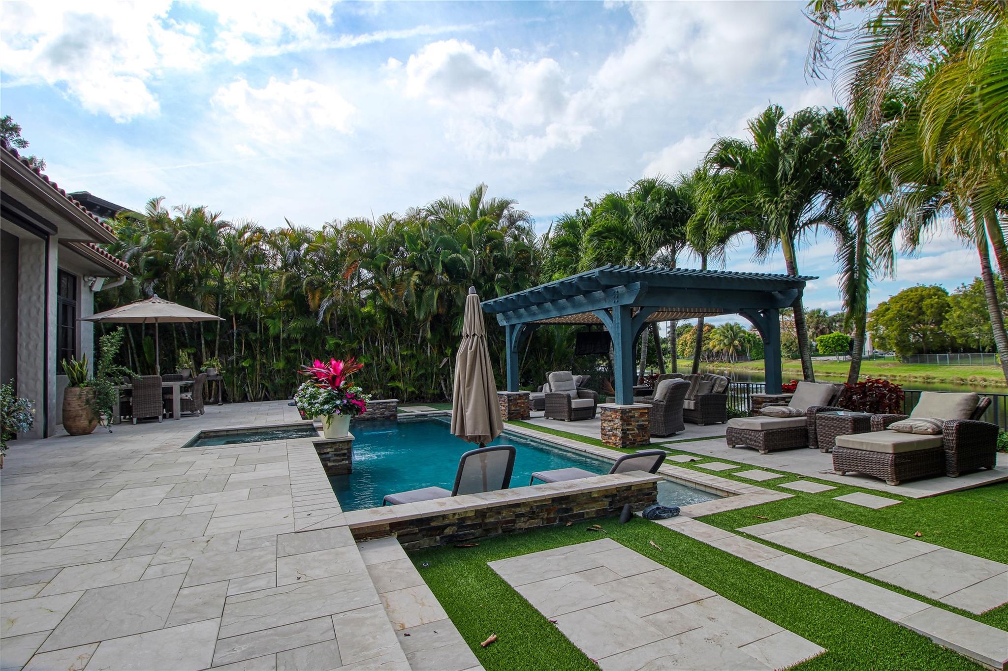 Perfect Parkland Golf and Country Club property!! This is the one you don't want to miss! Absolute perfection in every aspect of this home! This 4 bed, 3 full bath (with additional office) waterfront pool home is meticulously manicured throughout the entire property. Situated on a large pie shaped lot, this home offers room for expansion if desired and a unique professional garden feeling throughout. An absolute masterpiece of a back yard, relax waterside on your double tiered resort style pool area with outdoor kitchen, pergola lounge, and fully turfed yard. Inside enjoy your beautiful custom kitchen with one of the most attractive countertop slabs you'll ever see. Upgraded window treatments, gorgeous flooring, custom bar and a full home generator provides all you desire in a home.