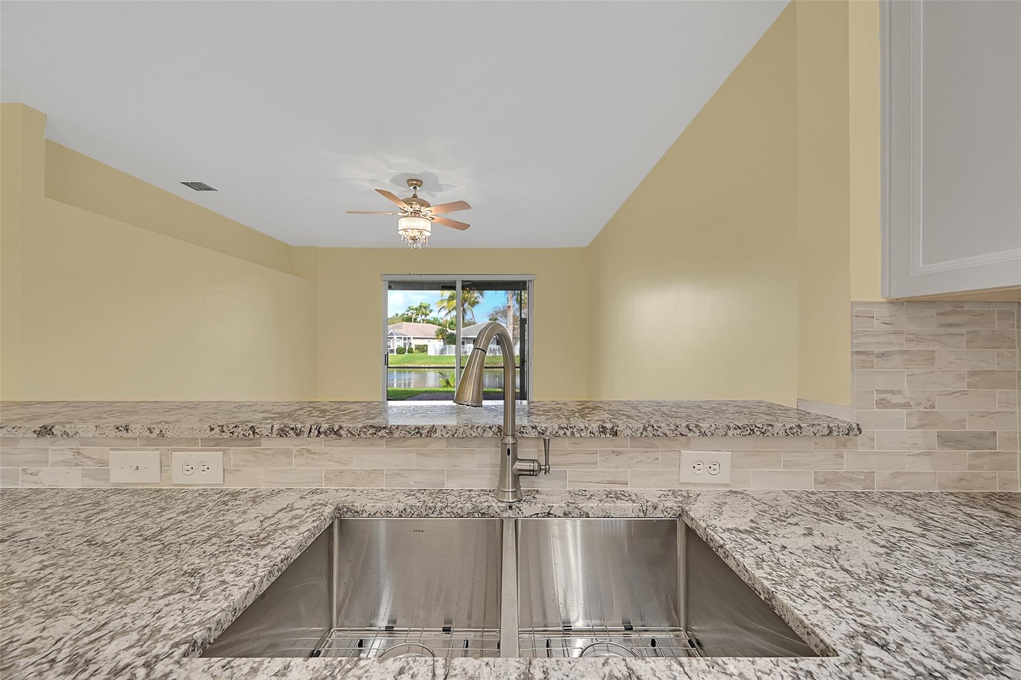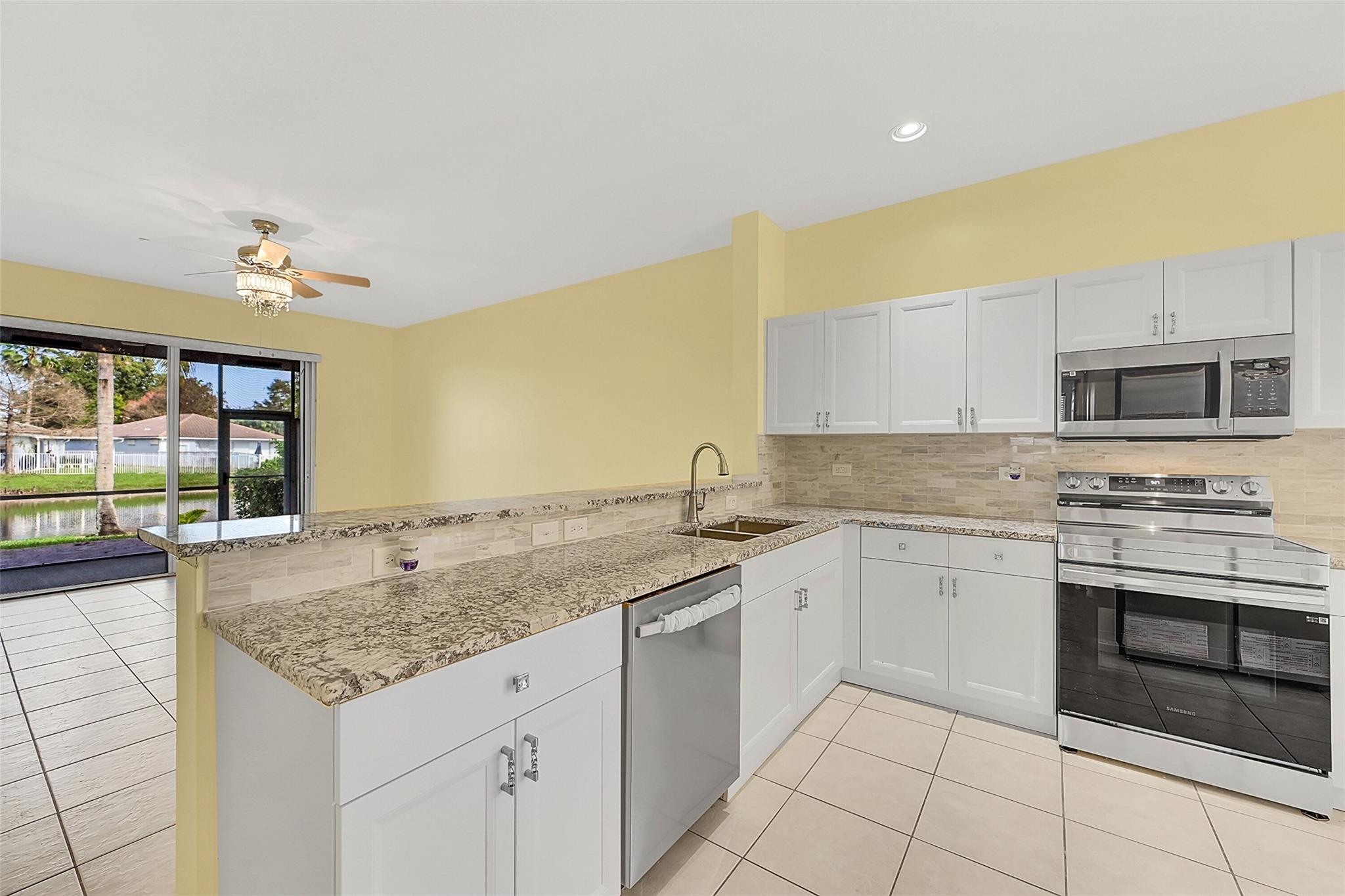 Step into the dream! Spacious 4 bedroom home in a wonderful gated community. The remodeled kitchen is a cook's delight! Time to make culinary masterpieces! Large family room that overlooks the lake. Charming breakfast area. Large dining room & living room. All bedrooms with new contemporary tile. Roomy master bedroom with a master bath that includes separate shower & roman tub plus dual sinks. Large walk in closet. Stylish remodeled guest bathroom and half bath for guests. Relax in the screened patio or out by the scenic lake. True Florida living! Interior laundry room & two car garage. Paver driveway. Newer AC in 2021! All within beautiful Wyndham Lakes in Pelican Trail West. Amazing schools and a bounty of city amenities. Shopping, dining, and easy highway access close by. A+ location!