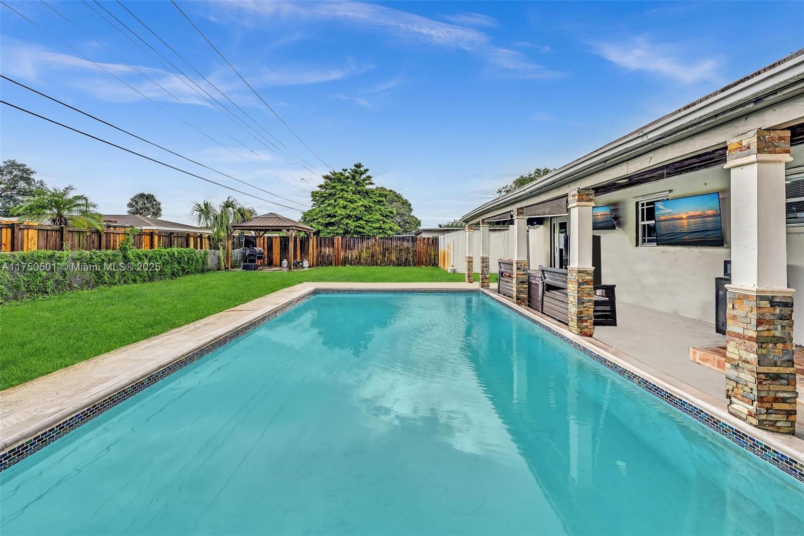 Don’t miss this incredible opportunity! This beautifully updated home features a brand-new roof and elegant ceramic flooring throughout (no carpet!). The chef’s kitchen boasts high-end appliances, perfect for entertaining. Spacious living and dining areas flow to a private backyard retreat with a sparkling pool, multiple gazebos, and plenty of hosting space. A separate fenced area is perfect for pets. Additional highlights include a new pool pump, newer A/C-2023, outdoor storage with/AC, 1-car garage and no HOA! Located near I-95, the Turnpike, top-rated schools, and premier shopping, this home offers both luxury and convenience. Don’t miss out—schedule your showing today!
