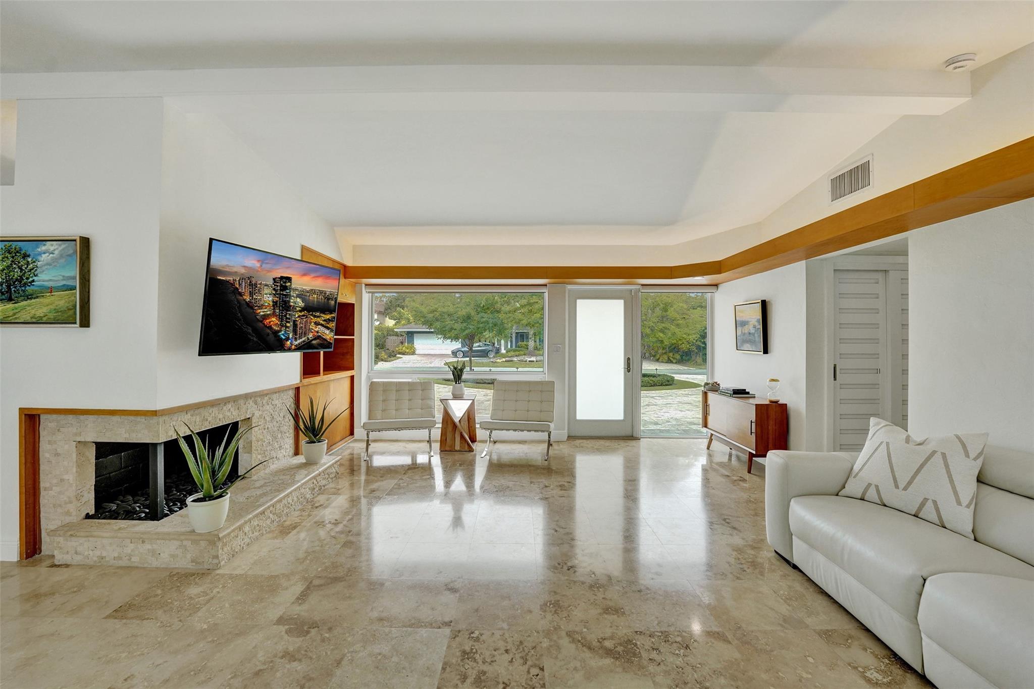 Resort-like tranquility abounds in this beautiful Mid Century home! Blending the past with state of the art amenities this home has it all. Features include gorgeous views of the pristine pool and lush tropical garden from almost every room, sleek & bright updated kitchen, spa like primary bath with soaking tub, volume ceilings accented with up lighting, exquisite wood work throughout, fireplace, spacious indoor laundry room, electronic shades, security cameras, heated pool, astroturf in the backyard, pipes replaced in 2024, AC replaced in 2024, impressive travertine driveway and more.