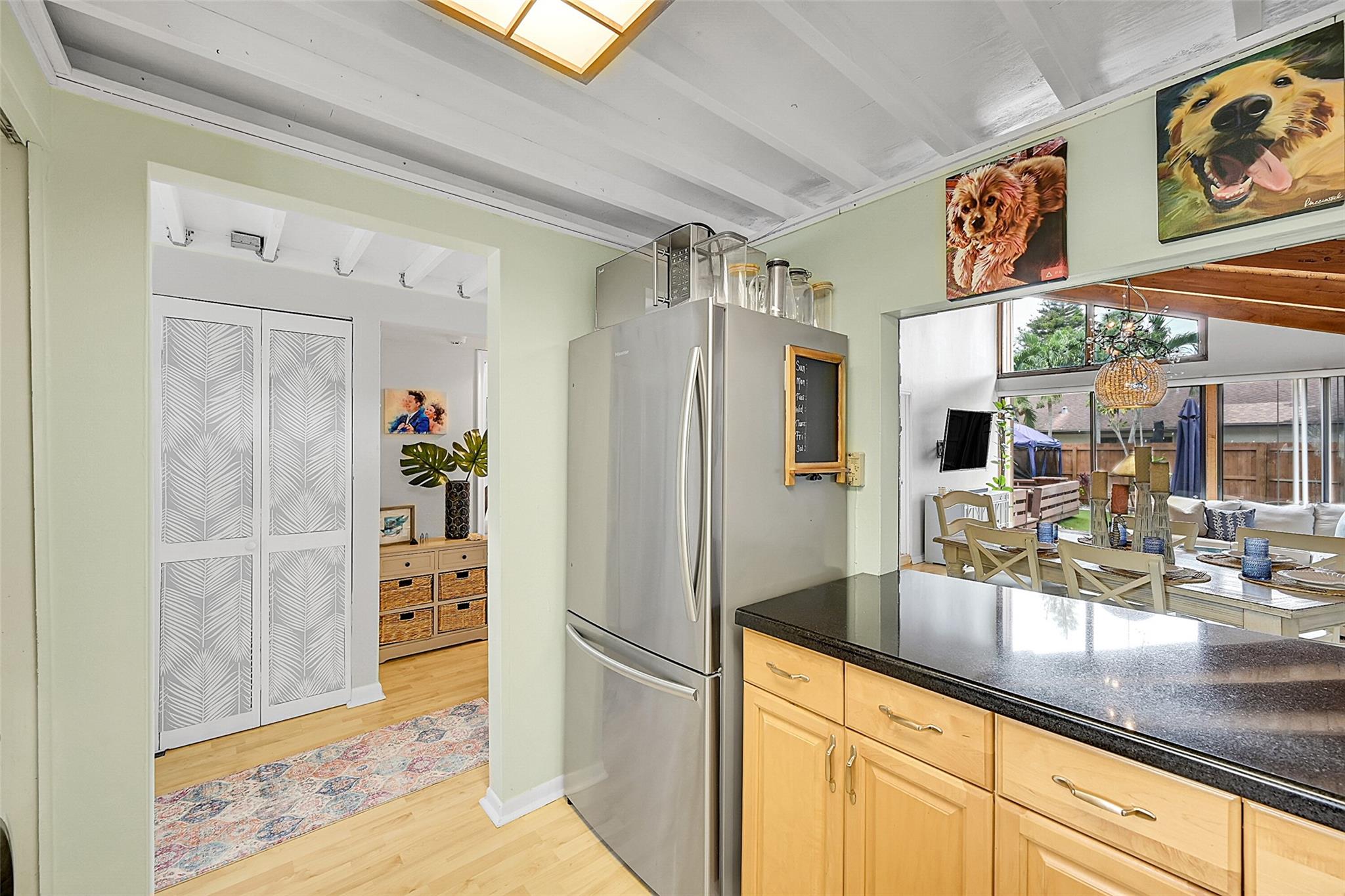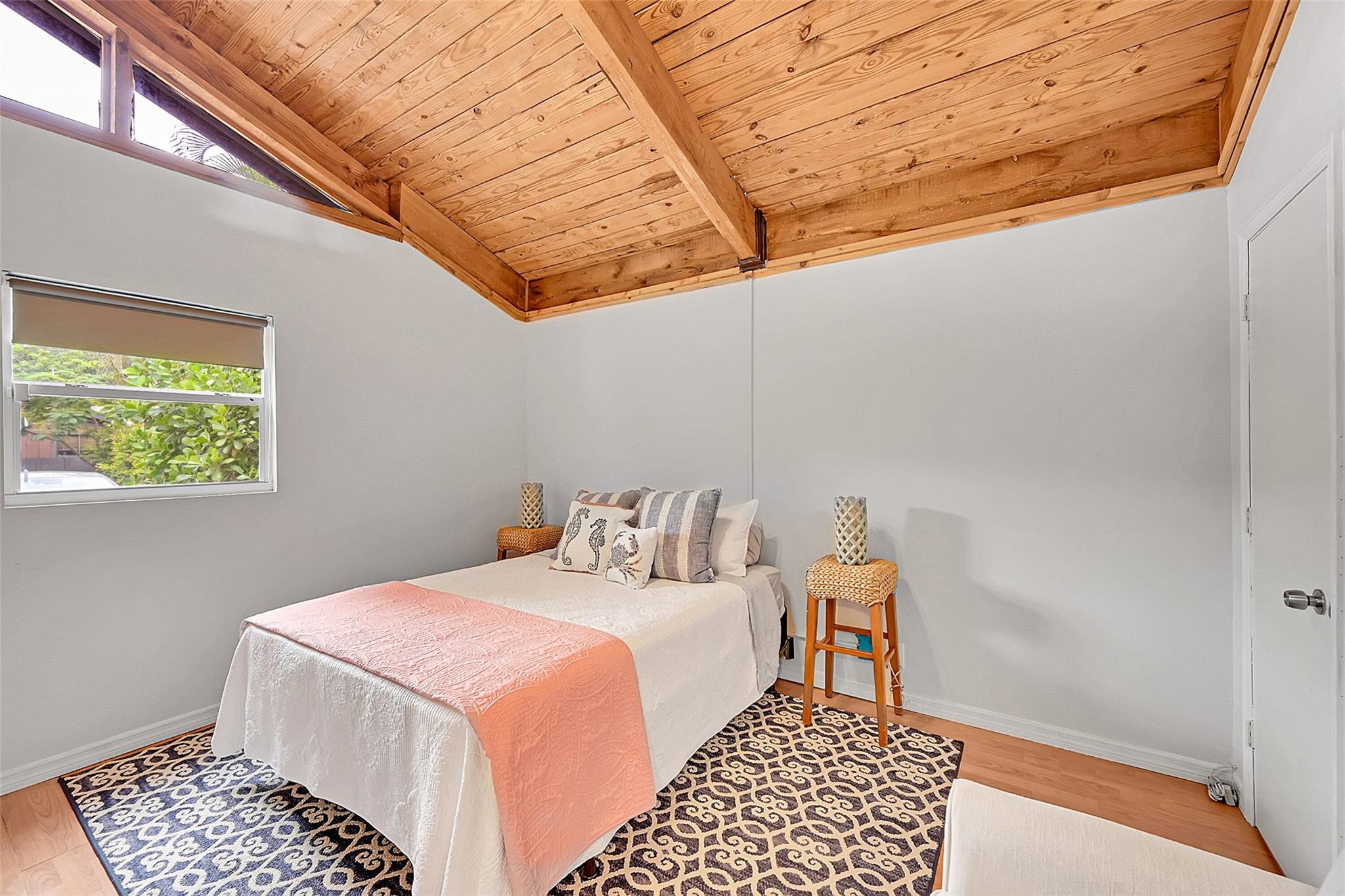 This unique 2-bedroom, 2-bathroom townhome is full of character and charm. Featuring vaulted tongue and groove exposed rafter ceilings, an updated kitchen and baths, and a cool loft space, this home is a perfect blend of rustic charm and modern convenience. Enjoy a private backyard with a deck, ideal for relaxing or entertaining. With in-unit washer and dryer, and a quiet yet central location close to highways, shopping, and restaurants, this townhome offers both comfort and convenience. Don't miss the chance to call this special property home!