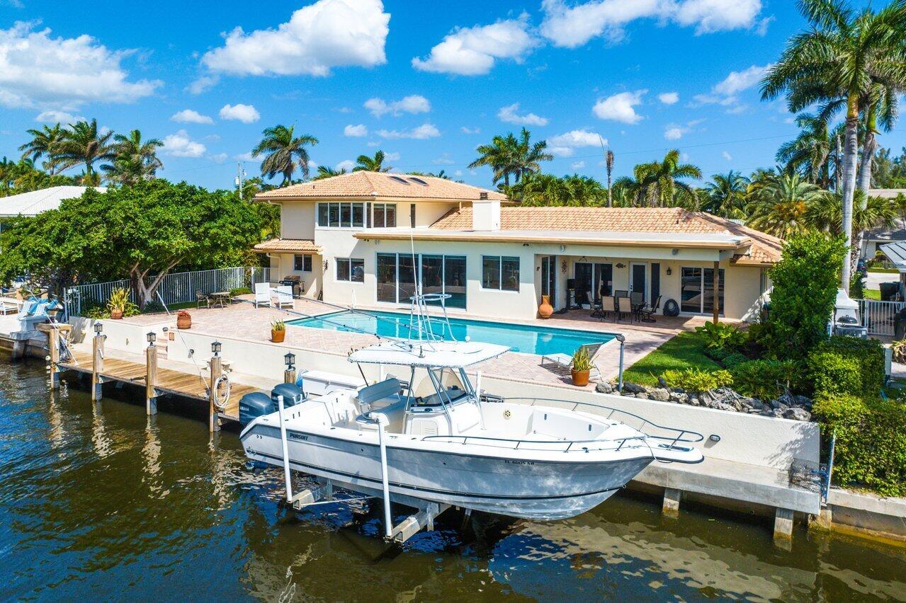 Welcome to your tropical waterfront paradise with something for everyone. Fish or boat your day away from this fabulous waterfront home with 90' of seawall and a 10K+ pound lift. Enjoy your huge 40ft+ heated lap pool year round with its southern exposure offered all day or just watch marine life from your private tropical backyard to the privacy of your living room. A wide-open floor plan that is ideal for entertaining with modern stone flooring, impact windows and wood burning fireplace. Huge master suite upstairs with his & her closets/vanities, Jacuzzi tub and dual shower- separate sleeping quarters with separate office. Enjoy all the local shops & restaurants that Delray Beach has to offer. Only a mile to the beach & 5 minute drive to Delray's famed Atlantic Avenue. This home is fun..