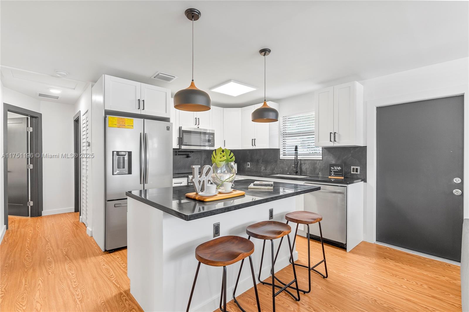 This completely remodeled home is a dream 2/2 modern layout New Electrical System, new Plumbing – Brand-New Appliances - New Roof –impact windows and doors- Span electrical pannel Save on energy bills Quantify the impact of appliances on your energy bill, and make smarter decisions to save. Built to last, ensuring long-term protection and peace of mind. AMAZING Backyard Close to everything, 17 mins to FTL Airport; 24 mins to MIA; 23 mins to Las Olas; 12 min to Aventura Mall and Brightline Train; 11 mins to the beach, 7 mins to I95; 11 mins to the FL Turnpike. No required flood insurance, No HOA.