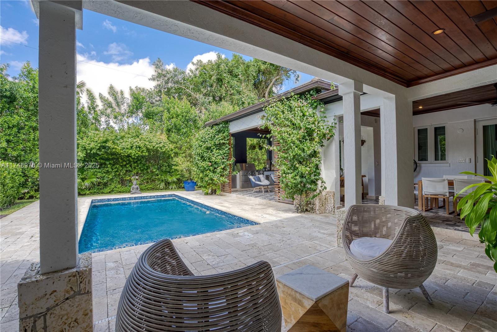 Truly a one of a kind home with the best finishes imaginable! This 5 bedroom home was completely renovated from the studs in 2017. Completely out of any flood zone. An 8ft elevated driveway with private gated entrance welcomes you to a modern yet cosy masterpiece. The highest possible finishes were used: hidden hinges, Italian doors, high grade LED lights, $100k Mia Cucina kitchen, covered in highest quality wall paper, incredible fixtures, custom build outs, open living floorplan bathed in light with an internal garden and 20ft ‘green wall’! WOW. Incredible exterior entertainment area surrounded by manicured landscaping. Solar panels make it efficient too! Owners are happy to sell the home fully furnished as seen in the pics.