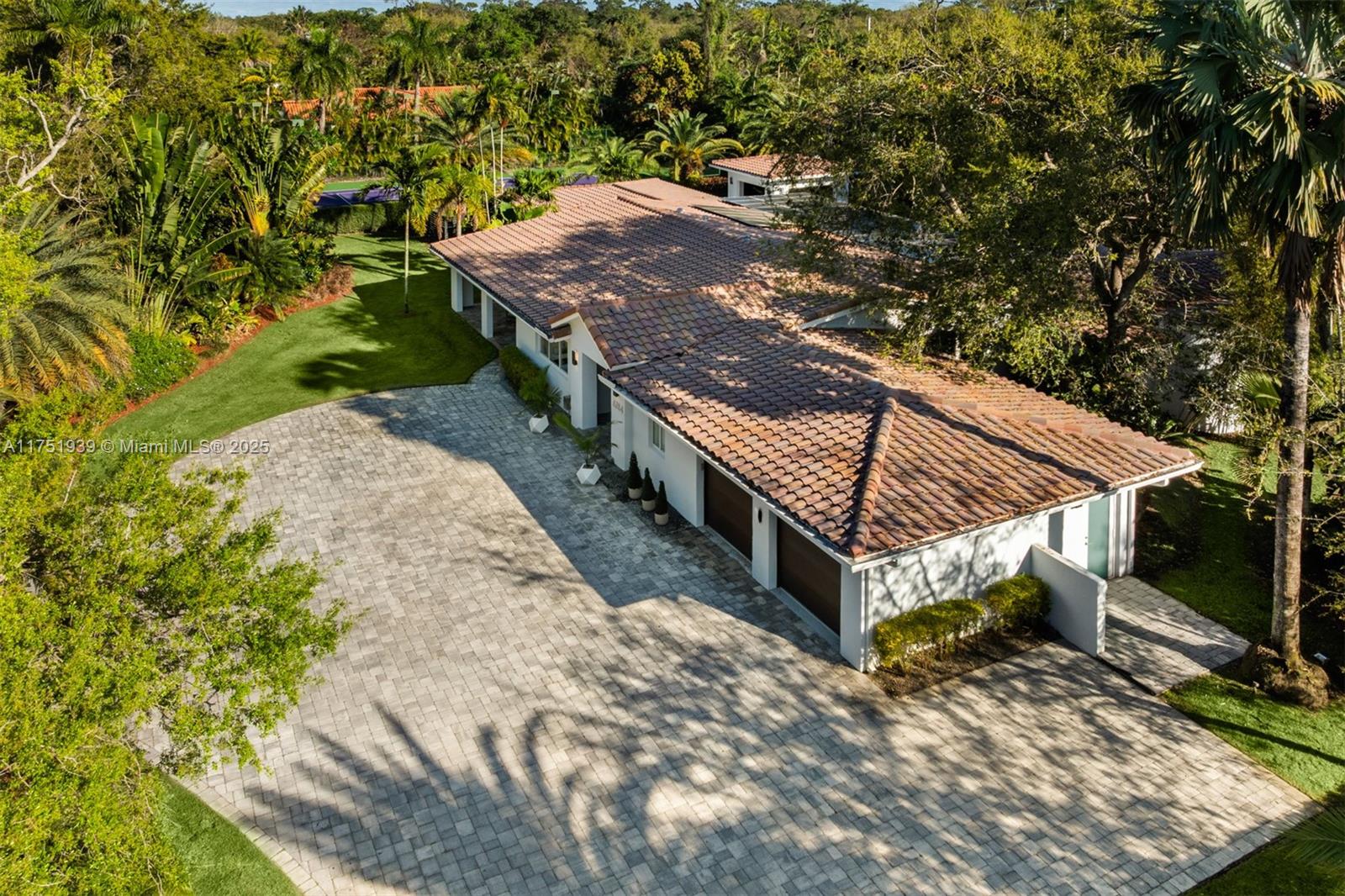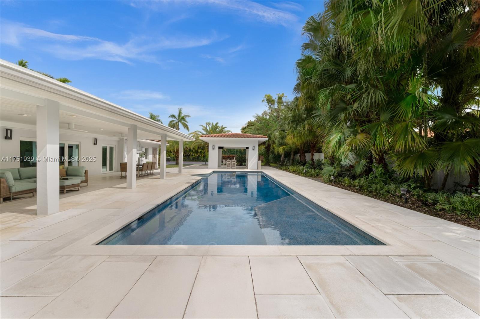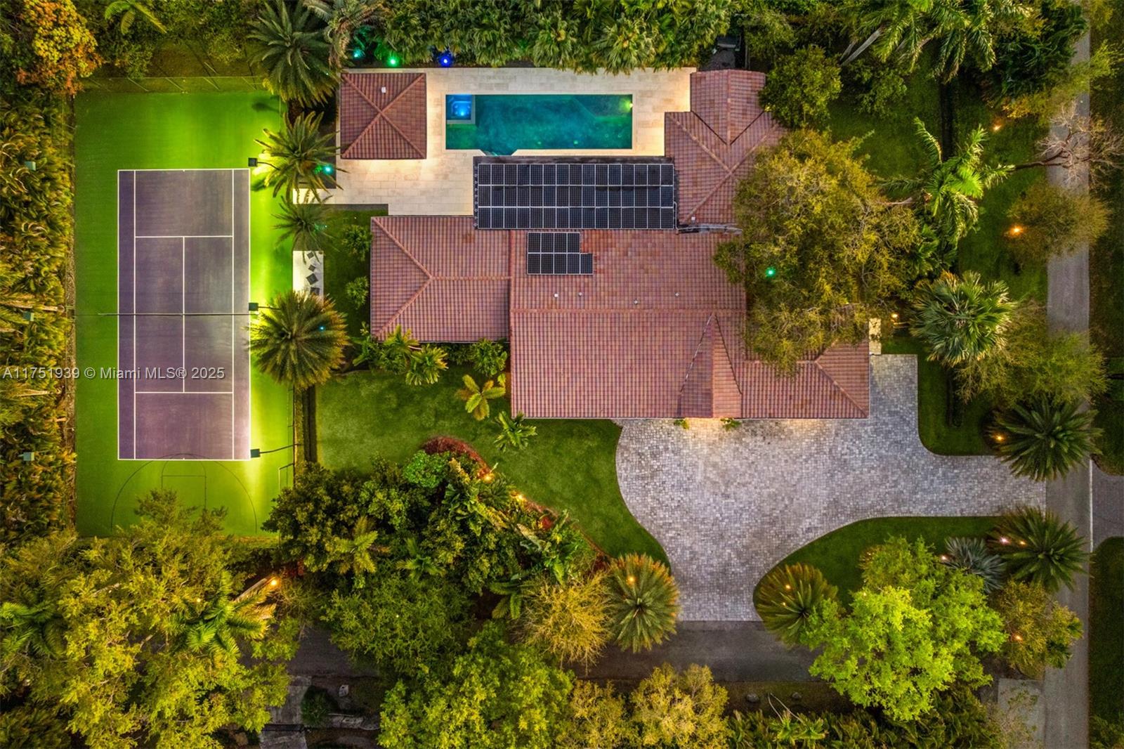 Welcome to this exquisite corner-lot residence, tucked away on a serene & quiet street with no through access, in the heart of Pinecrest. Thoughtfully renovated from 2018 to 2020, this home offers a perfect blend of modern elegance and timeless comfort. This spacious 5-bedroom home boasts porcelain floors throughout, creating a sleek and cohesive design. The primary suite features a spa-like bathroom with a separate tub and shower, dual sinks, large space for an office & his-and-her walk-in closets. Step into a resort-style backyard with two covered terraces, a summer kitchen, a sparkling pool and jacuzzi. Enjoy an illuminated tennis and basketball court for sports enthusiasts. Additional features include a 53-panel, 15kW solar power system. Located close to excellent schools.