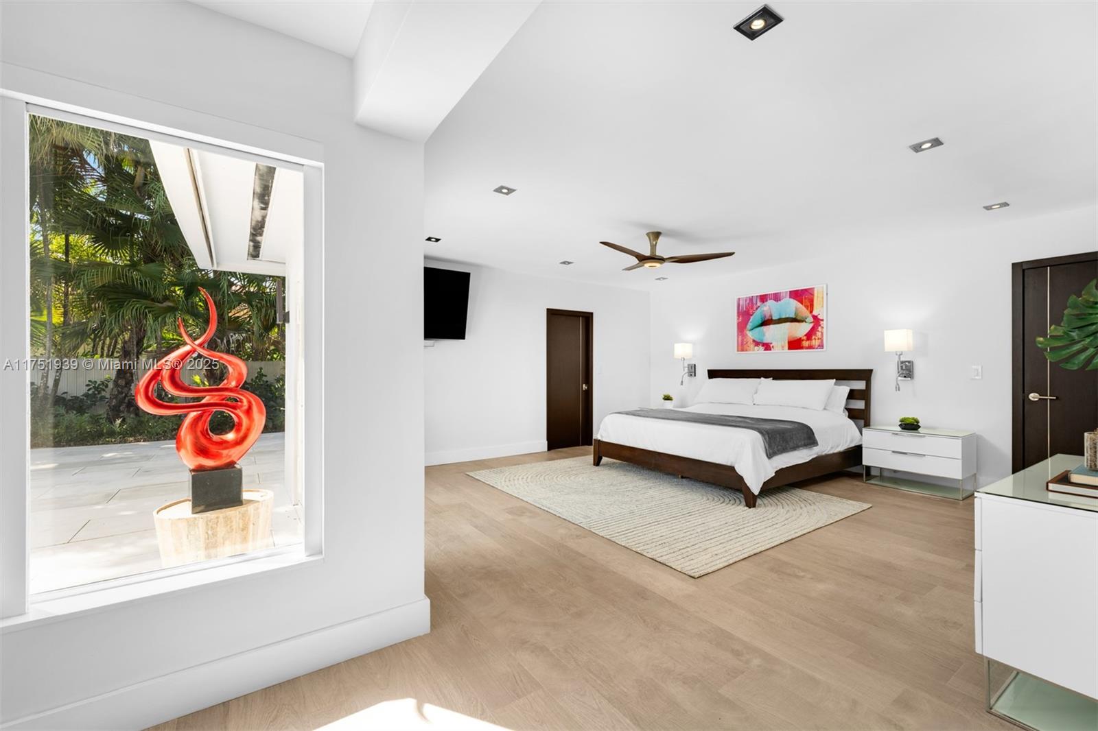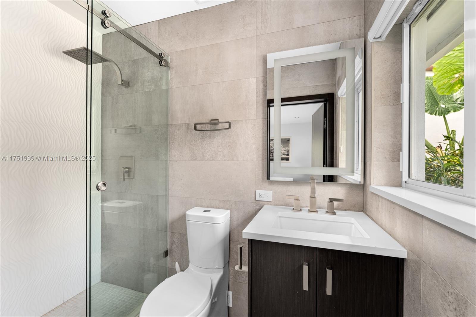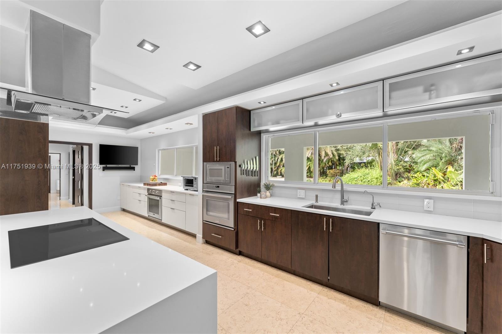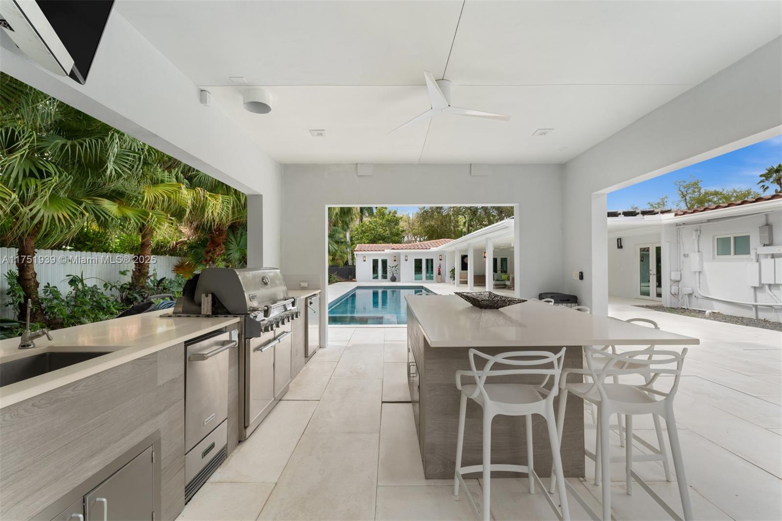 Welcome to this exquisite corner-lot residence, tucked away on a serene & quiet street with no through access, in the heart of Pinecrest. Thoughtfully renovated from 2018 to 2020, this home offers a perfect blend of modern elegance and timeless comfort. This spacious 5-bedroom home boasts porcelain floors throughout, creating a sleek and cohesive design. The primary suite features a spa-like bathroom with a separate tub and shower, dual sinks, large space for an office & his-and-her walk-in closets. Step into a resort-style backyard with two covered terraces, a summer kitchen, a sparkling pool and jacuzzi. Enjoy an illuminated tennis and basketball court for sports enthusiasts. Additional features include a 53-panel, 15kW solar power system. Located close to excellent schools.