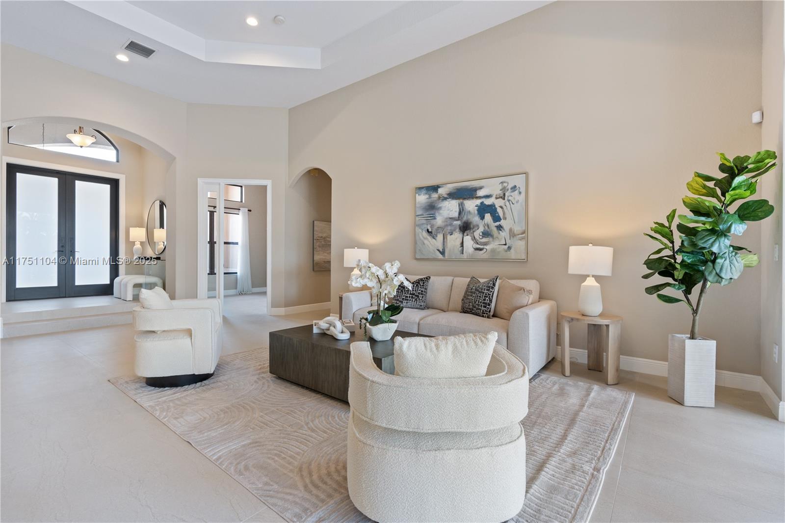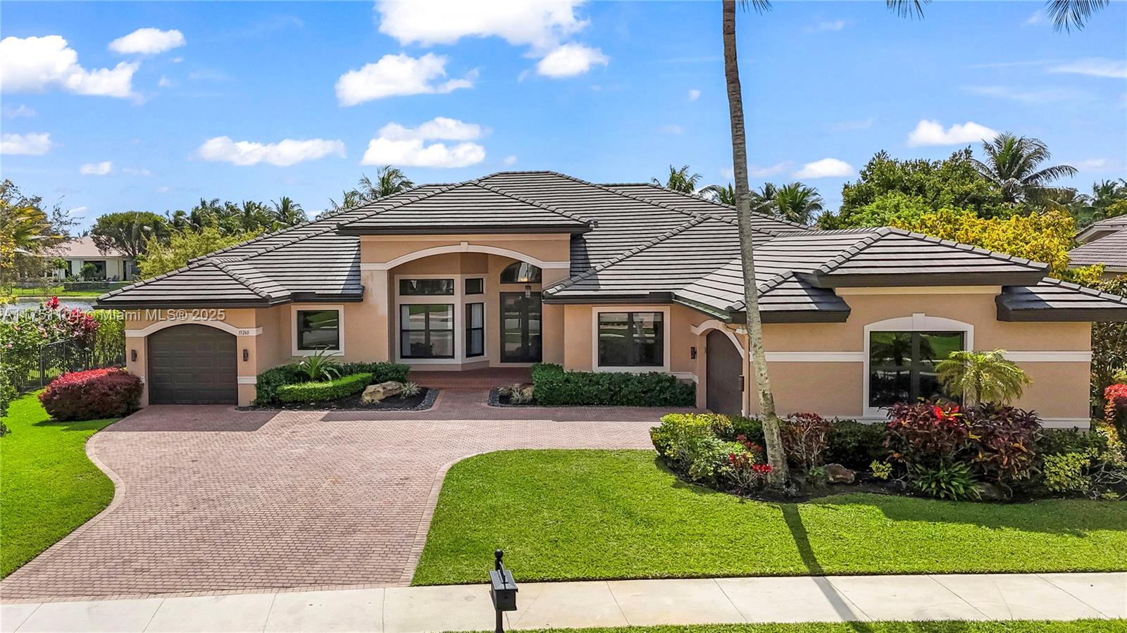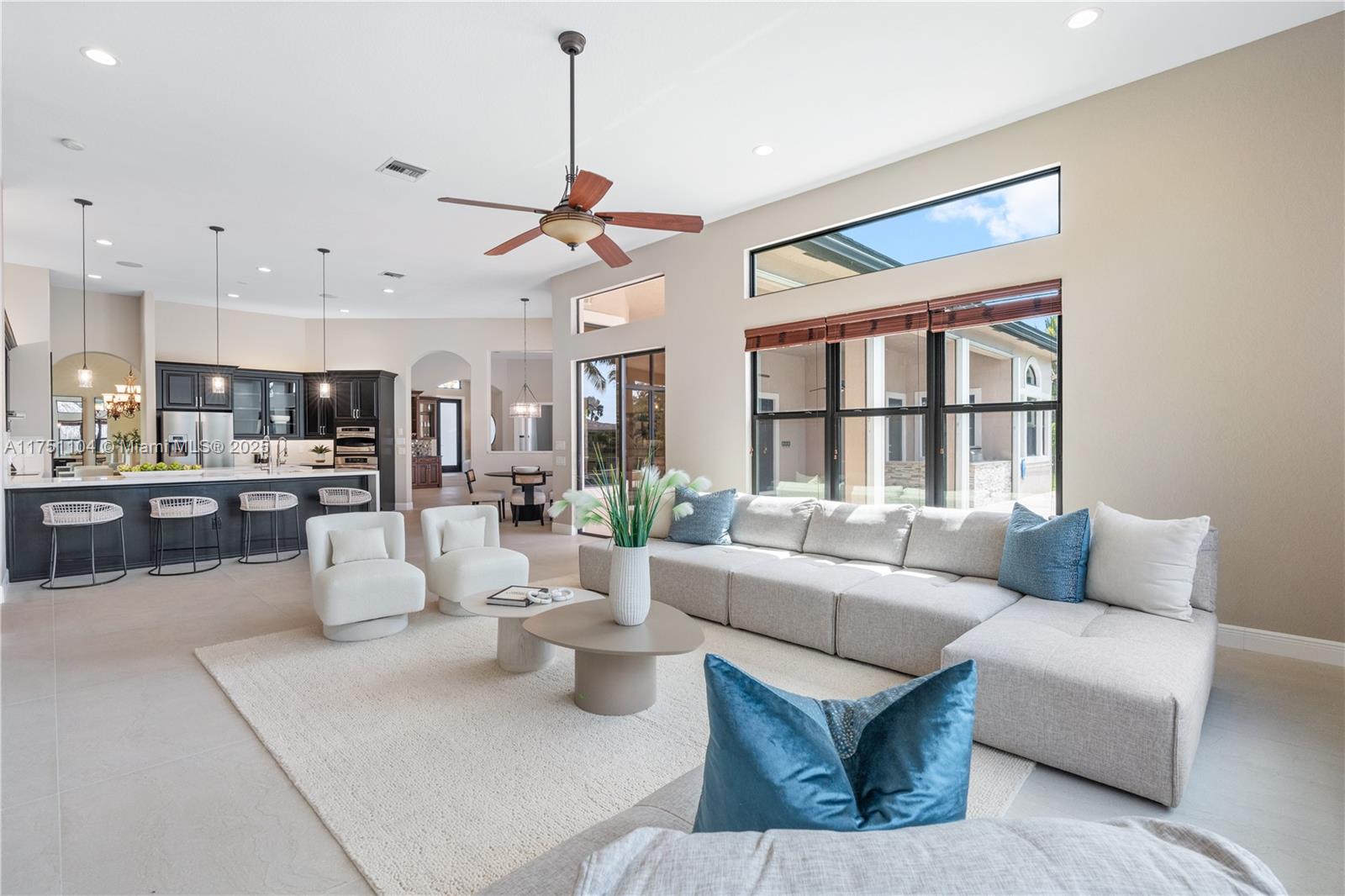 Welcome to an exquisite estate nestled within Davie's prestigious gated community of Riverstone! This renovated home sits on the lake, and consists of 5 bd's, an office, and media room (7 total). Stunning chefs kitchen, custom Italian flooring, custom primary closets, renovated bathrooms (including his/hers baths), and a perfect entertainment space outdoors with a pool, outdoor kitchen, and tiki hut! Impact windows/doors. Truly a gem in such a sought after community! TOP rated schools, close access to all major highways, shopping, grocery stores and dining, as well as a well maintained community. Community amenities include tennis, basketball and pickleball courts, in addition to pavilion & playgrounds for kids. Easy to show! Call listing agent for all questions!