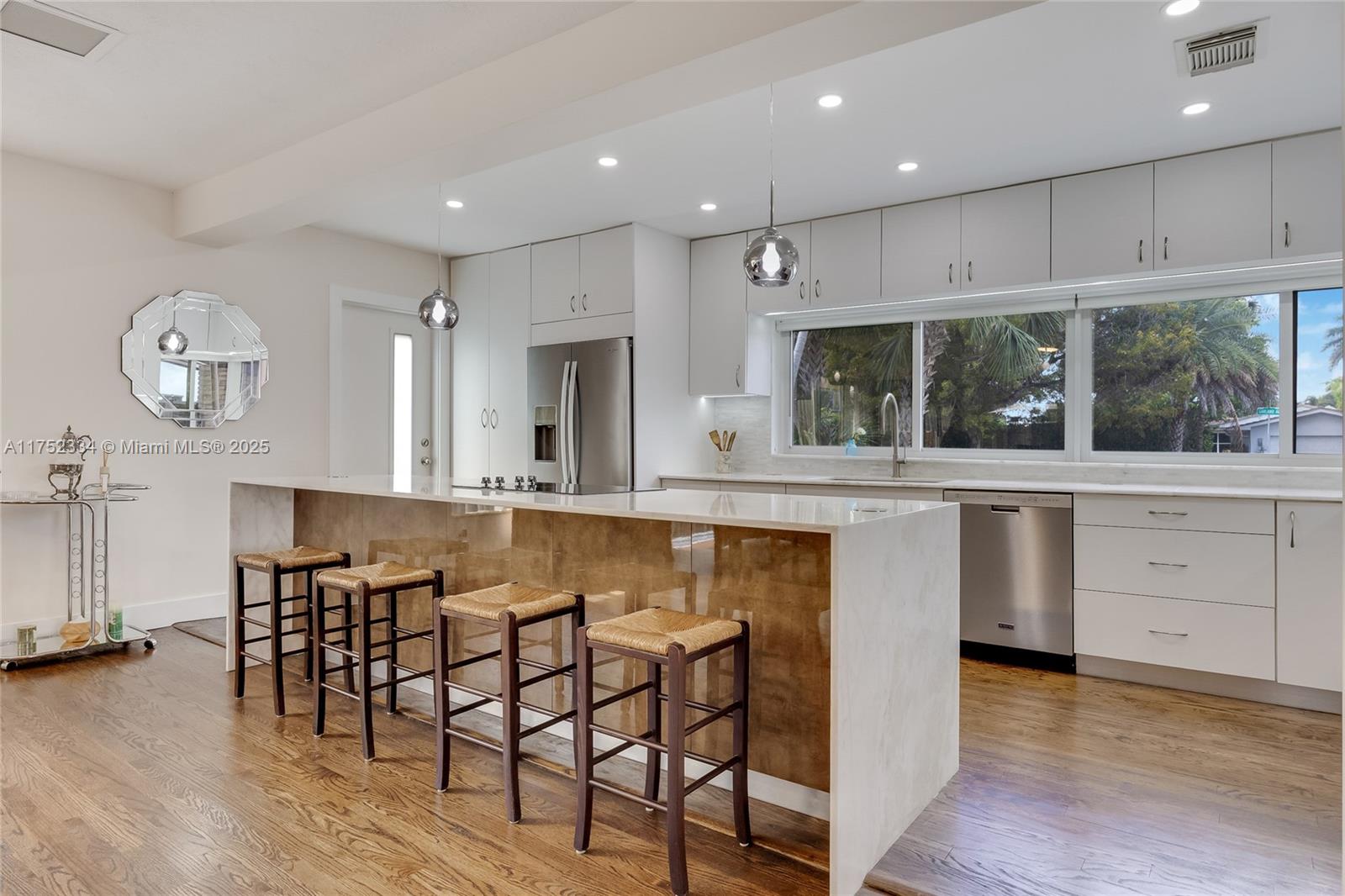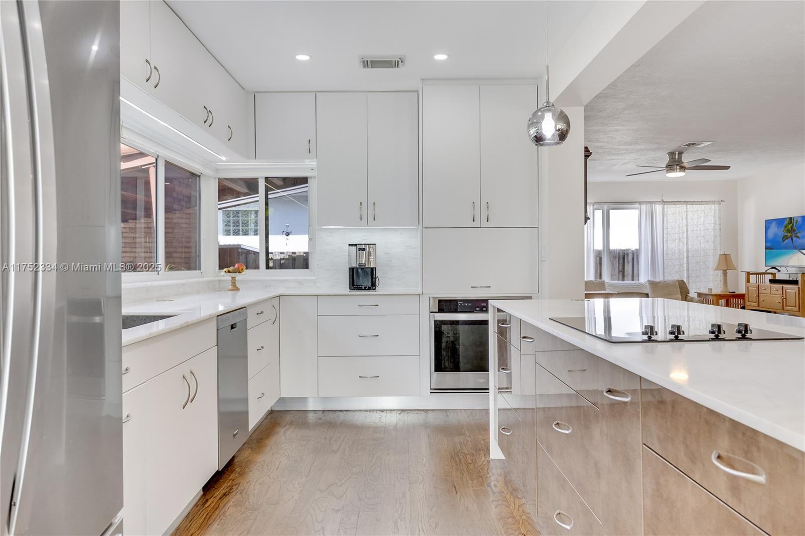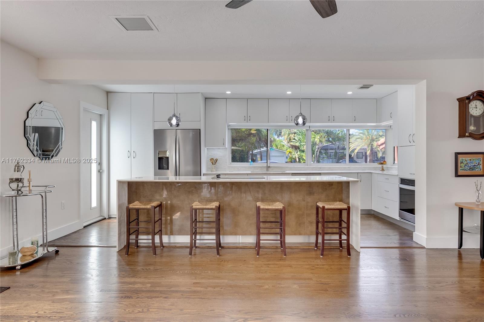 Welcome to this spacious 3-bedroom, 2-bathroom home in the desirable Town of Surfside! The gorgeous, new open kitchen is perfect for cooking and entertaining. Enjoy peace of mind with hurricane impact windows and doors, plus major updates already completed: 4-year-old tile roof, 2-year-old AC, and 1-year-old water heater. The home has warm wood floors throughout, except for tile in the family room/office. Step outside to a private backyard oasis with mango and banana trees. Ideally located, you can walk to parks, the beach, and the Surfside community center & pool. World-class dining and shopping, Bal Harbour Shops & the Four Seasons Surf Club are just minutes away. Zoned for A-rated Bay Harbor Schools. Don’t miss this rare opportunity to own an updated, spacious home in a prime location!