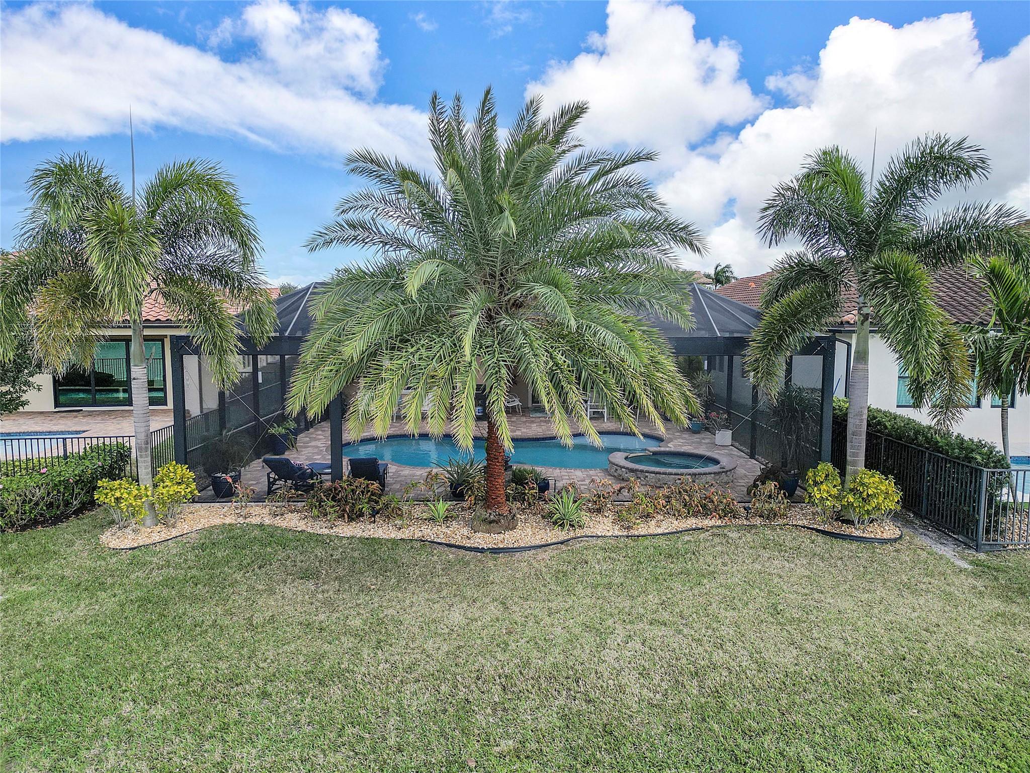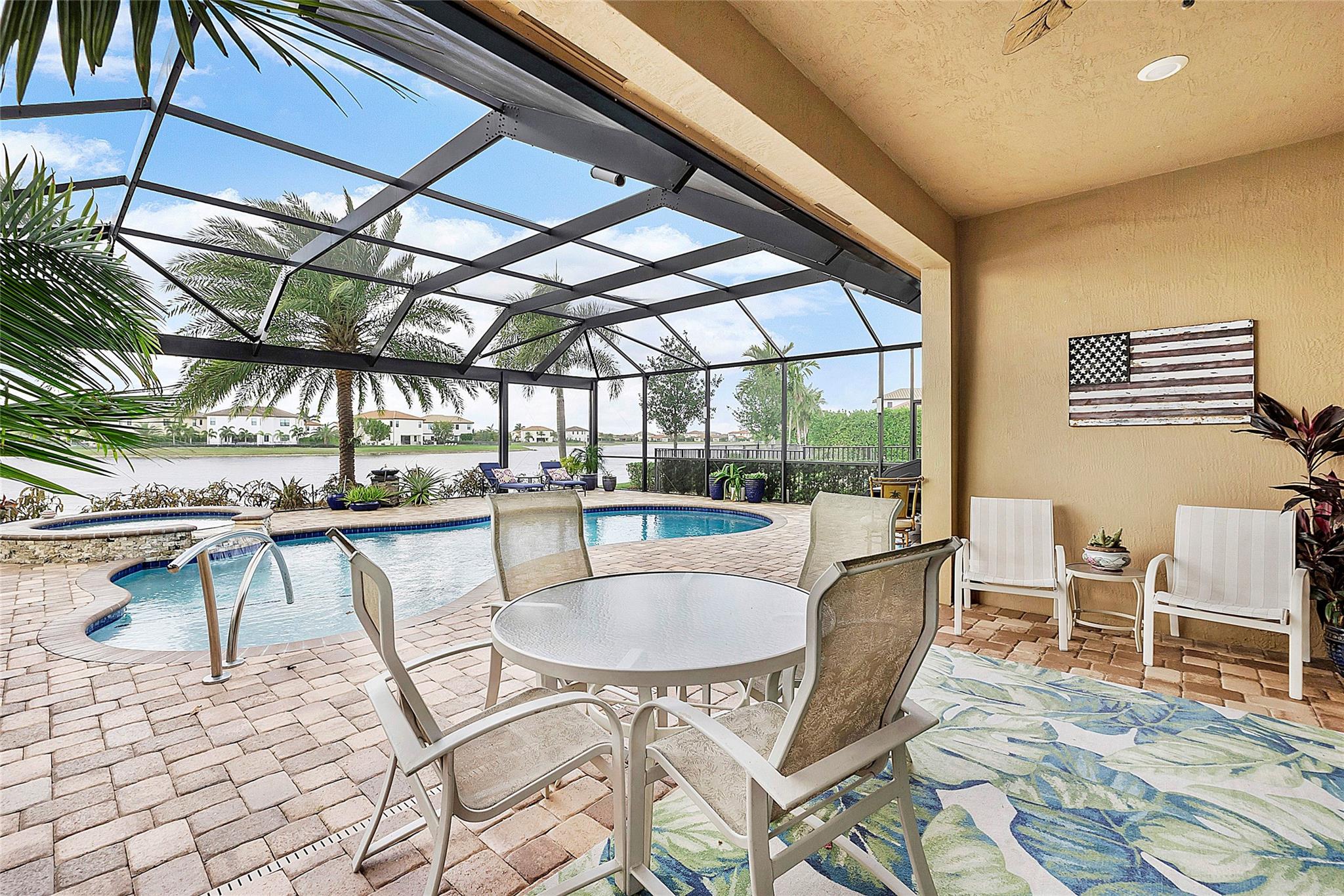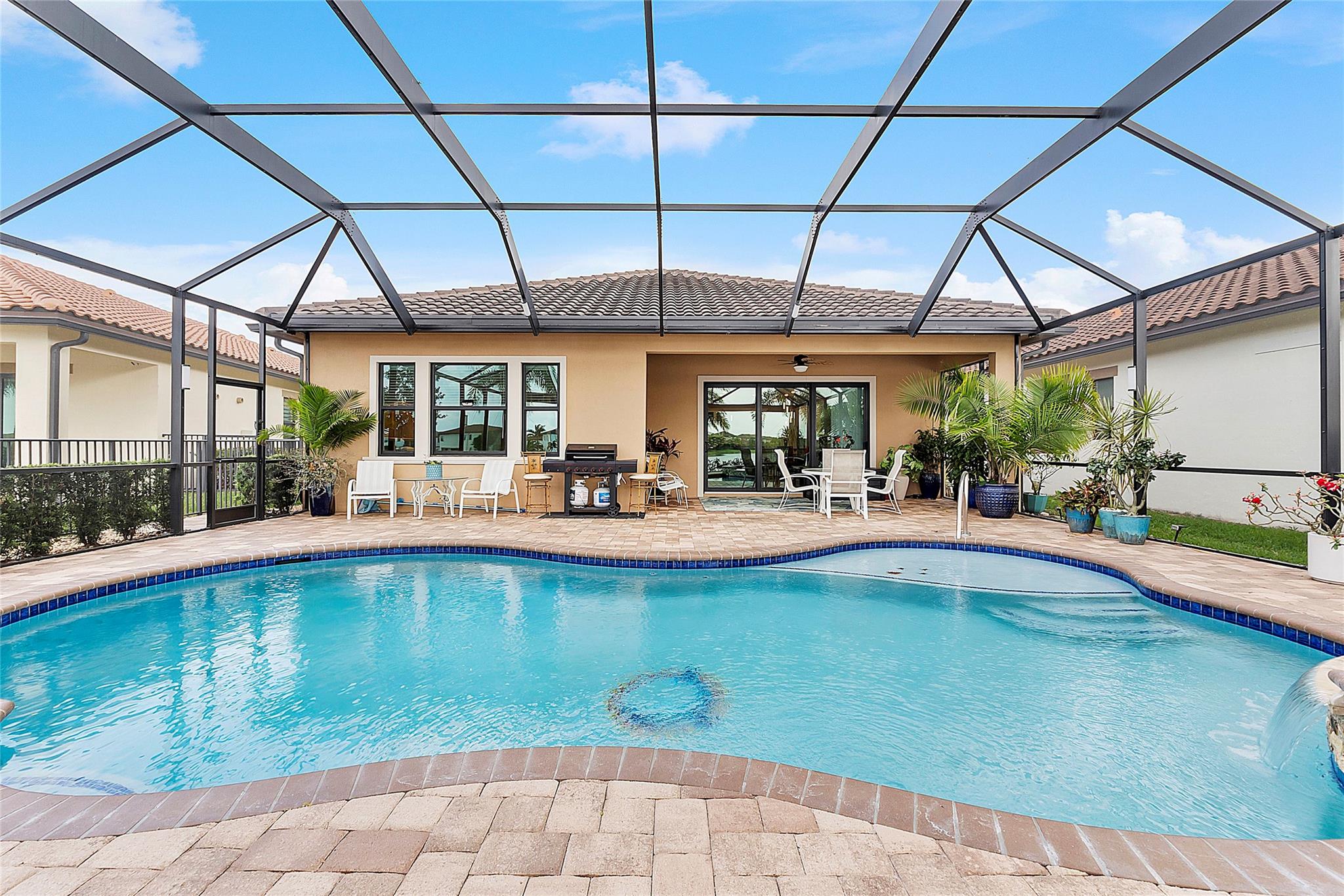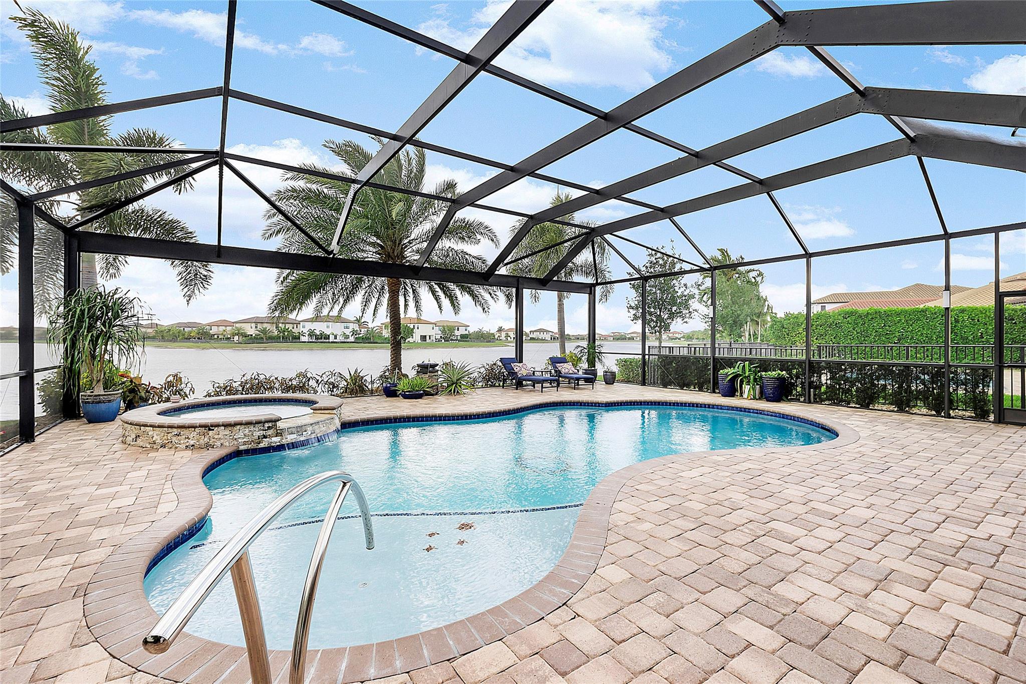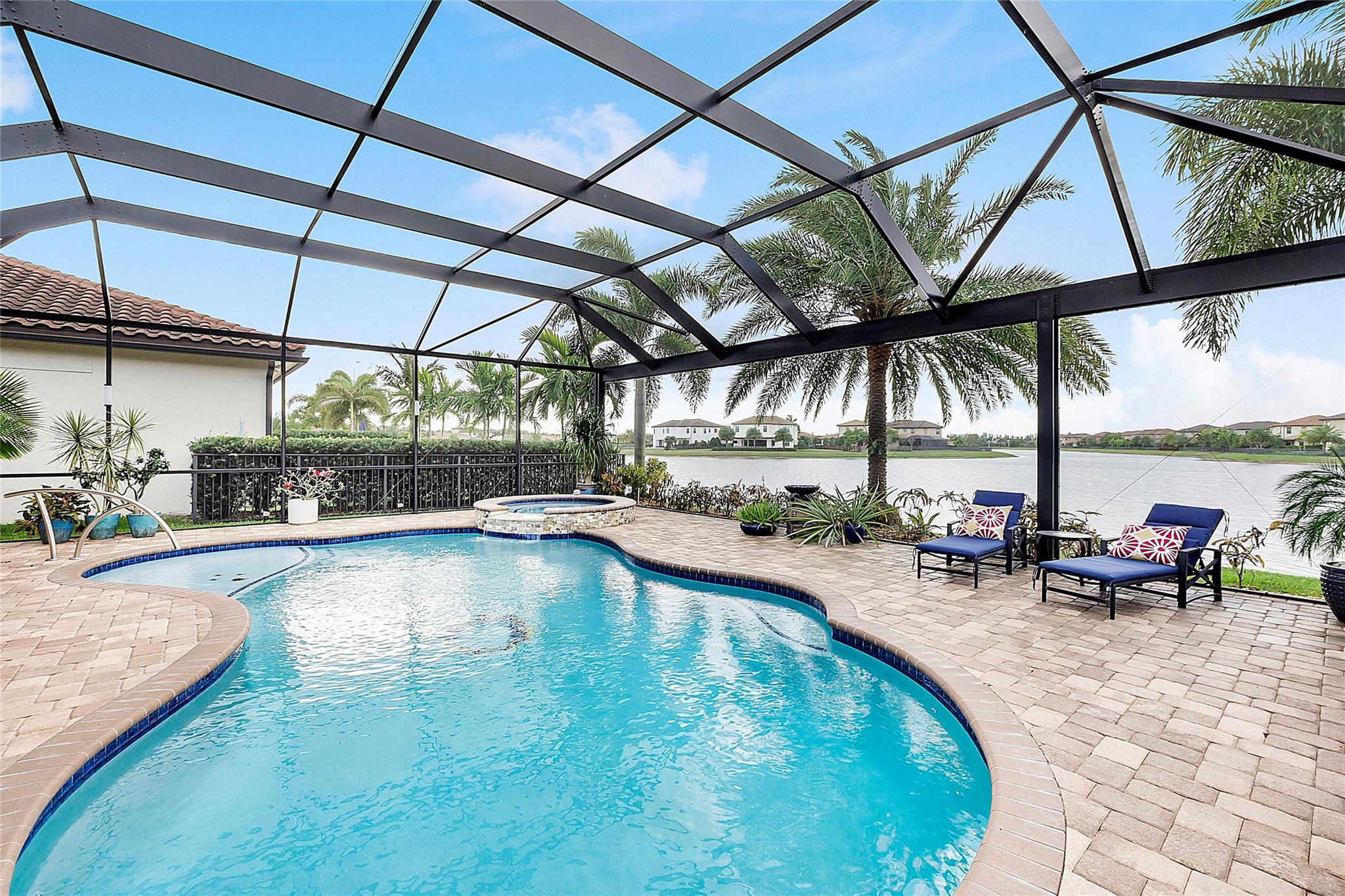Stunning one story home nestled in the desirable community of Parkland Bay. This exquisite residence features a breathtaking saltwater heated pool & spa, perfectly positioned to capture gorgeous lakefront sunsets. Enjoy year round outdoor living in the screened patio with designer multi colored lighting, lush custom landscaping with up-lighting for resort style ambiance. Step inside to find elegant crown molding throughout, Kitchen with premium cabinetry & a beautiful backsplash. The primary suite offers a spacious custom walk-in-closet. Epoxy garage floors, Halo LED air purifier AC system. Enjoy resort style amenities including a clubhouse, pool, cabanas, entertainment pavilion, culinary kitchen, fitness center, kids club, tennis, basketball & pickleball courts & tot lot. A-rated schools.