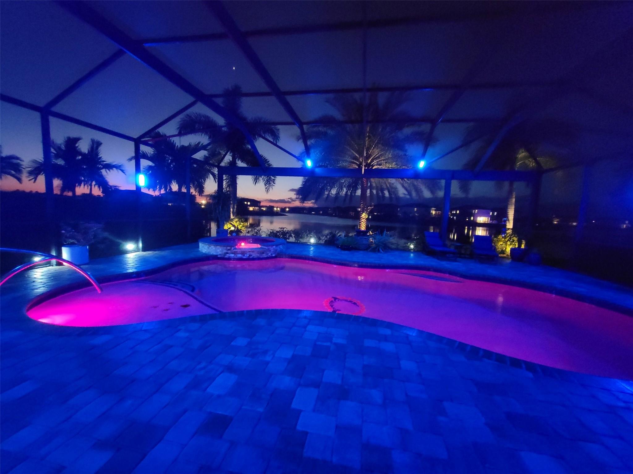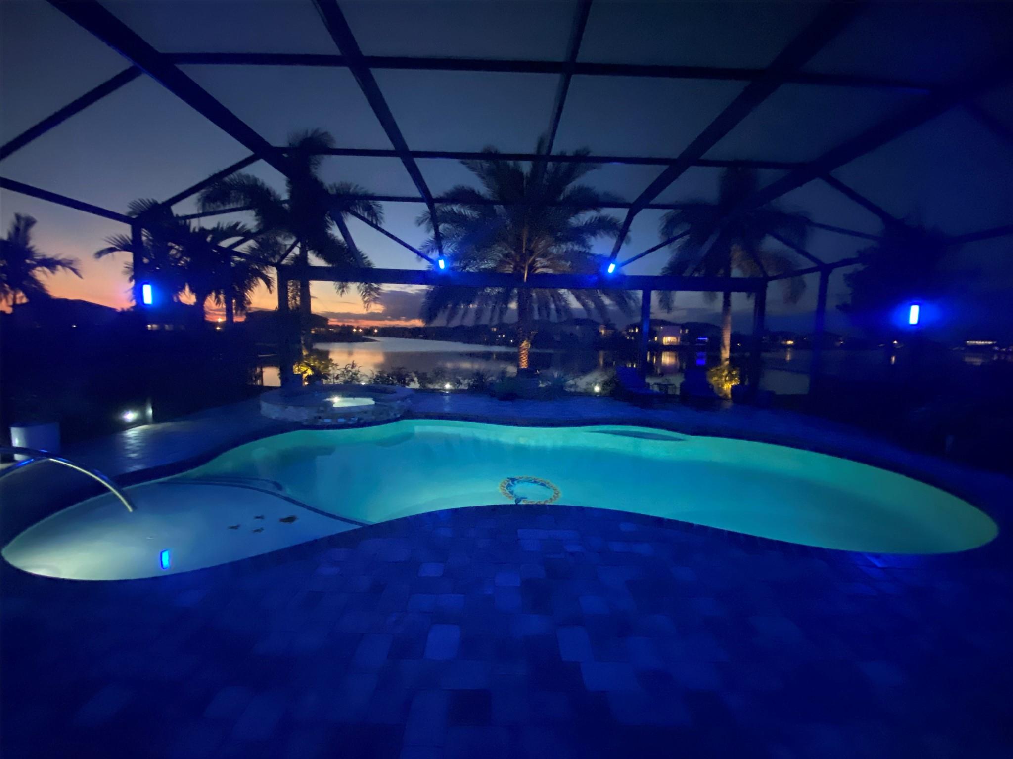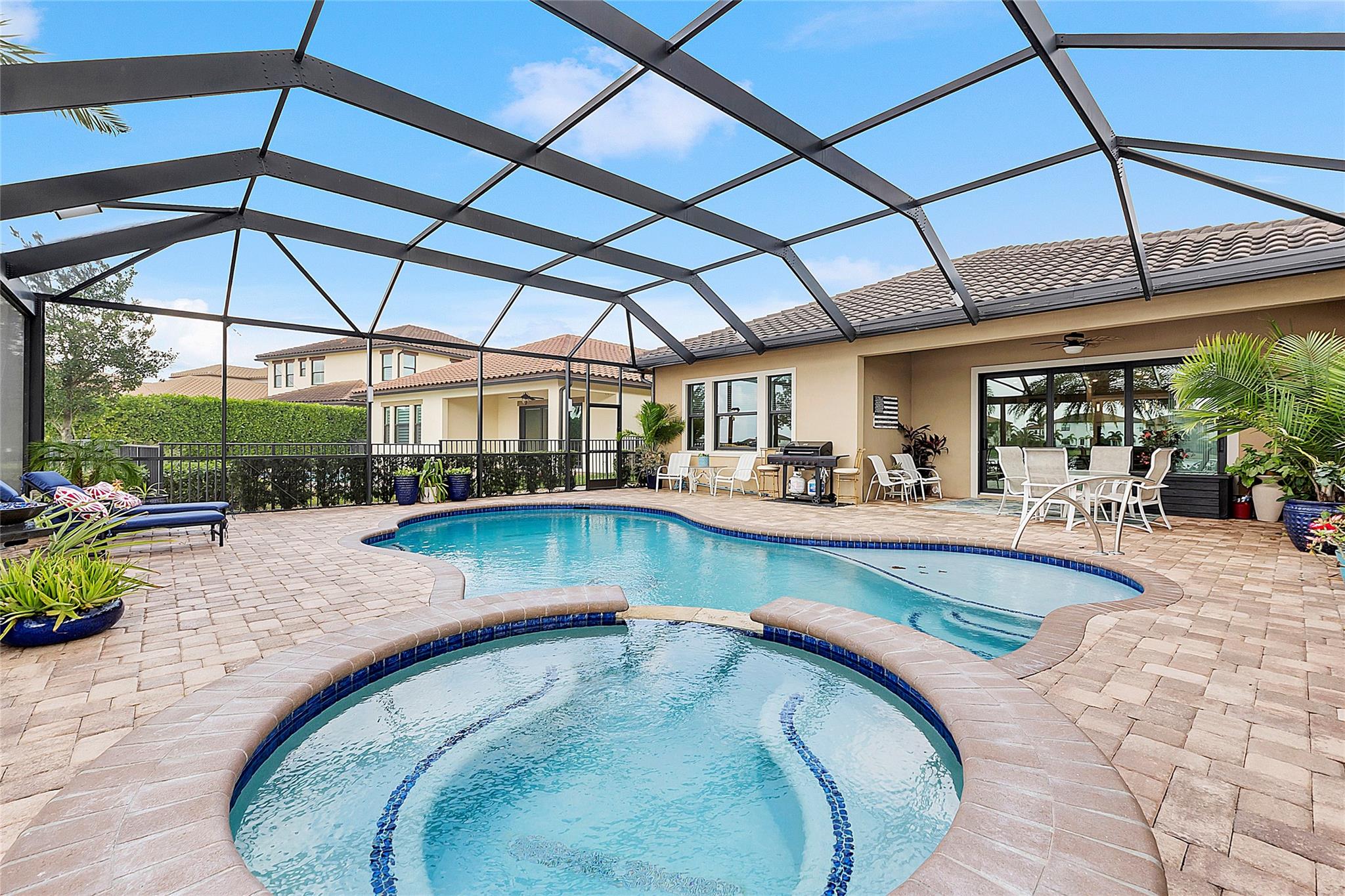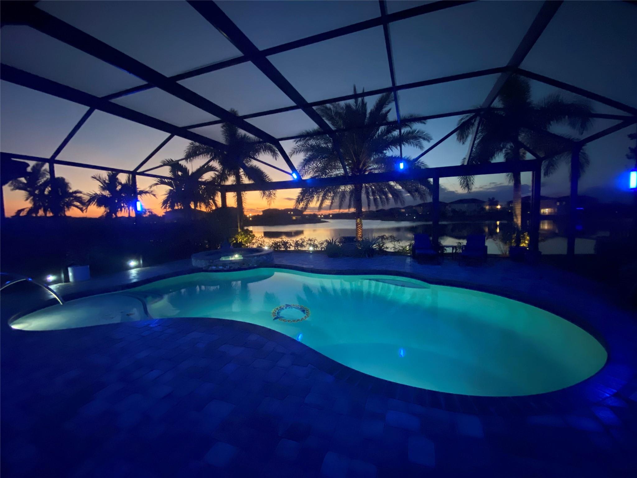 Stunning one story home nestled in the desirable community of Parkland Bay. This exquisite residence features a breathtaking saltwater heated pool & spa, perfectly positioned to capture gorgeous lakefront sunsets. Enjoy year round outdoor living in the screened patio with designer multi colored lighting, lush custom landscaping with up-lighting for resort style ambiance. Step inside to find elegant crown molding throughout, Kitchen with premium cabinetry & a beautiful backsplash. The primary suite offers a spacious custom walk-in-closet. Epoxy garage floors, Halo LED air purifier AC system. Enjoy resort style amenities including a clubhouse, pool, cabanas, entertainment pavilion, culinary kitchen, fitness center, kids club, tennis, basketball & pickleball courts & tot lot. A-rated schools.