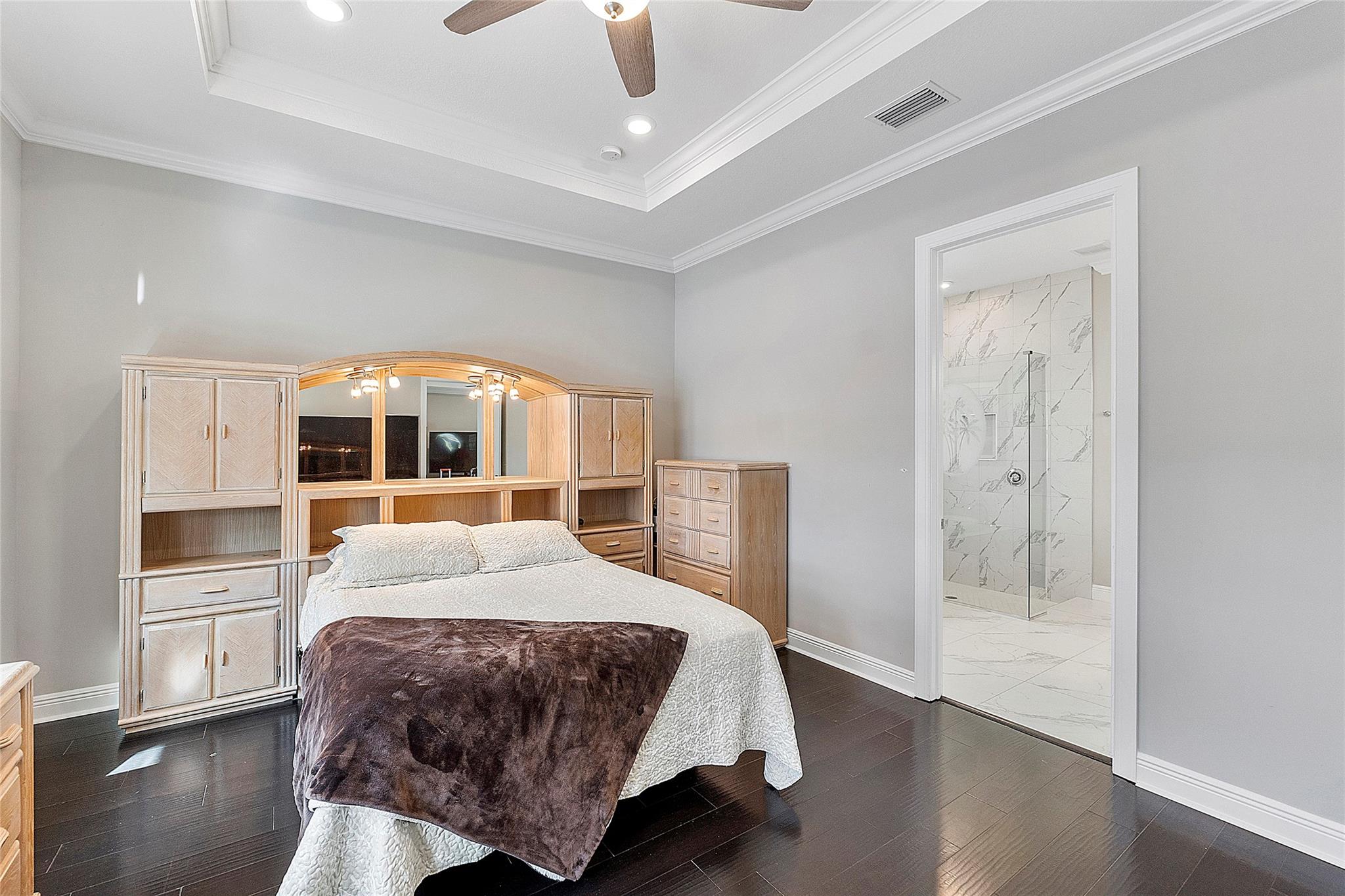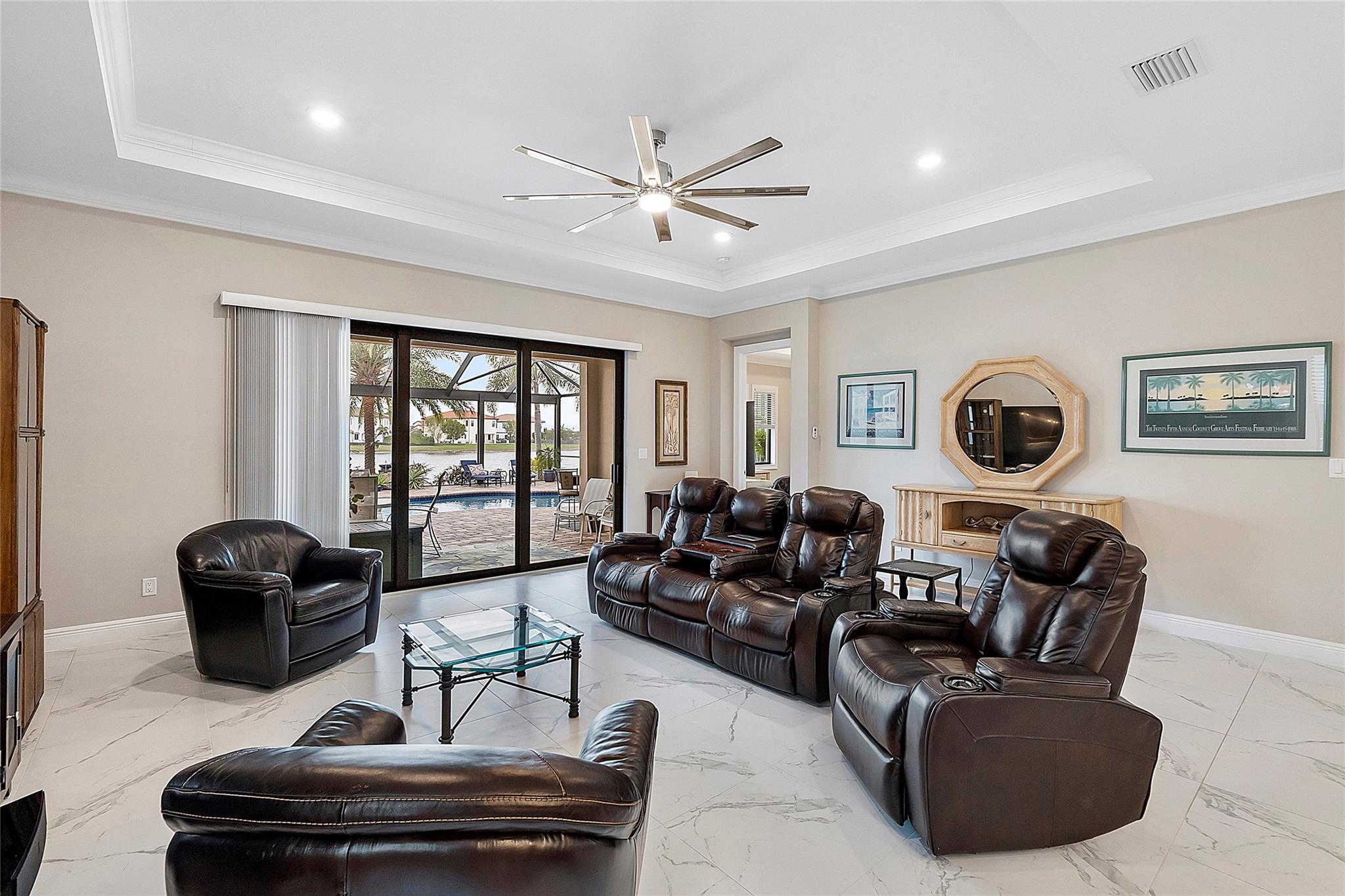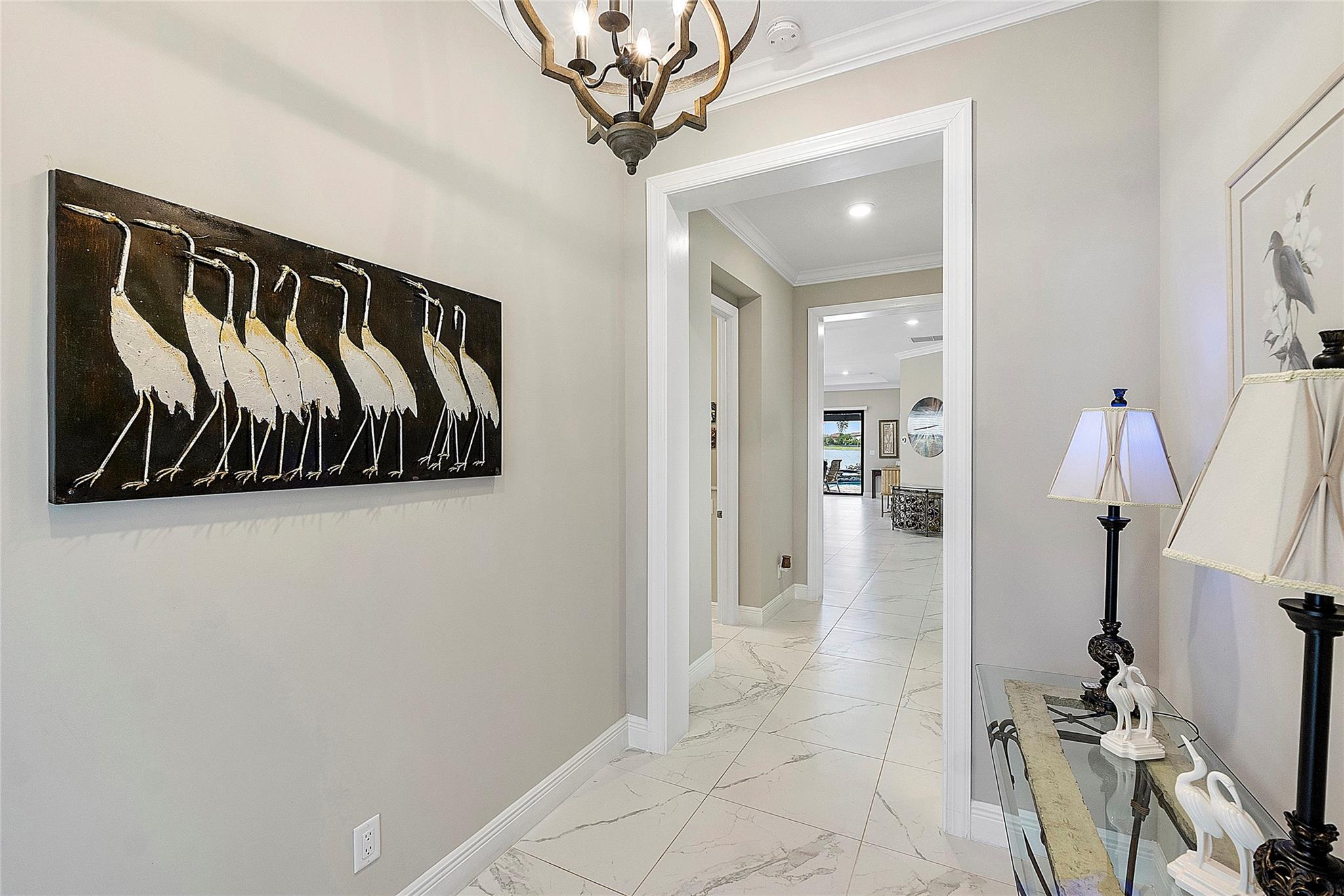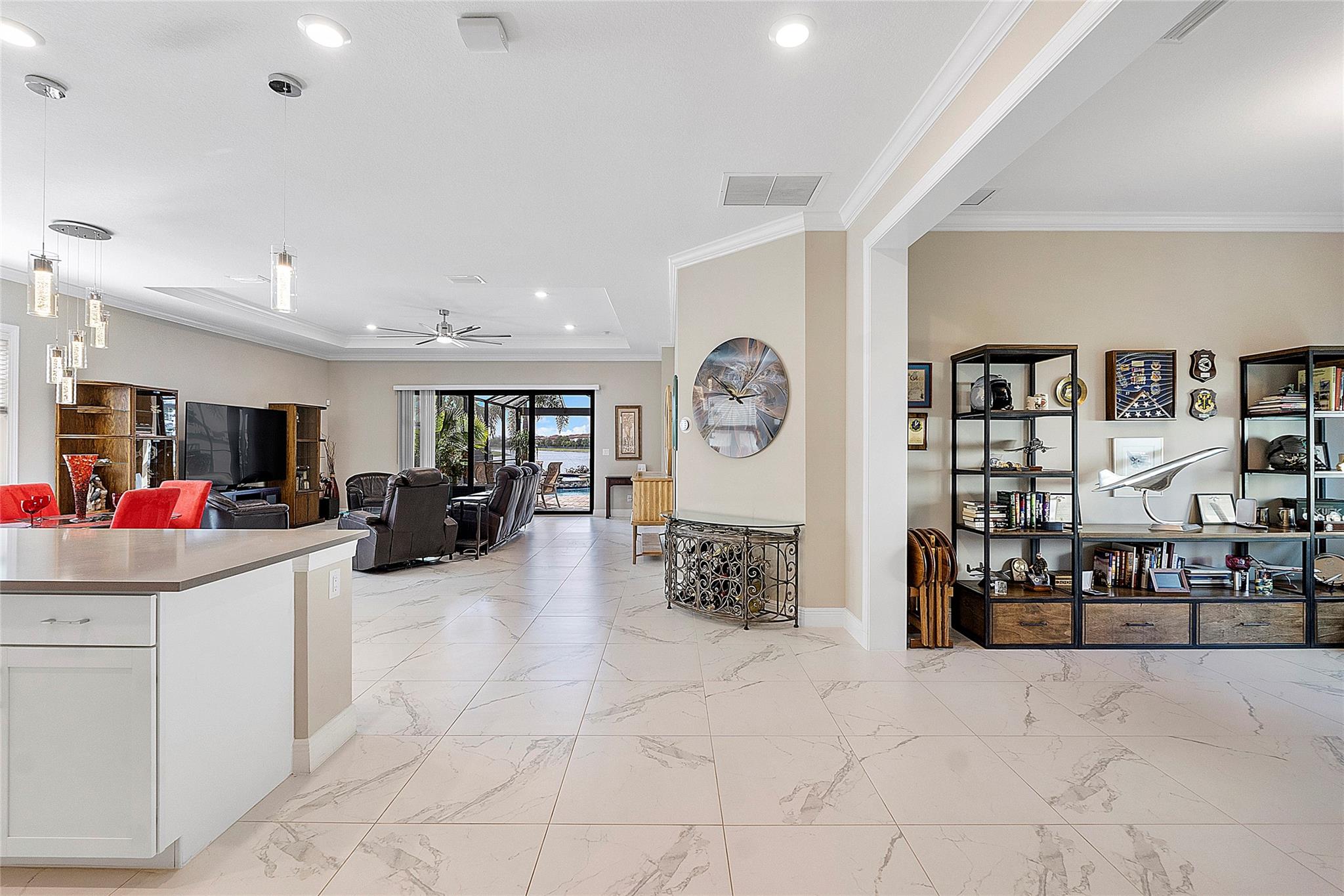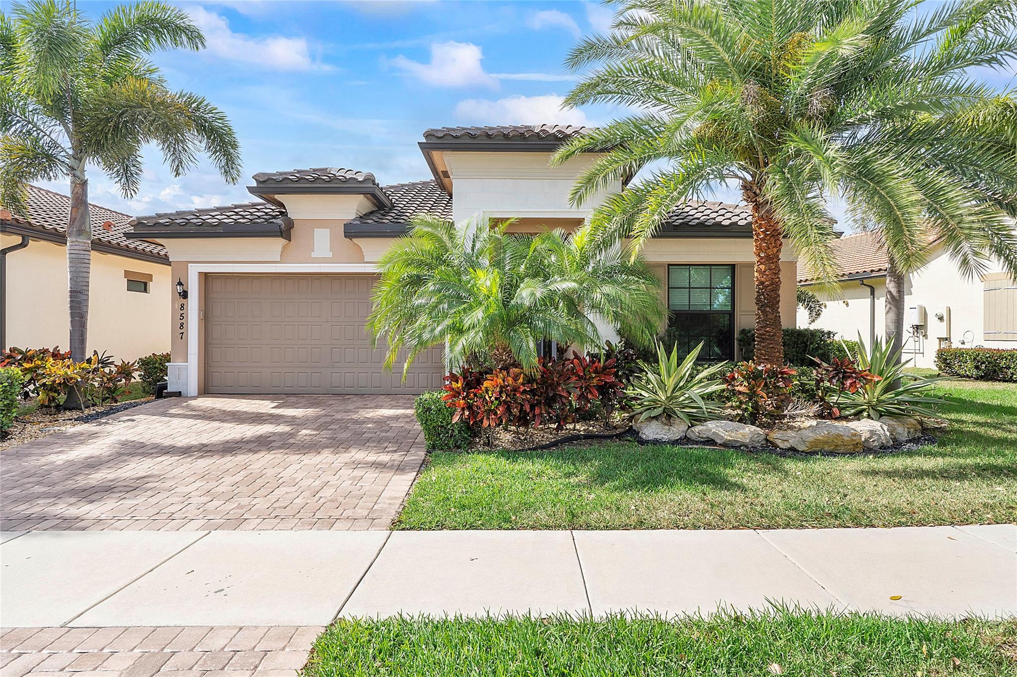 Stunning one story home nestled in the desirable community of Parkland Bay. This exquisite residence features a breathtaking saltwater heated pool & spa, perfectly positioned to capture gorgeous lakefront sunsets. Enjoy year round outdoor living in the screened patio with designer multi colored lighting, lush custom landscaping with up-lighting for resort style ambiance. Step inside to find elegant crown molding throughout, Kitchen with premium cabinetry & a beautiful backsplash. The primary suite offers a spacious custom walk-in-closet. Epoxy garage floors, Halo LED air purifier AC system. Enjoy resort style amenities including a clubhouse, pool, cabanas, entertainment pavilion, culinary kitchen, fitness center, kids club, tennis, basketball & pickleball courts & tot lot. A-rated schools.