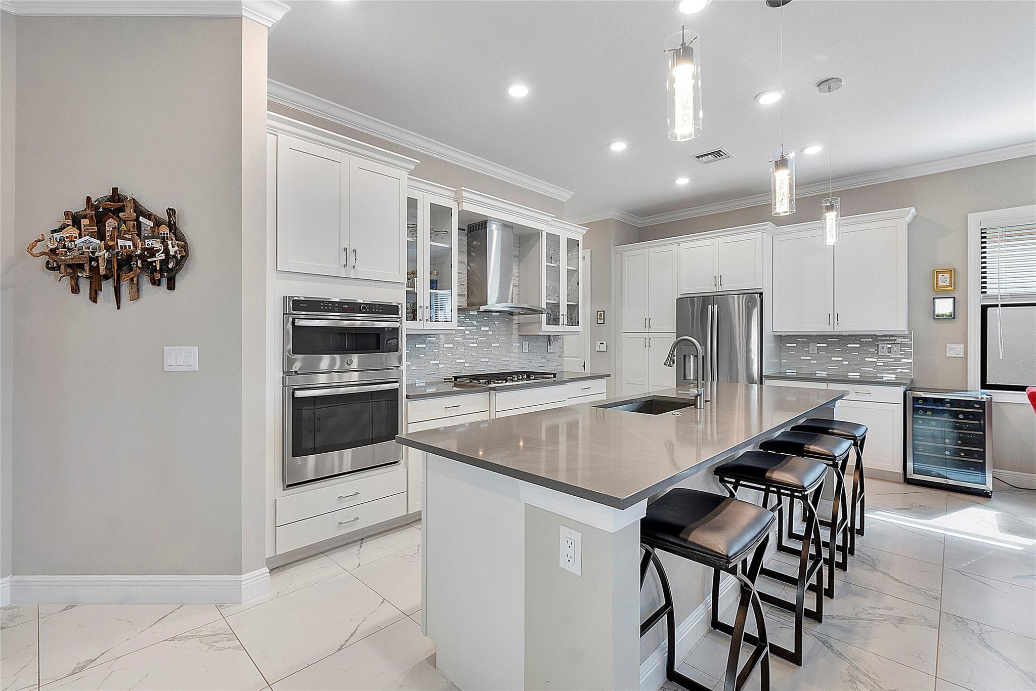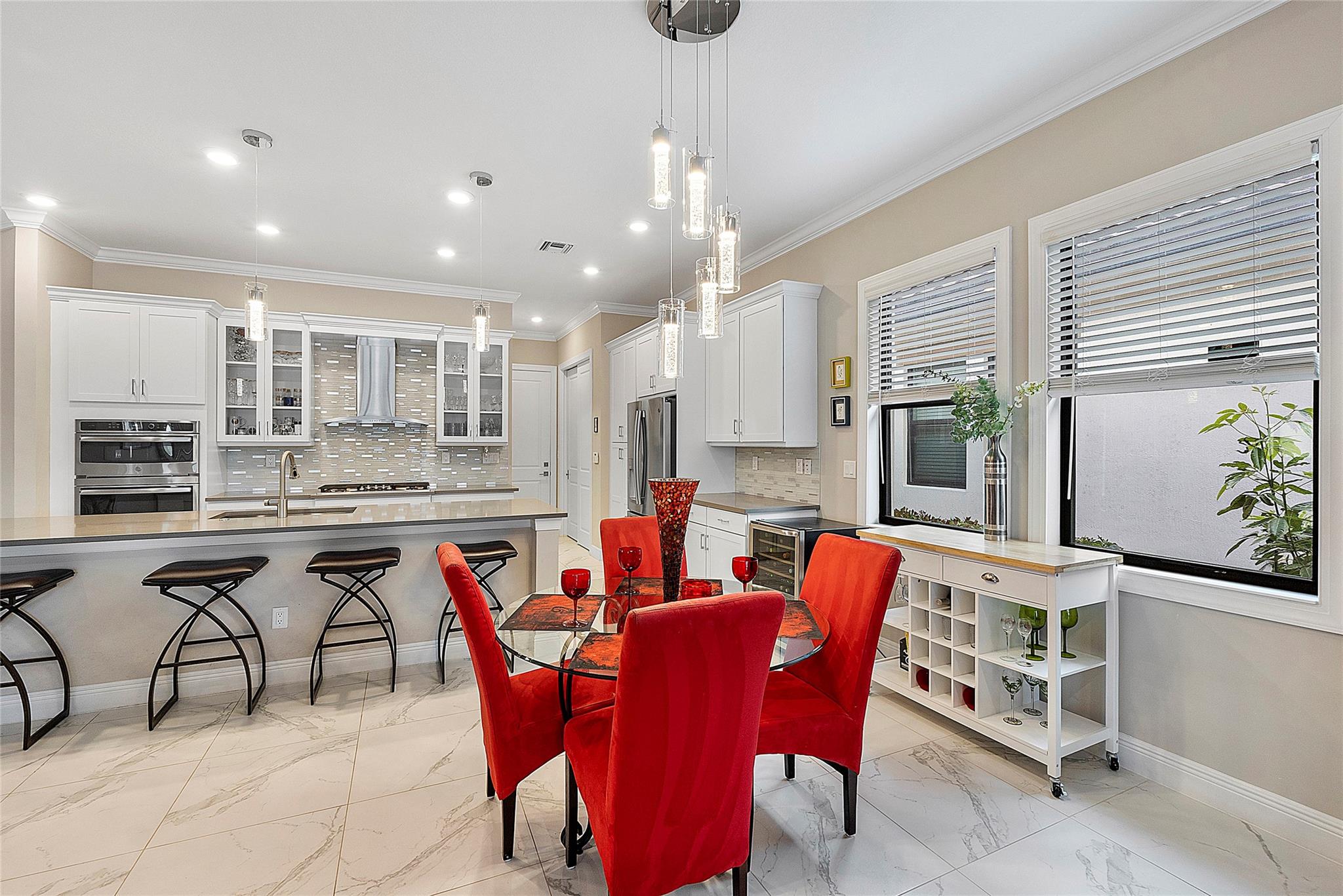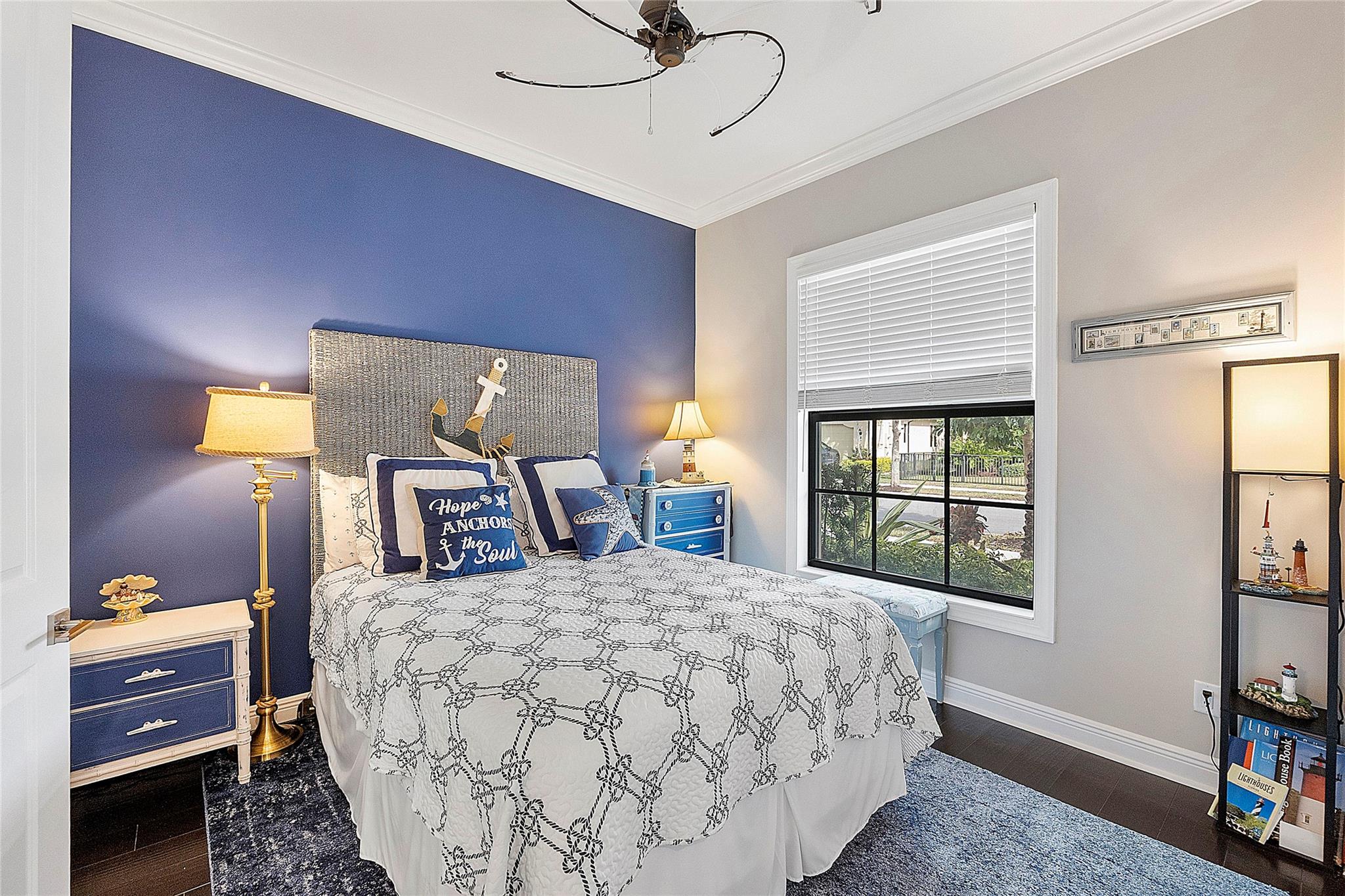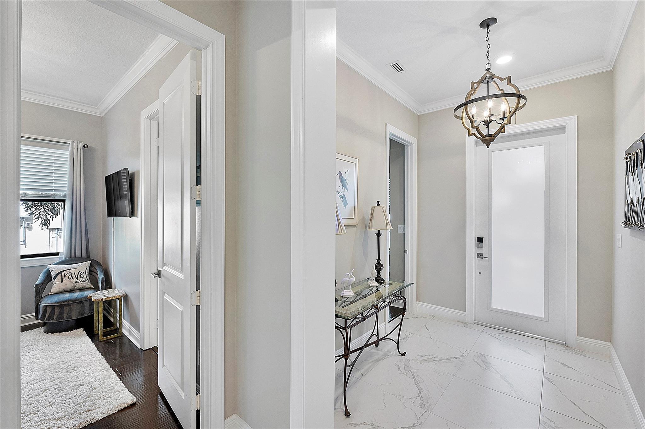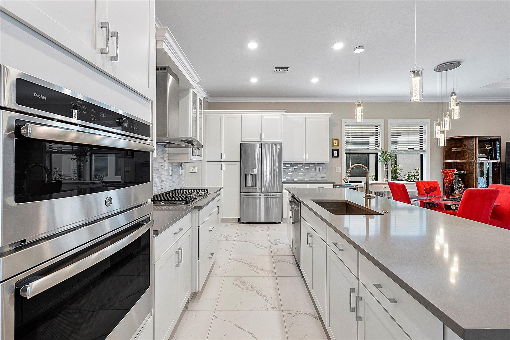 Stunning one story home nestled in the desirable community of Parkland Bay. This exquisite residence features a breathtaking saltwater heated pool & spa, perfectly positioned to capture gorgeous lakefront sunsets. Enjoy year round outdoor living in the screened patio with designer multi colored lighting, lush custom landscaping with up-lighting for resort style ambiance. Step inside to find elegant crown molding throughout, Kitchen with premium cabinetry & a beautiful backsplash. The primary suite offers a spacious custom walk-in-closet. Epoxy garage floors, Halo LED air purifier AC system. Enjoy resort style amenities including a clubhouse, pool, cabanas, entertainment pavilion, culinary kitchen, fitness center, kids club, tennis, basketball & pickleball courts & tot lot. A-rated schools.