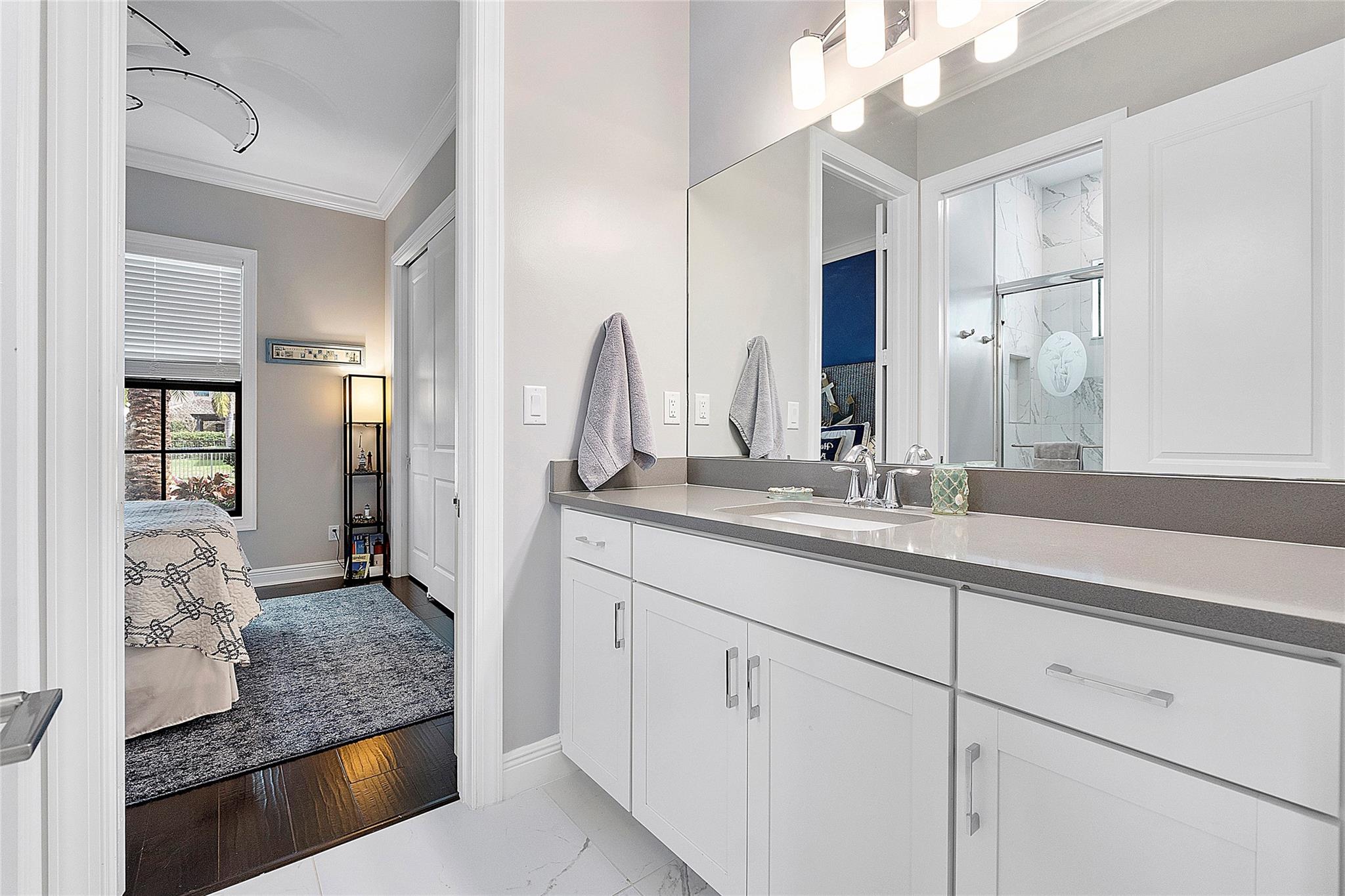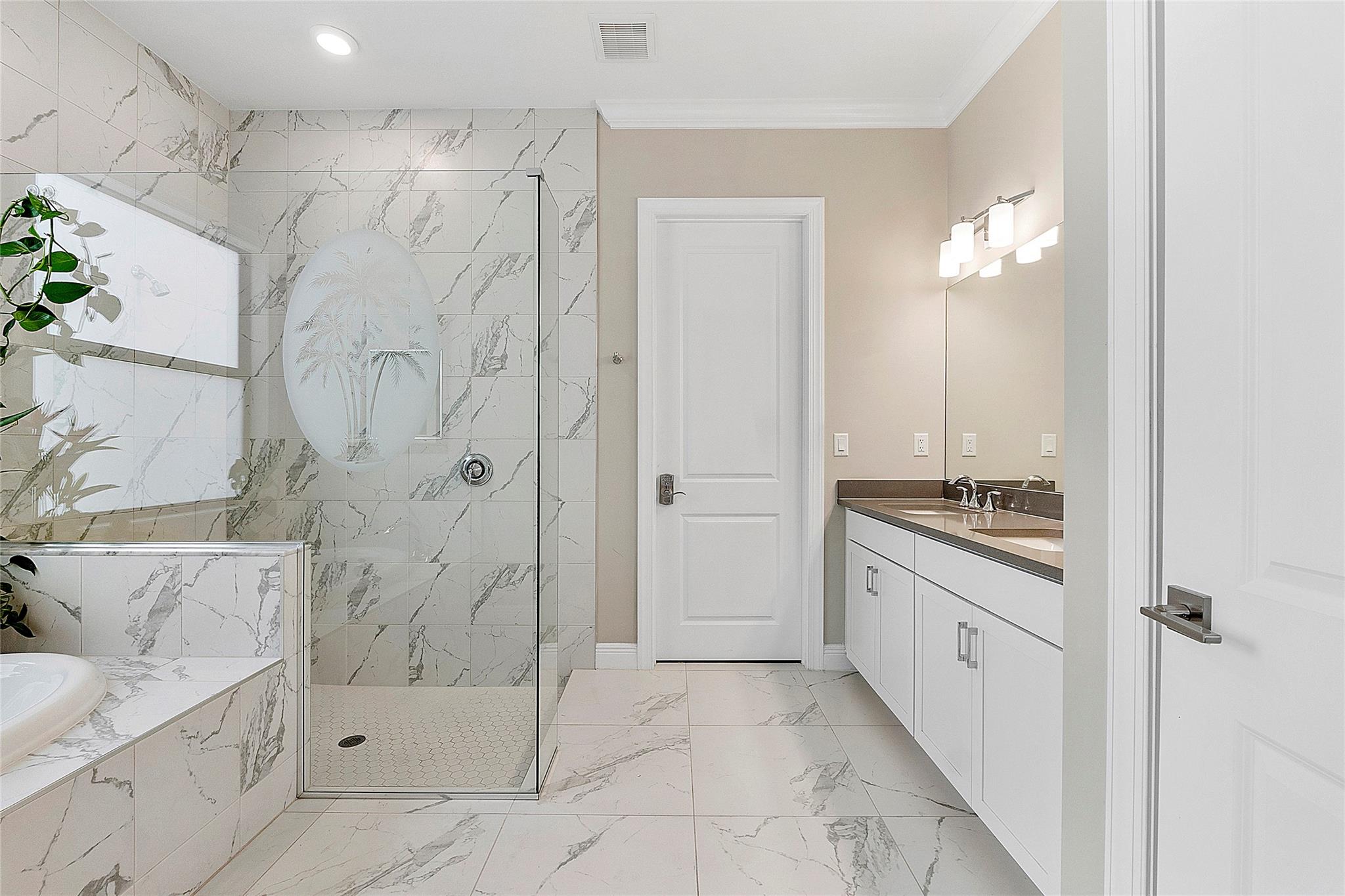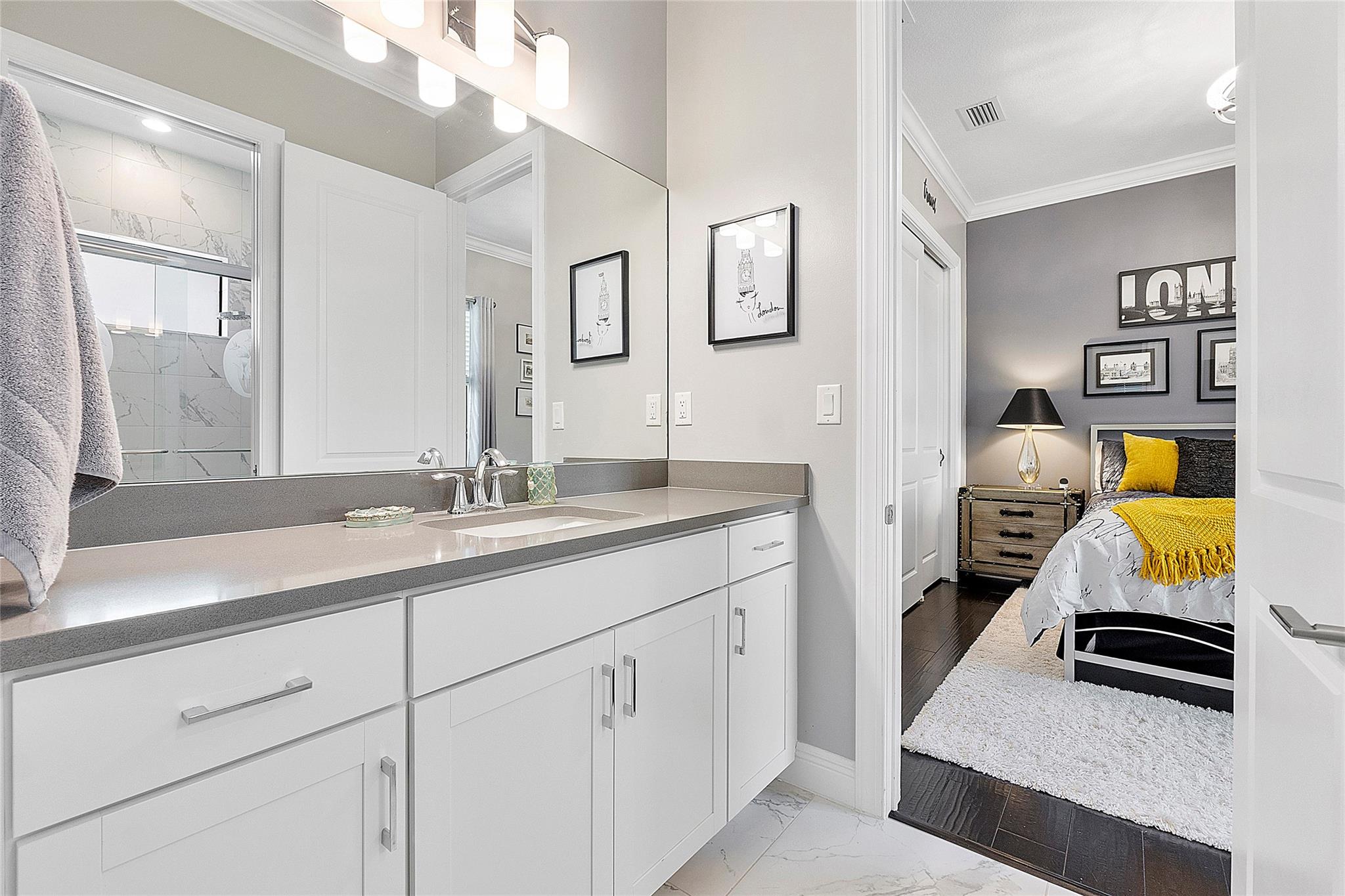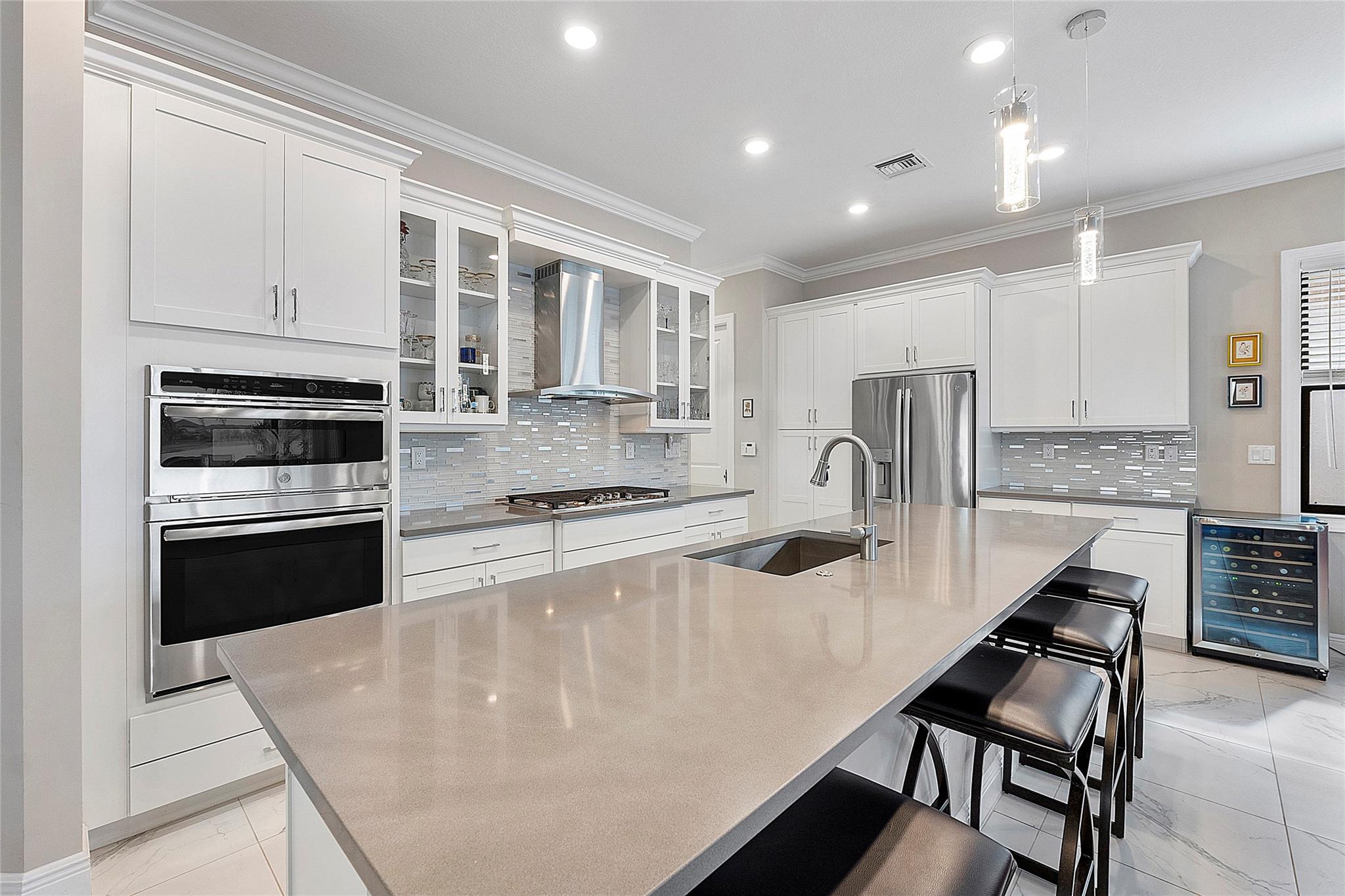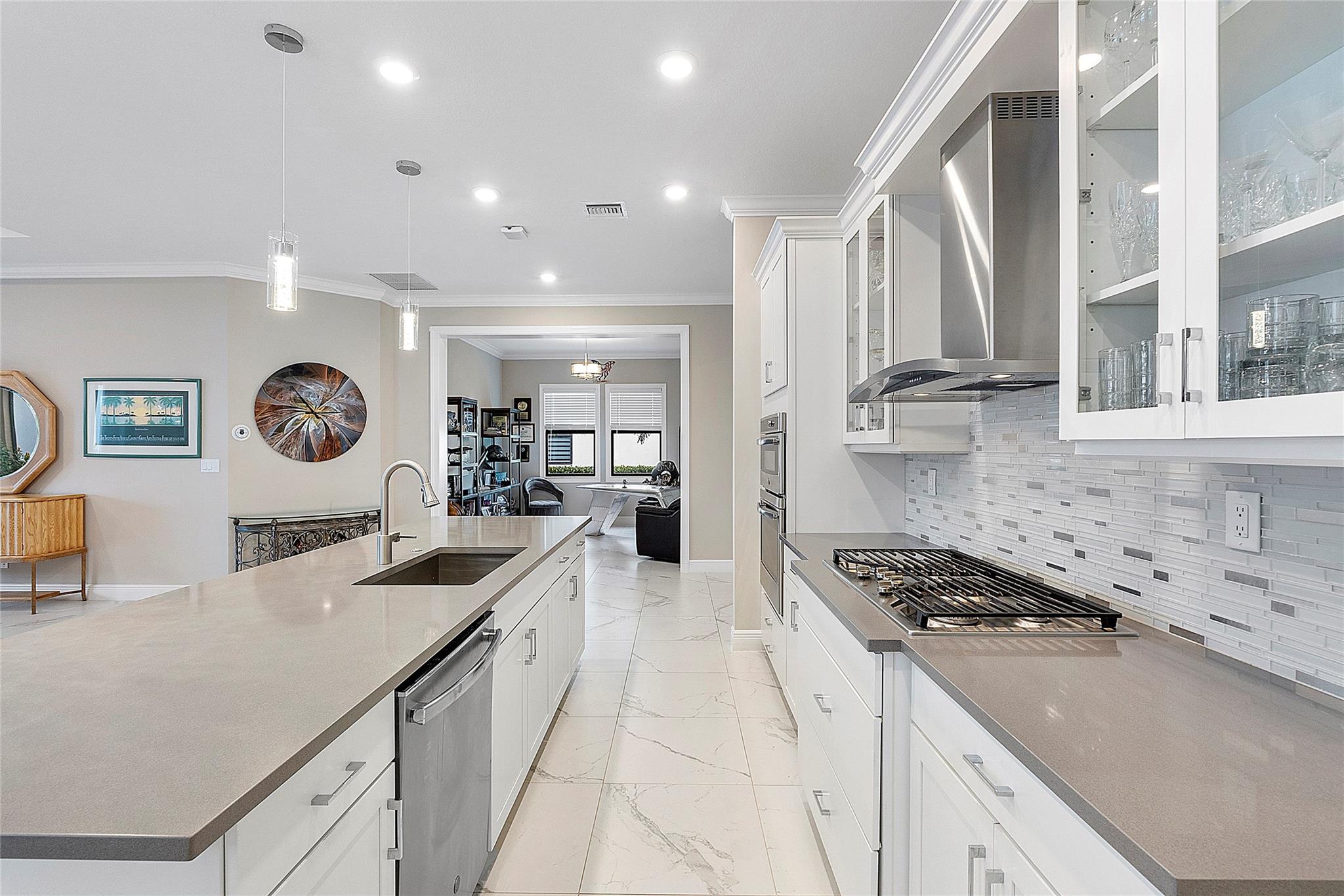 Stunning one story home nestled in the desirable community of Parkland Bay. This exquisite residence features a breathtaking saltwater heated pool & spa, perfectly positioned to capture gorgeous lakefront sunsets. Enjoy year round outdoor living in the screened patio with designer multi colored lighting, lush custom landscaping with up-lighting for resort style ambiance. Step inside to find elegant crown molding throughout, Kitchen with premium cabinetry & a beautiful backsplash. The primary suite offers a spacious custom walk-in-closet. Epoxy garage floors, Halo LED air purifier AC system. Enjoy resort style amenities including a clubhouse, pool, cabanas, entertainment pavilion, culinary kitchen, fitness center, kids club, tennis, basketball & pickleball courts & tot lot. A-rated schools.
