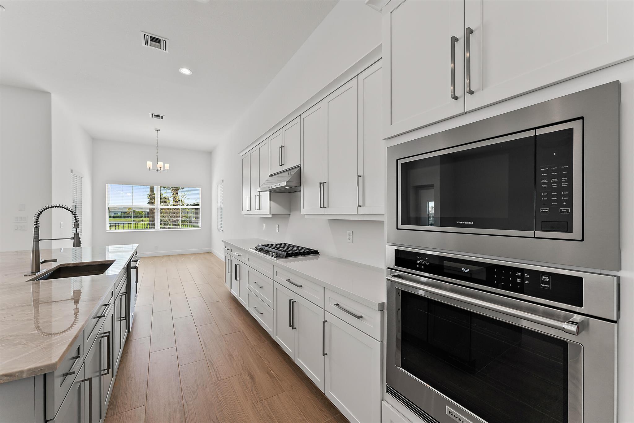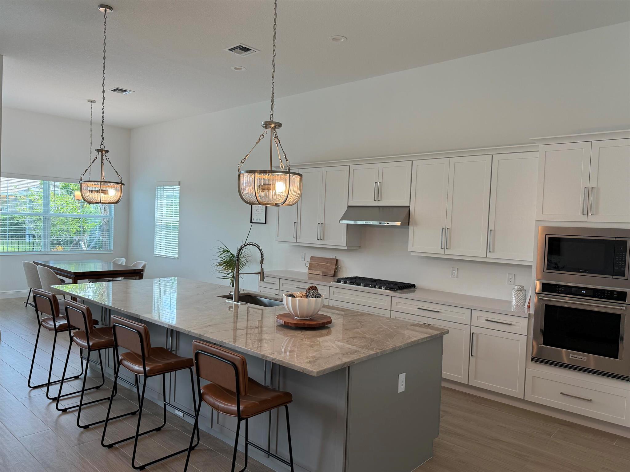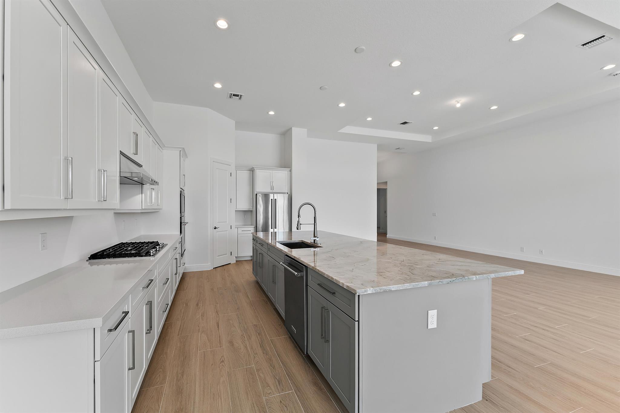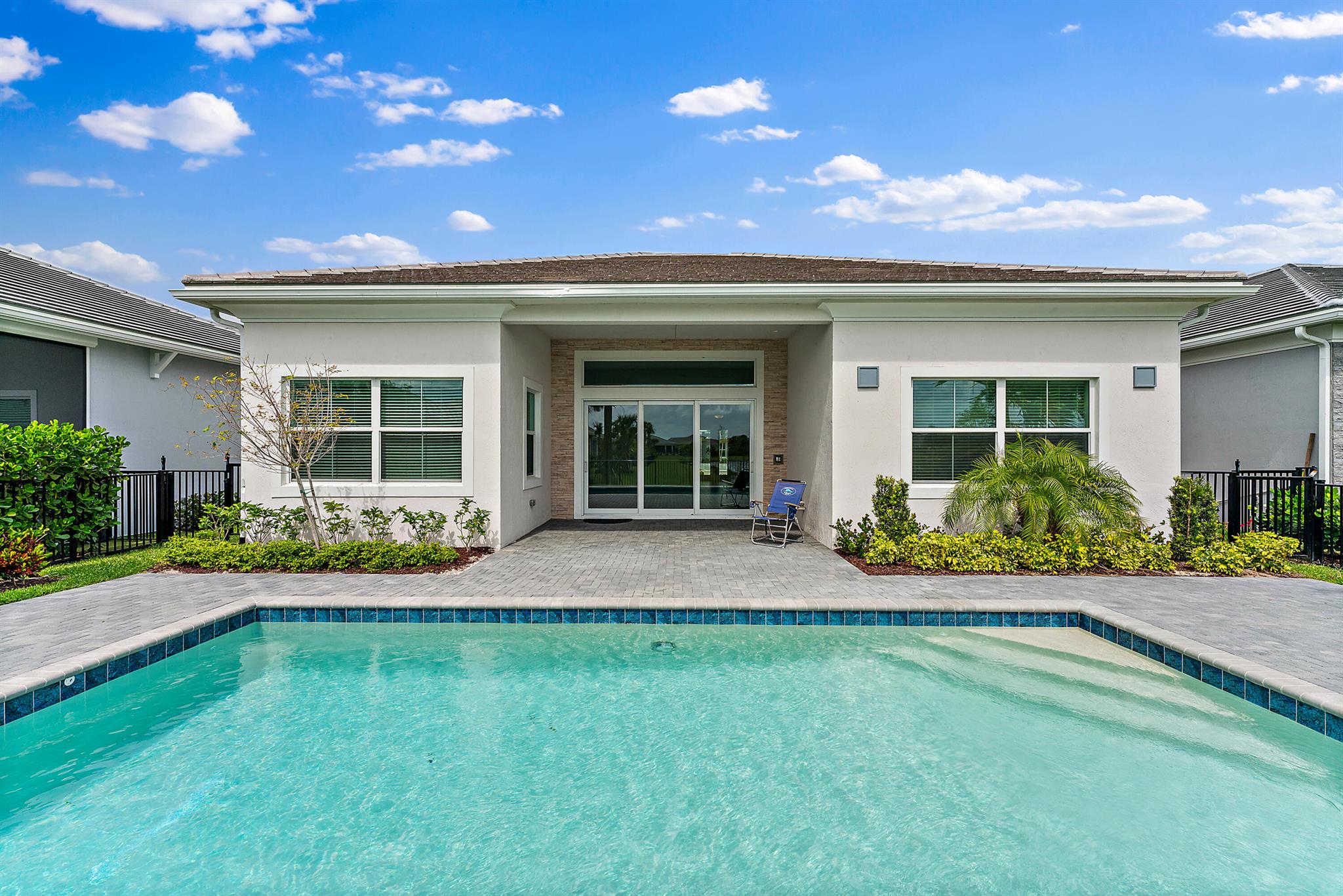 Welcome to this incredible opportunity to purchase a BRAND NEW HOME WITH OUT all the waiting time for a new build. Move in ready and NEVER LIVED IN 4 bedroom 3 full bath sitting on beautiful lot with BREATHTAKING long Lake views in the exclusive community of REGENCY AT AVENIR. GATED 55 plus neighborhood with an incredible private clubhouse offering a lifestyle dreams are made of. Resort style amenities including golf simulator, fitness center, pickle ball, tennis, firepit, card rooms, and art room all in a tropical resort setting. The Salerno model offers an open floor plan featuring a gorgeous kitchen with huge center island, dining nook, beautiful primary suite, inviting foyer and side load garage. Custom pool and patio overlooking lake with long unobstructed view