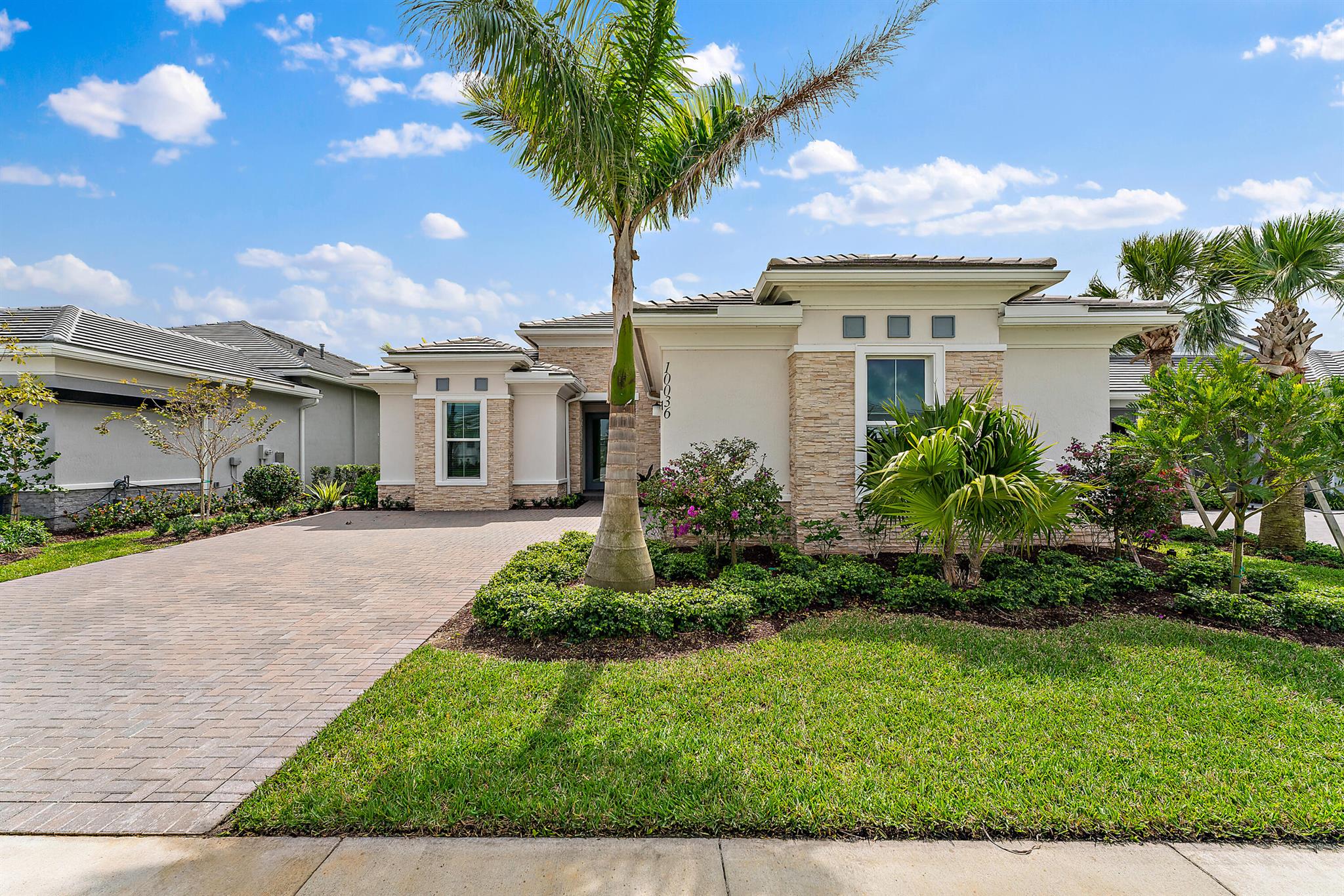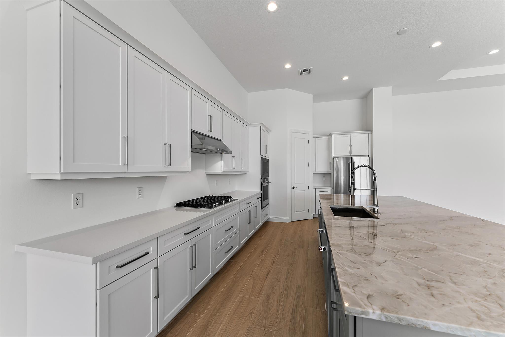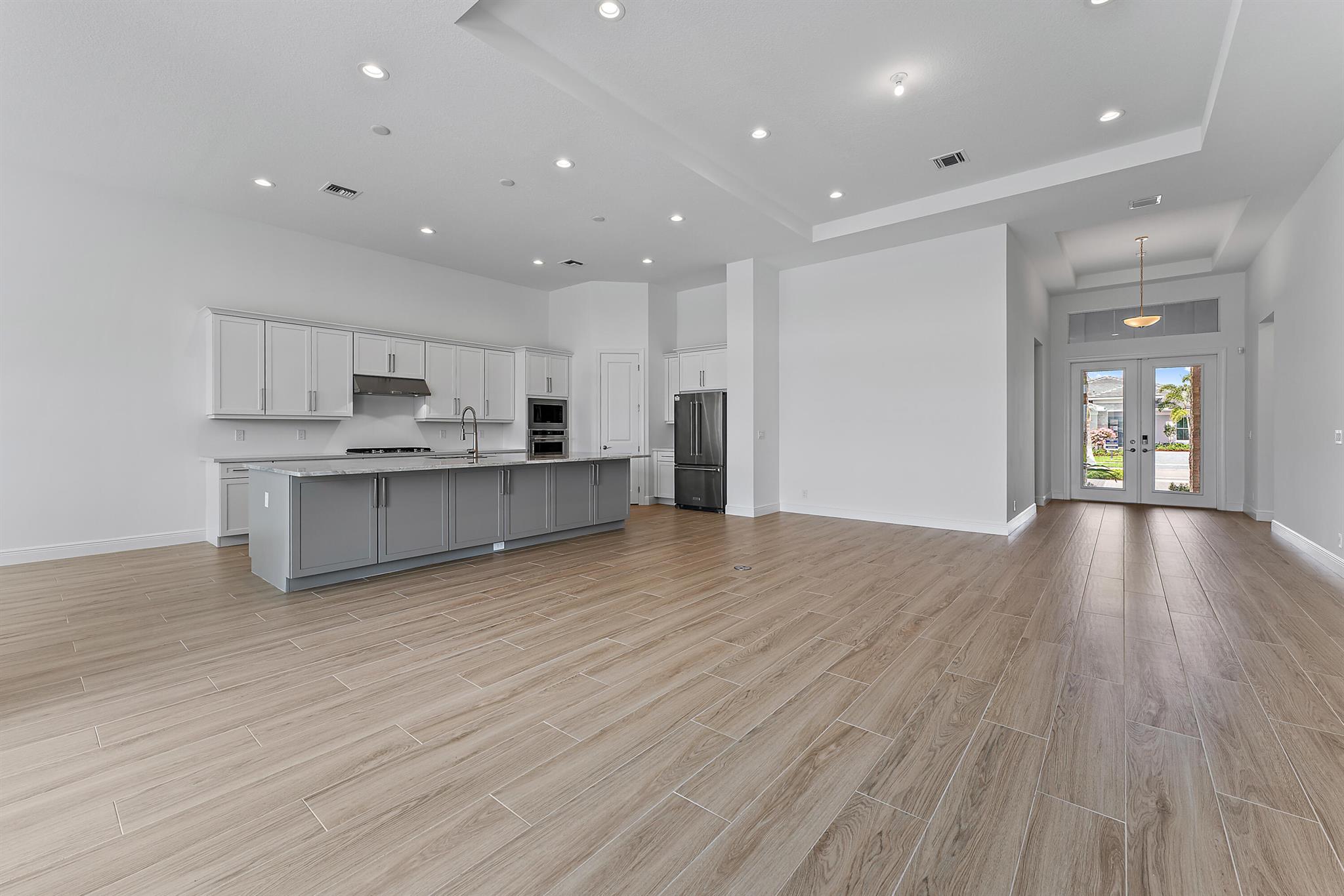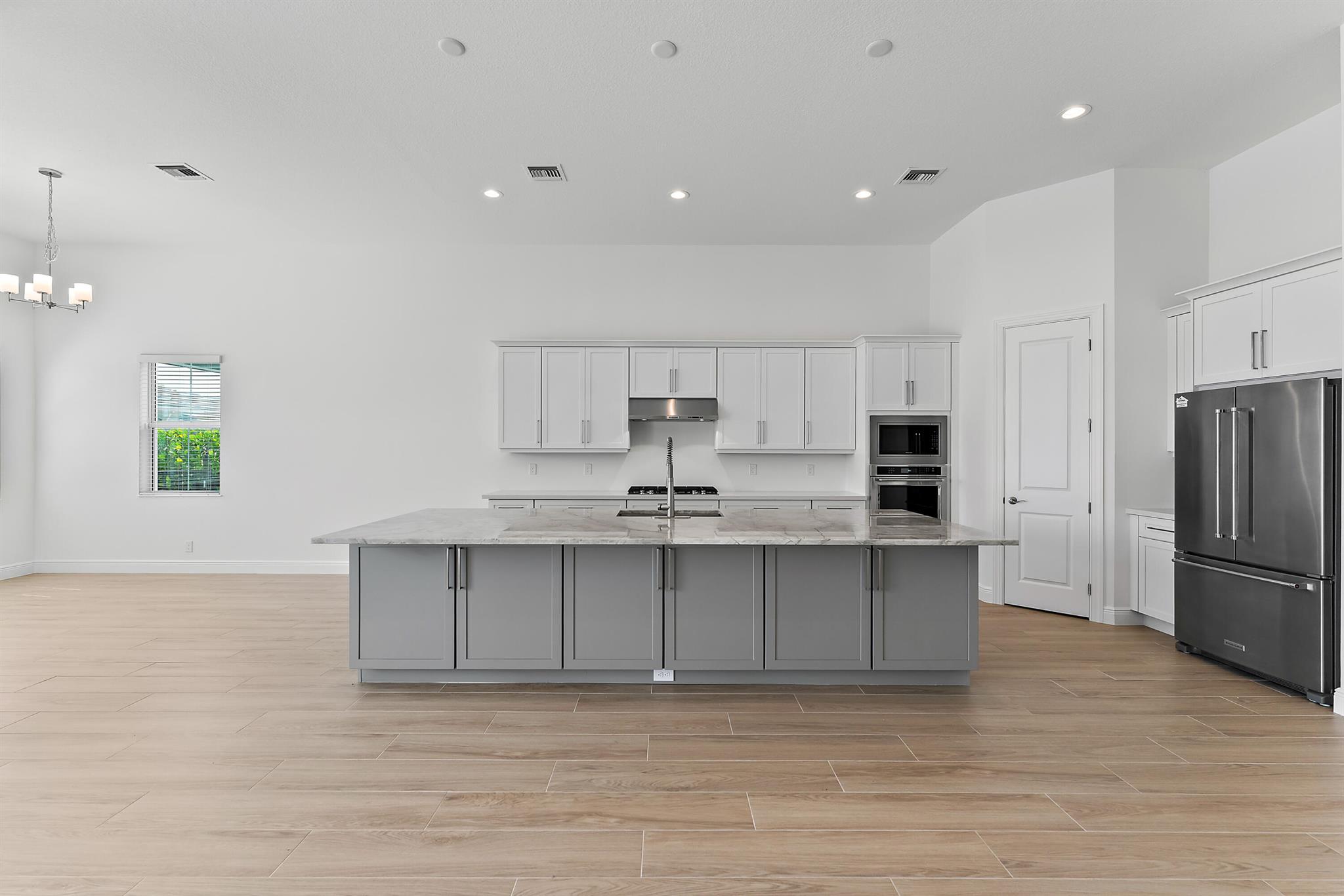 Welcome to this incredible opportunity to purchase a BRAND NEW HOME WITH OUT all the waiting time for a new build. Move in ready and NEVER LIVED IN 4 bedroom 3 full bath sitting on beautiful lot with BREATHTAKING long Lake views in the exclusive community of REGENCY AT AVENIR. GATED 55 plus neighborhood with an incredible private clubhouse offering a lifestyle dreams are made of. Resort style amenities including golf simulator, fitness center, pickle ball, tennis, firepit, card rooms, and art room all in a tropical resort setting. The Salerno model offers an open floor plan featuring a gorgeous kitchen with huge center island, dining nook, beautiful primary suite, inviting foyer and side load garage. Custom pool and patio overlooking lake with long unobstructed view