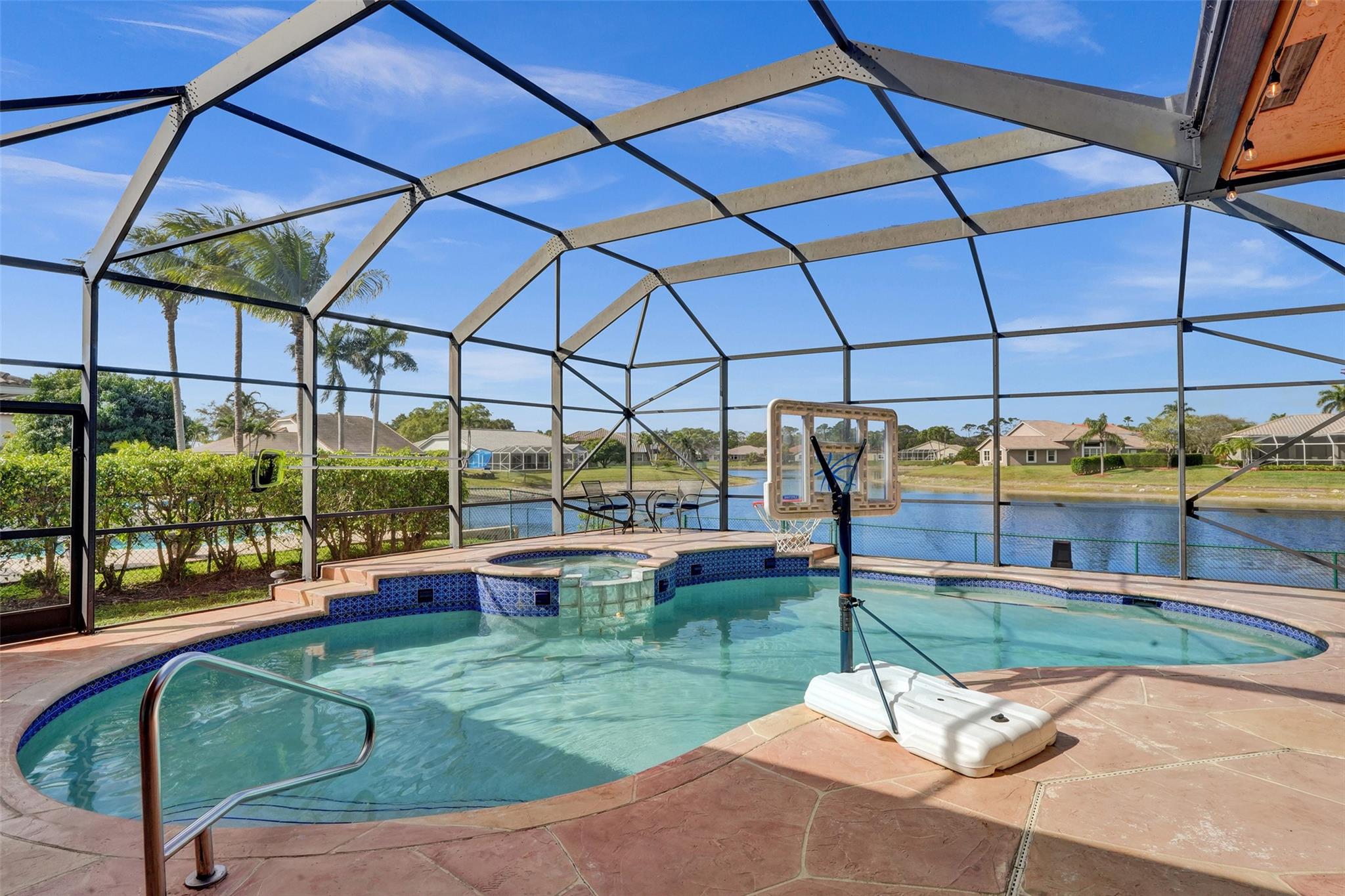 Experience Luxury Living In Carriage Pointe Estates! This Stunning Triple-Split 4Bed, 3Bath Home Includes A Bonus/Flex Rm & 3-Car Garage w/ EV Charger On An Oversized Lot w/ Breathtaking Lake Views! Savor The Sunset Landscape From Your Expansive Lanai, Take A Refreshing Dip In The Sparkling Pool Or Relax In The Spa. Designer Kitchen Features Large Undermount Sink, Deep Pots/Pans Drawers & Pull Outs, Spacious Pantry, LG Double Oven, Fridge & Microwave. Primary Suite Features Westward Views Through French Doors, Two Closets, En-Suite w/ Double Vanities, Shower Fit For A King w/ Sitting Ledge, Waterfall & Wand Shower Heads. Plantation Shutters & Charming Farmhouse Accents Elevate This Home’s Timeless Appeal. 24hr Manned Gate, Storm Protection, Low HOI & A 5Yr-Young Roof Provide Peace Of Mind.