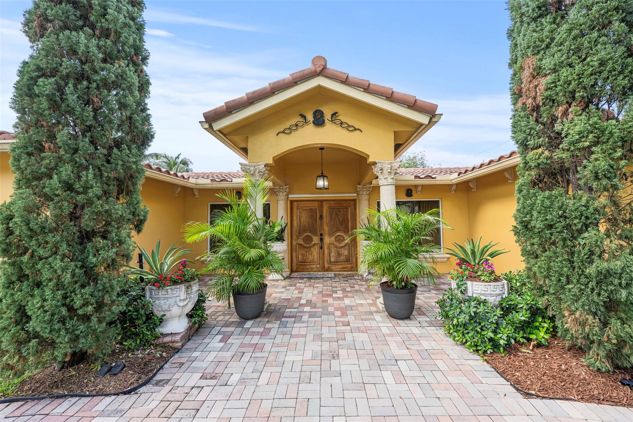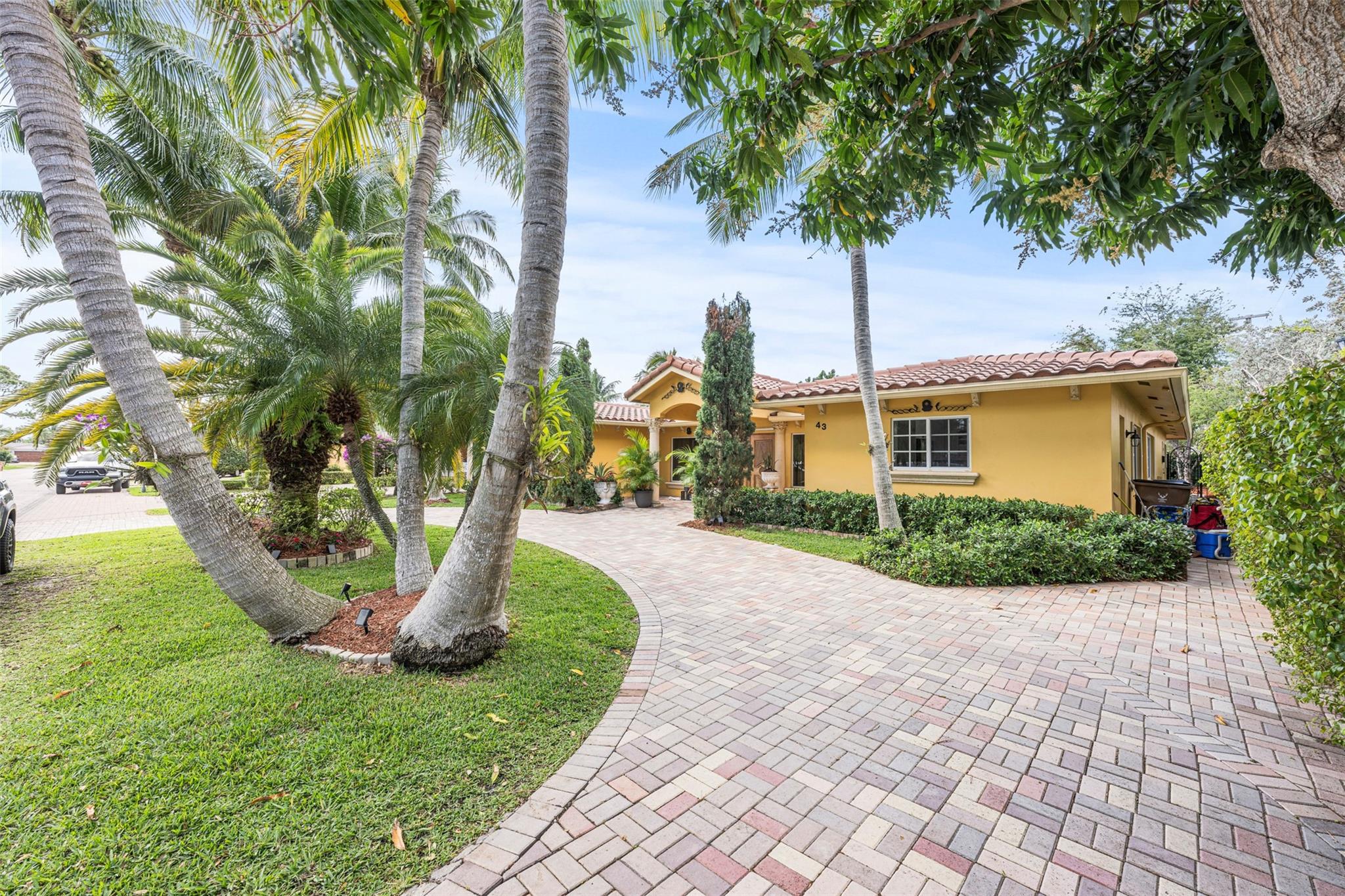 Welcome to the charming neighborhood of Pinehill Crest! Enjoy this rare opportunity to live in a highly sought after prime neighborhood in East Deerfield Beach, just minutes away from the beach and Deerfield Pier, restaurants, and shops as well as the Cove shopping plaza by the intercoastal. This beautiful home boasts 5 bedrooms & 3 baths, that sits on 10,469 sq ft. lot, 4 bedrooms are located in main house and 1 bed & 1 bath in the in-law suite with full kitchen remodeled 2021. Tile flooring throughout, master bathroom with roman tub, lots of natural lighting, wood-burning fireplace, Circular driveway, oversized courtyard with pool and new tiki hut, great for entertainment! Roof 2015, solar panels 2019, water heater 2022, 2 A/C 2020/2018, hurricane windows 2014. Welcome to your new home!