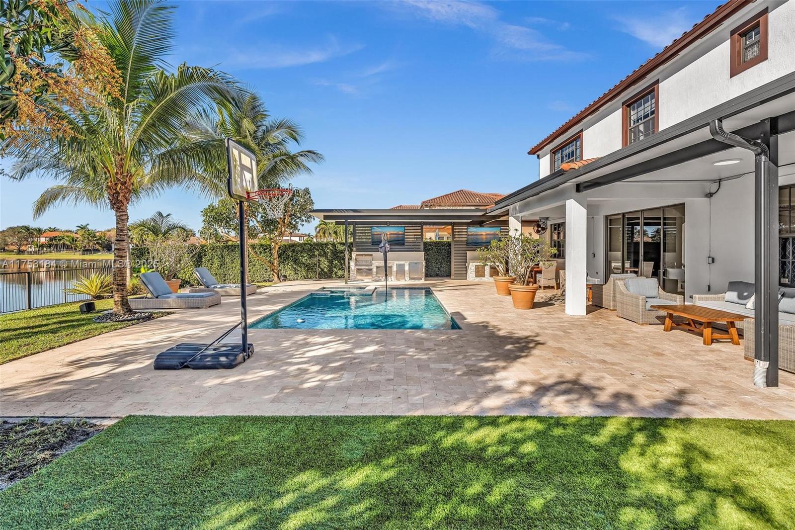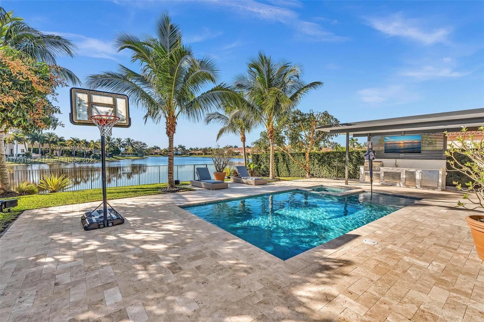 RARELY AVAILABLE VALENCIA MODEL ON OVERSIZED WIDE LAKE LOT IN MOST SOUGHT-AFTER ESTADA AT MONTERRA. YOU WILL LOVE ENTERTAINING IN THE AMAZING BACKYARD W/ HEATED POOL & JACUZZI, LARGE COVERED PATIO W/ OUTDOOR KITCHEN & 2 TV'S * 1ST FLOOR FEATURES A GOURMET KITCHEN W/ LARGE CENTER ISLAND OPEN TO GREAT ROOM, 2 BEDROOMS, 1.5 BATHS. 2ND FLOOR FEATURES 3 BEDROOMS, 3 BATHROOMS, AND SMALL LOFT AREA. OTHER FEATURES: FULLY FENCED YARD, IMPACT GLASS WINDOWS AND DOORS. WOOD FLOORS ON STAIRS & 2ND FLOOR. LOW HOA FEE INCLUDES 24-HR SECURITY GUARD, XFINITY CABLE, INTERNET & HBO, ADT ALARM MONITORING. CLOSE TO COOPER CITY'S A-RATED SCHOOLS, POSNACK JEWISH SCHOOL, JCC, HIGHWAYS, SHOPPING. HURRY TO SEE THIS ONE TODAY!!