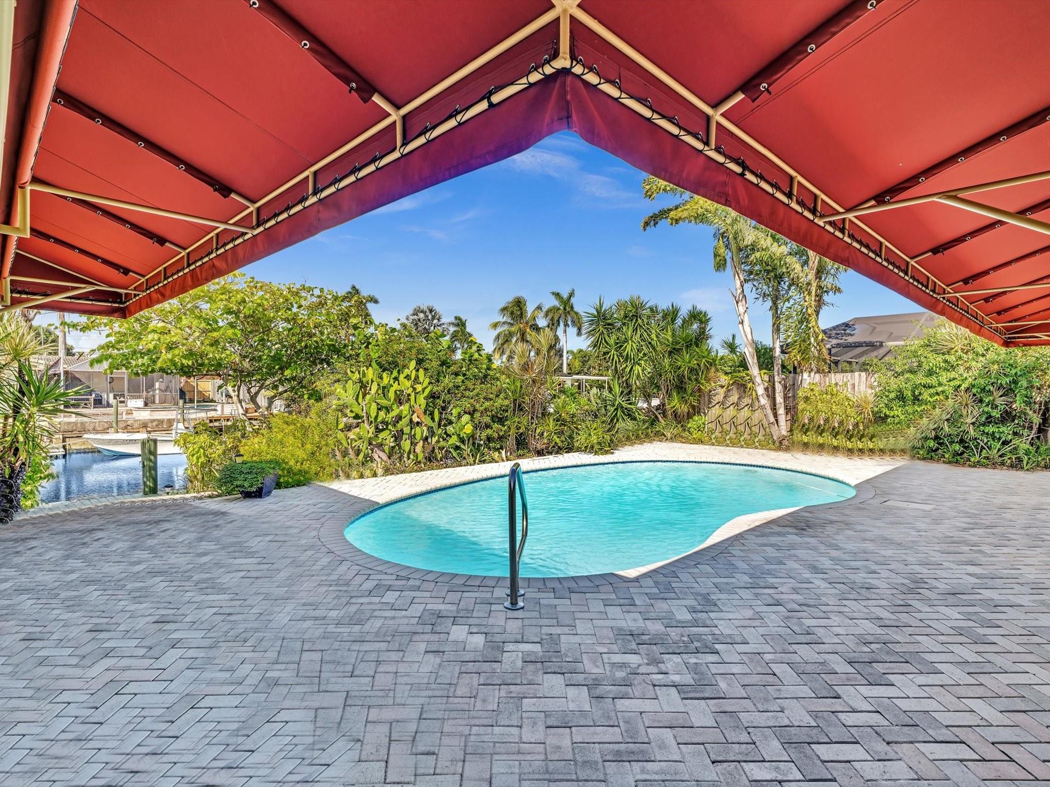 75' Waterfront with Ocean Access Pool home with 3 bedroom, 3 bath and a 2-Car Garage. Salt water heated pool, a cabana bath. Impact windows and doors. Barrel tiles roof. No sunken floor. Unobstructed canal view from the living and dining room. Gated front yard. Fruit trees: a mango and a papaya tree. Extra Large Master Bedroom feature vaulted ceiling, an extra large closet and views of the canal and the backyard. No HOA. Easy to show.