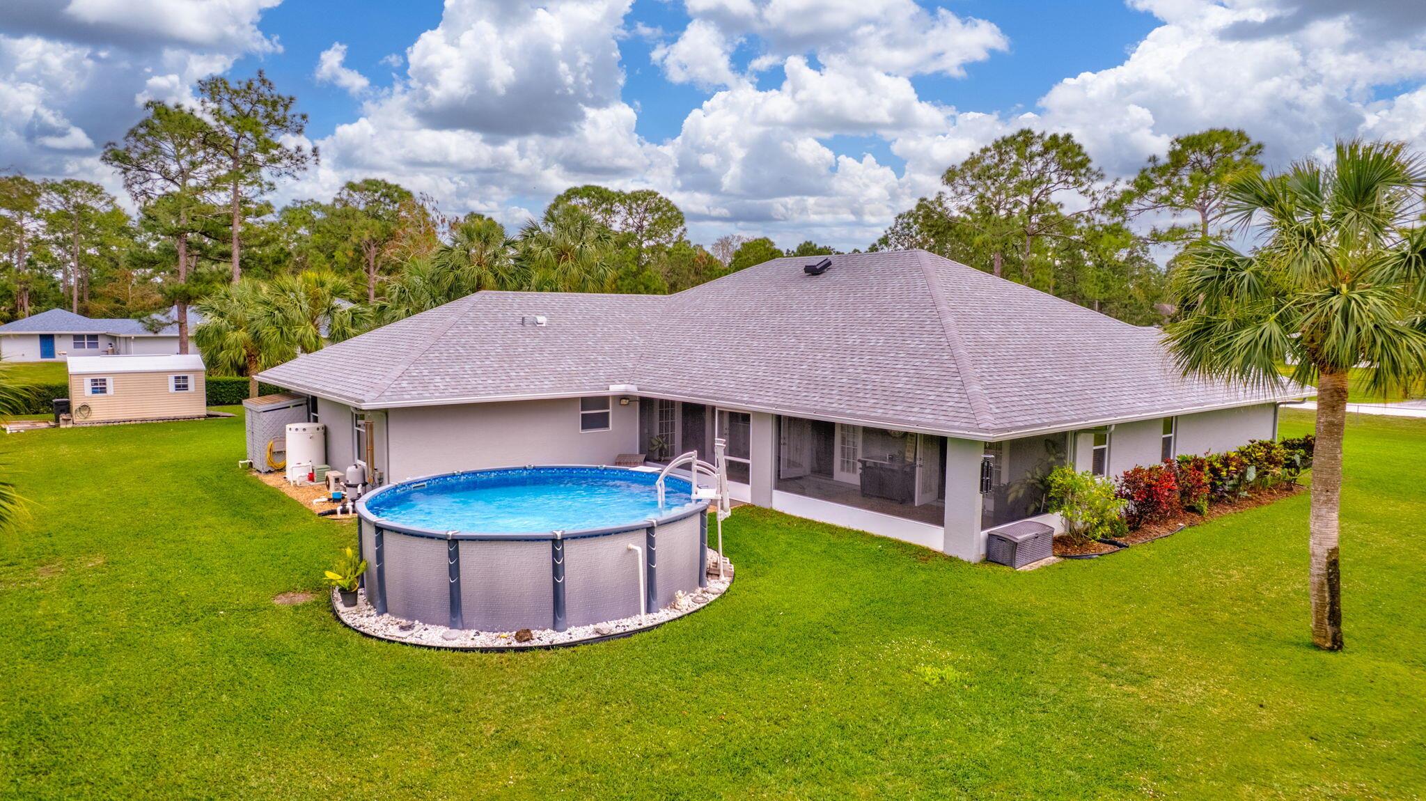 THE BUYER DID NOT QUALIFY FOR THEIR MORTGAGE. THEIR LOSS IS YOUR GAIN. NOW THIS HOME IS AVAILABLE FOR YOU! Nestled on a sprawling 1.28-acre canal front lot, this 4-bedroom, 2 1/2-bathroom home is a haven of tranquility and modern conveniences. Surrounded by an electric gate and featuring an extra-long driveway, the property offers both privacy and grandeur. The lush landscaping, punctuated by a majestic mango tree, fire pit, and an underground sprinkler system, sets the tone for serene outdoor living. The highlight of the backyard is the above-ground saltwater, heated swimming pool, perfect for year-round enjoyment. The new roof, installed in 2024, comes with a solar exhaust fan, ensuring energy efficiency. The home also boasts new water pumps.