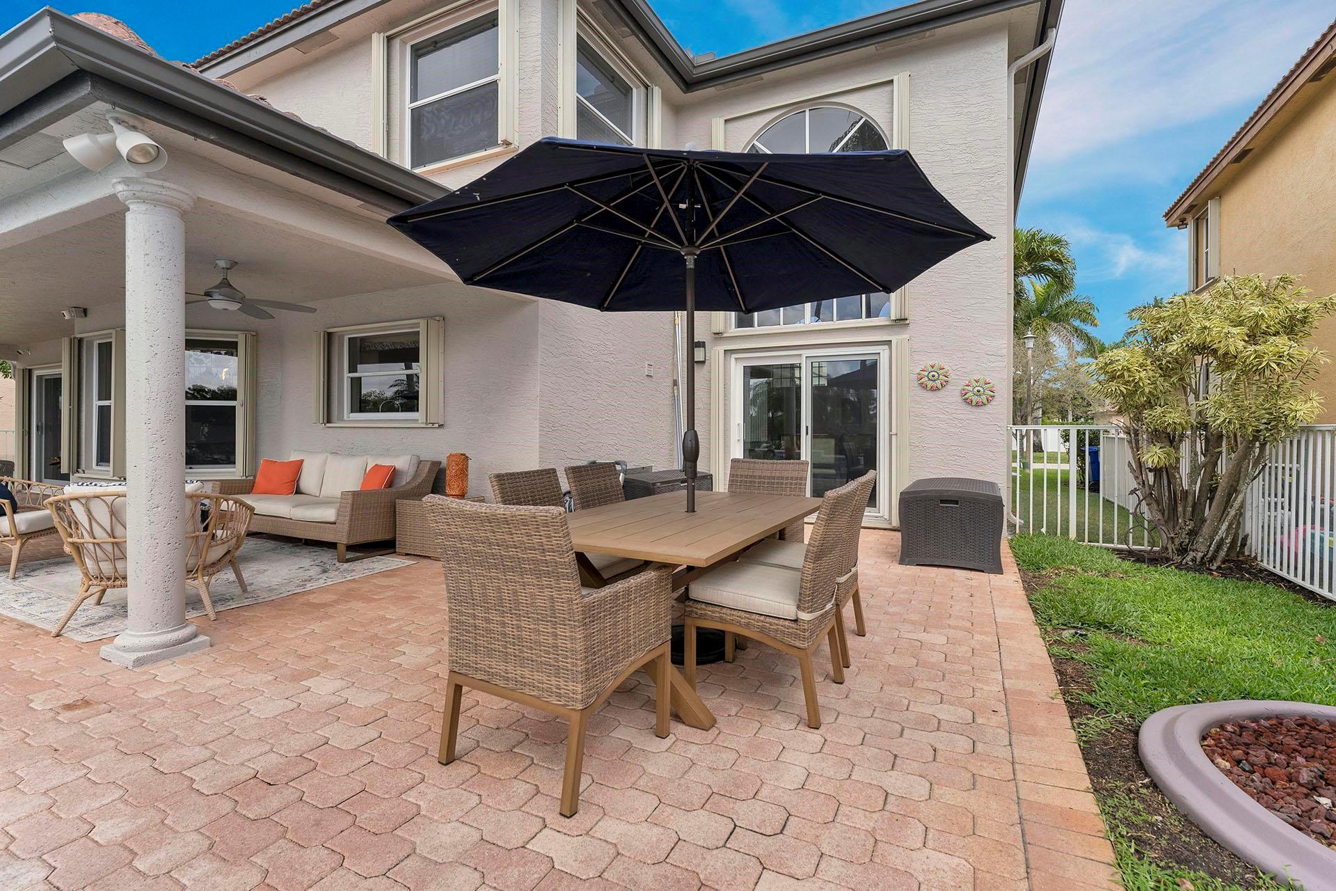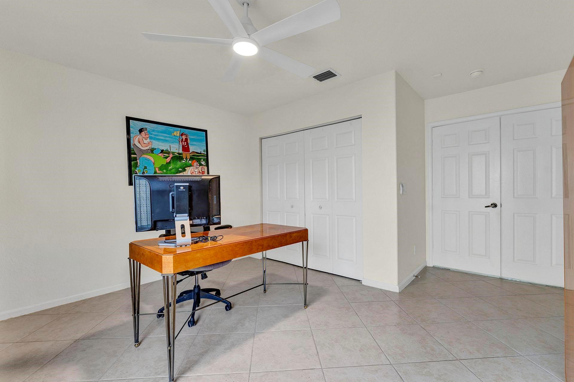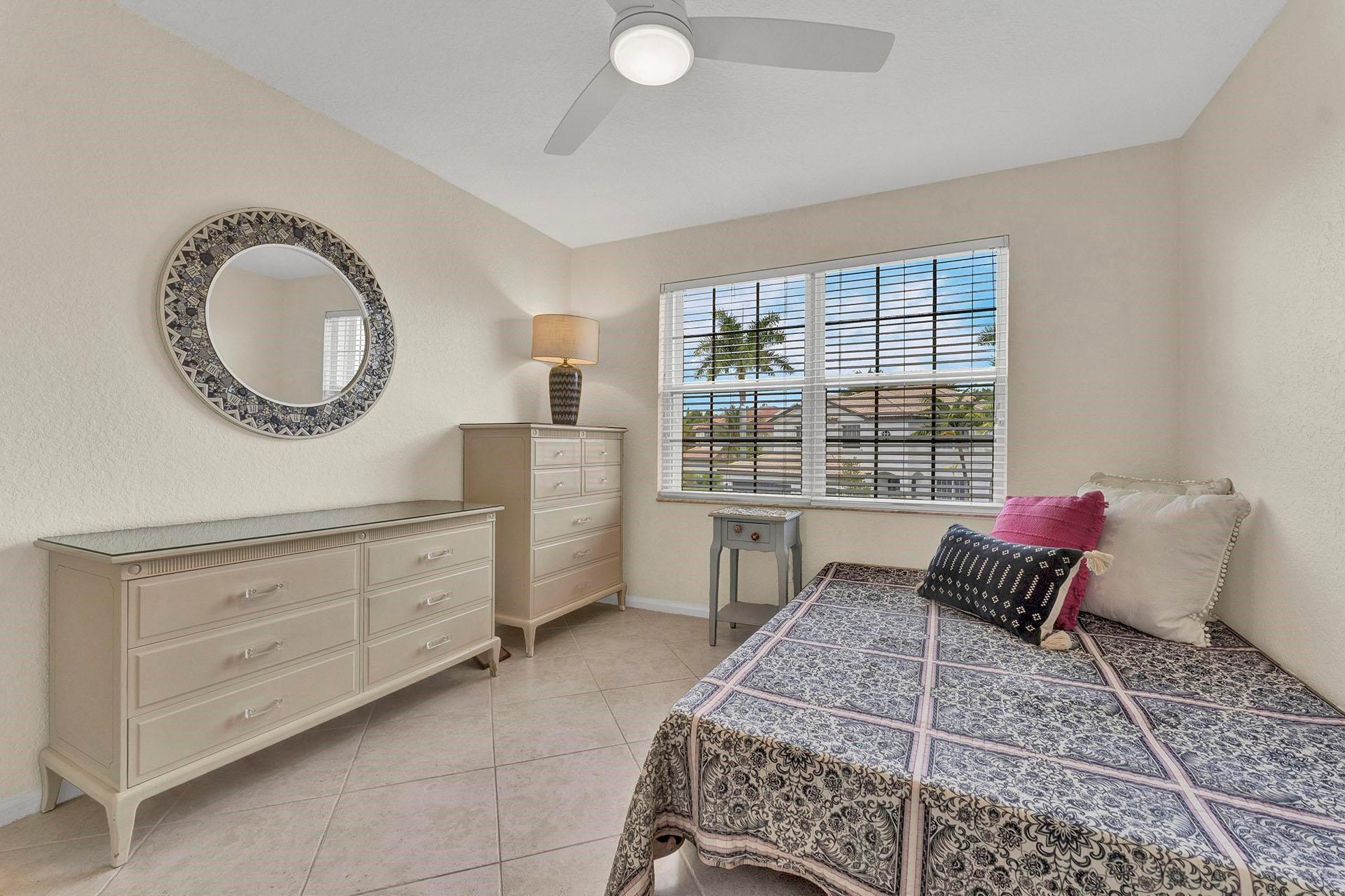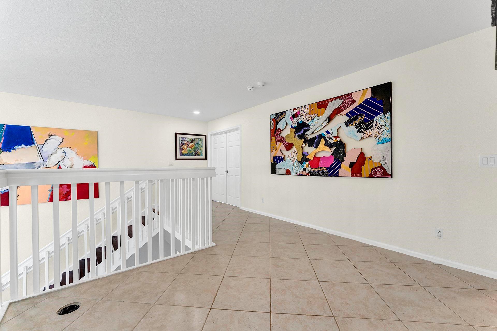 Enter this beautiful home & find high ceilings, ceramic tile floors throughout, & beautiful natural light! Large kitchen features granite counters, white cabinets, stainless steel appliances including 2023 refrigerator, & oversized pantry! Relax in this ideal backyard! Salt water pool (new pool pump) overlooks lake w no neighbors visible across. Avocado, papaya, mango, coconut & orange trees! Large covered patio! Fully fenced yard! Self watering bowl for furry friends! New irrigation pump & system uses water from lake! 1 bedroom 1 updated full bath on 1st floor. Primary bedroom features sitting area, 2 walk in closets, ensuite bath w shower and tub! Loft/bonus area upstairs. Two 2021 Trane ACs w UV lights, WH=2023, W/D 2023, & exterior just painted! HOA includes cable, trash, & internet!