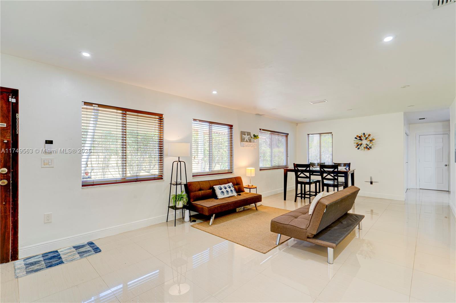 Coral Gables Gem – Furnished & Move-In Ready! This beautifully remodeled 3-bedroom, 2-bathroom home comes fully furnished and features a spacious family room, impact windows, and elegant recessed lighting throughout. The modern kitchen is equipped with stainless steel appliances, granite countertops, and rich wood cabinetry, all complemented by sleek porcelain tile flooring and an open layout. After a long day, unwind in the inviting patio area or explore nearby Miracle Mile and the Shops at Merrick Park—just 7 minutes away. Conveniently located near the University of Miami, banks, and shopping. The hurricane-proof impact windows not only provide superior storm protection but also offer exceptional sound insulation from Bird Road.