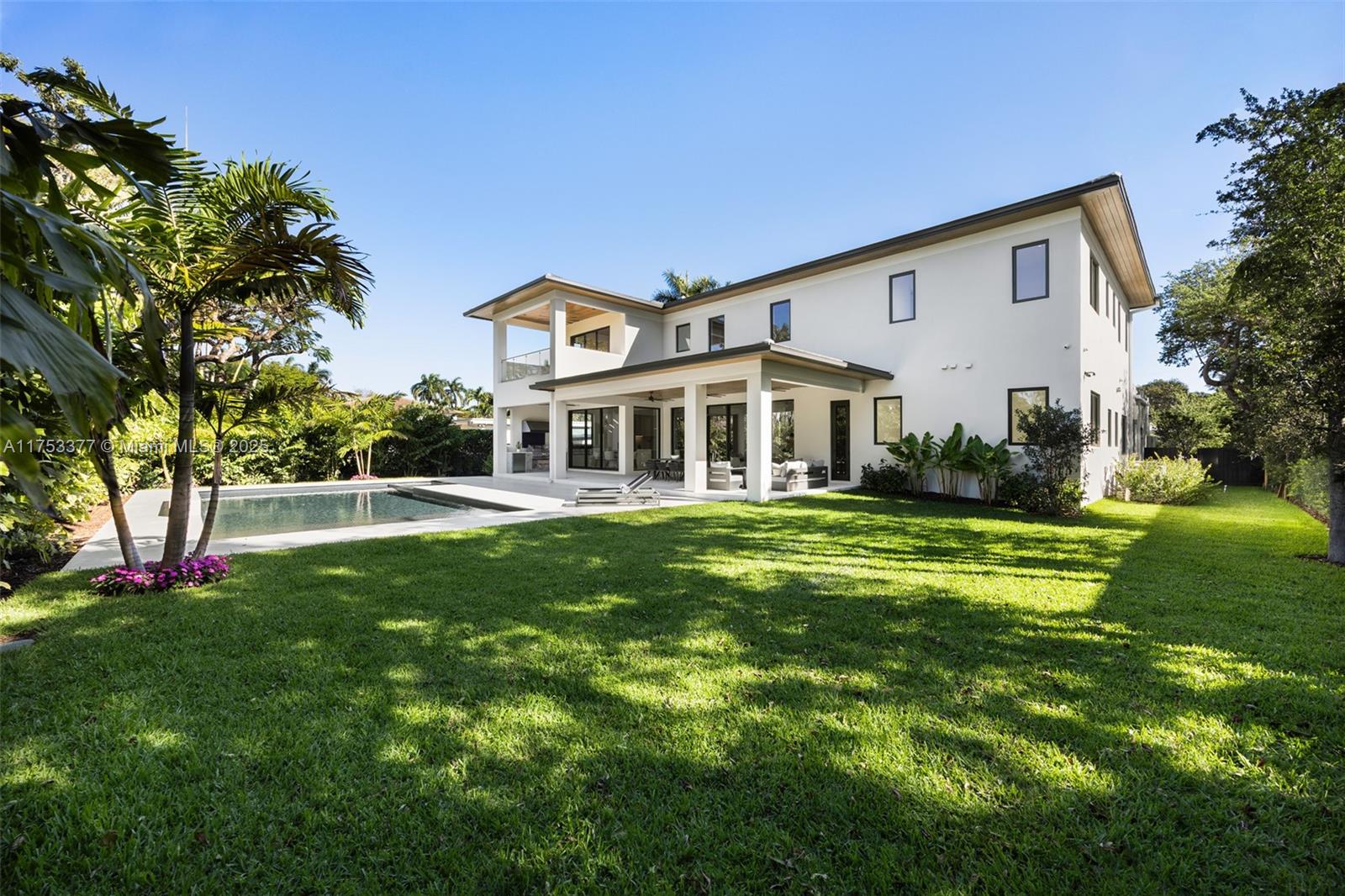 Set in prime South Miami location is this extraordinary 2025 tropical modern 7,827 total sq. ft. home on oversized 16,400 sq. ft. north/south deep lot with extra-large garden. High end finishes including Italian ITALKRAFT kitchen/closets, Dekton countertops, Sub-Zero/Wolf appliances & dual kitchen islands/dishwashers. Interior features include invisible hinge doors with magnetic locks, Lutron lighting system, up/down bar stations, natural light dual master closets and office/gym. High efficiency A/Cs, high res. security cameras/ADT alarm, Cat-6 prewired system, and city natural gas connection. Love the resort-style salt water heated pool, custom stainless steel summer kitchen with 1,000 sq. ft. of covered terrace and cabana bath. Minutes from top private schools, restaurants and shopping.