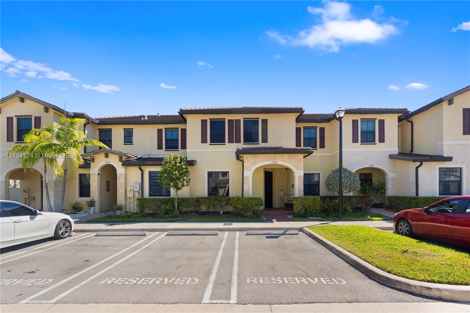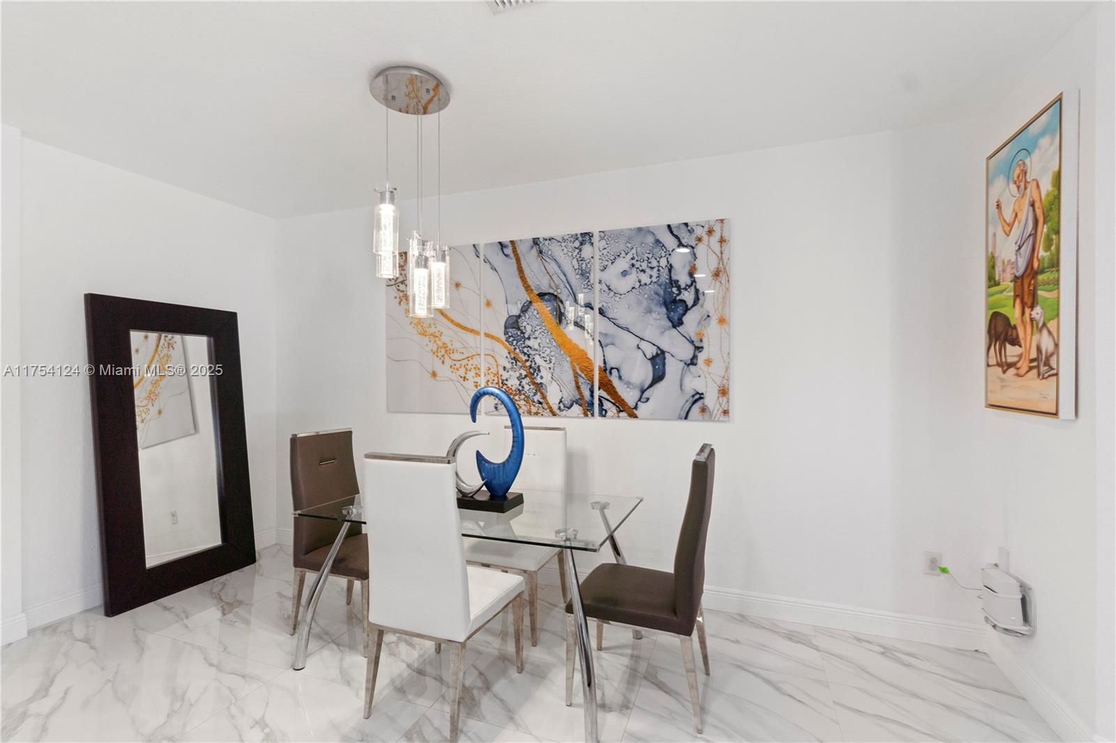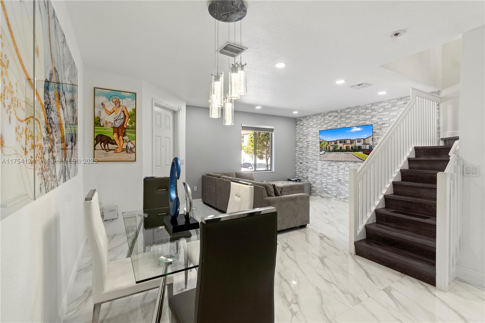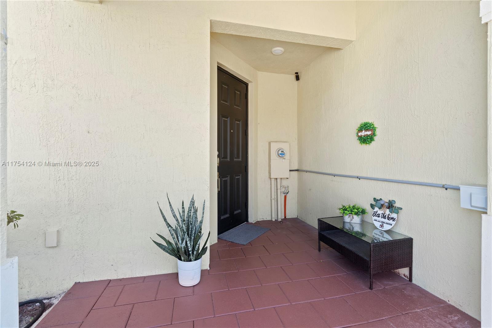 This is the ONE!! Come fall in love with this STUNNING turn key townhome in the beautiful Resort Style community of Aquabella in Hialeah Gardens. As you enter , you can't help but notice the HUGE 32 inch MARBLE FLOORS that flow through the entire downstairs. Fresh paint and newer fixtures Impact windows and doors on first floor. The kitchen has been updated and this unit has 2 family room areas and separate dining. The patio has an extended Aluminum roof that is impact resistant for extra entertaining space and lovely pavers too. Going upstairs you will notice the modern floors in all bedroom. The bathroom are gorgeous with marble floors, Glass enclosed showers and updated vanities. Blackout shading on all windows too! The Ac has a UV light for cleaner air! Come see this Beauty TODAY