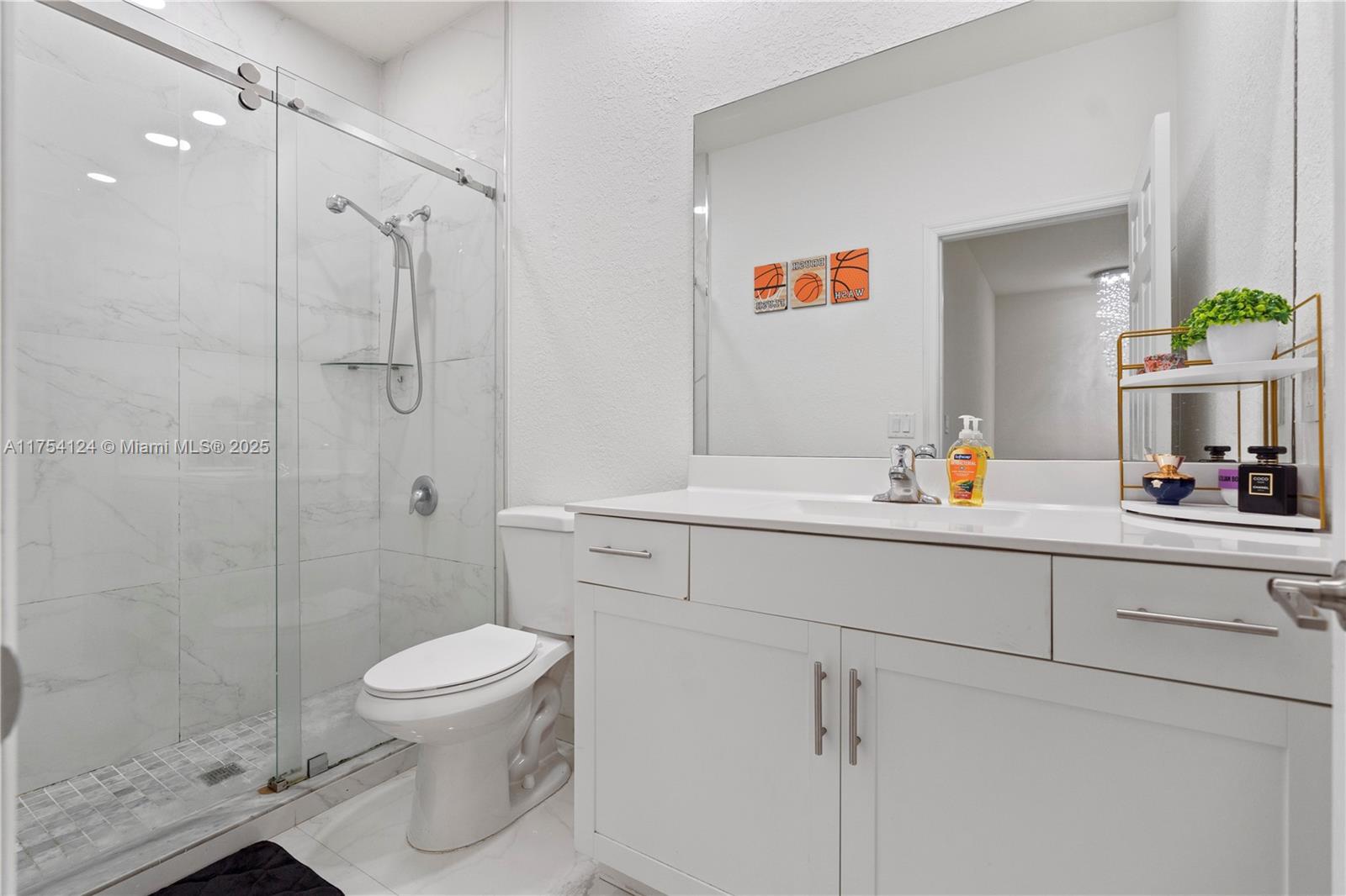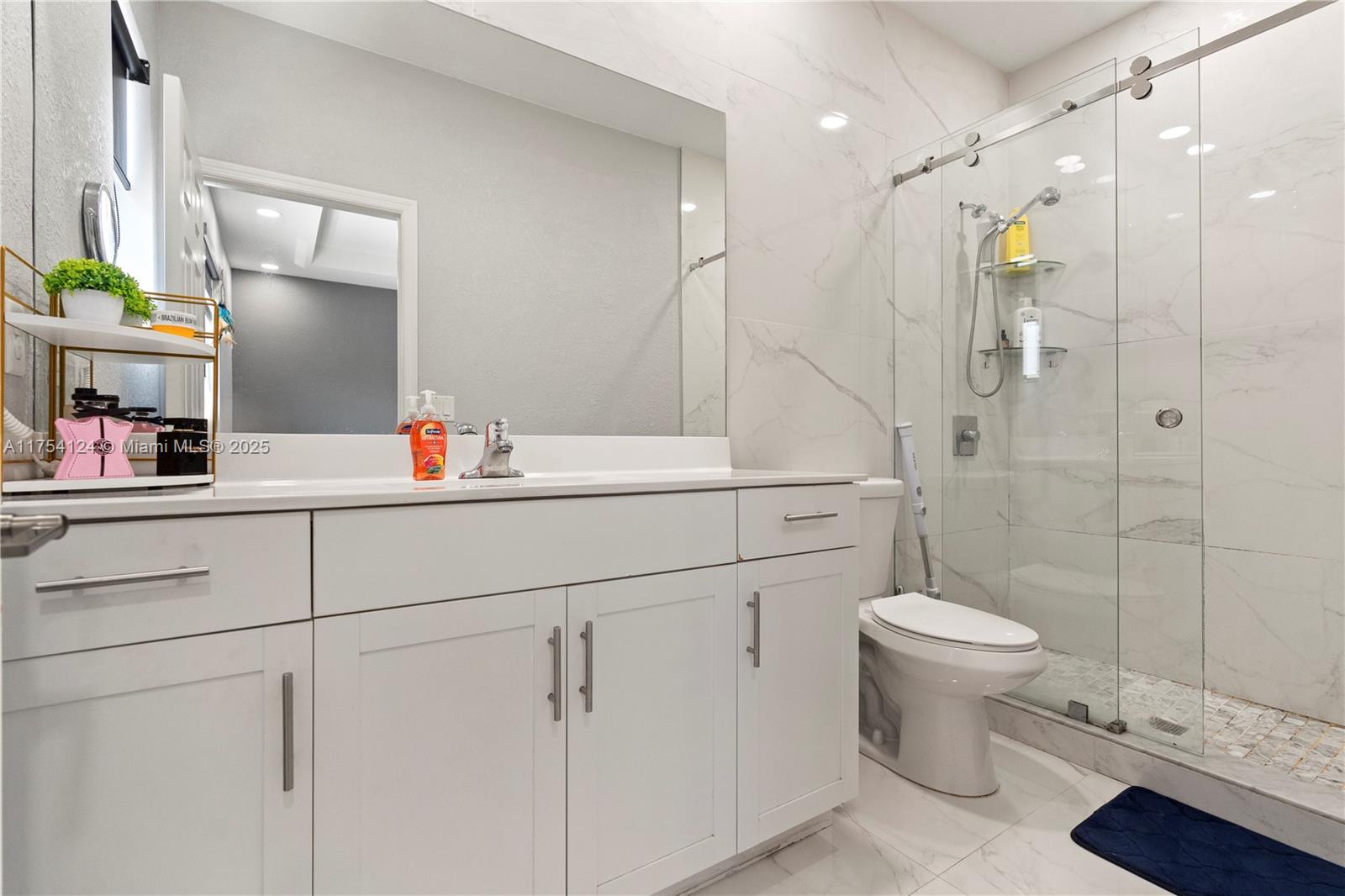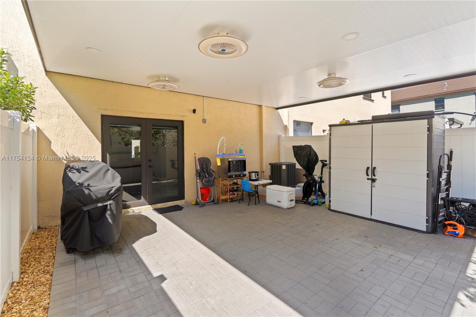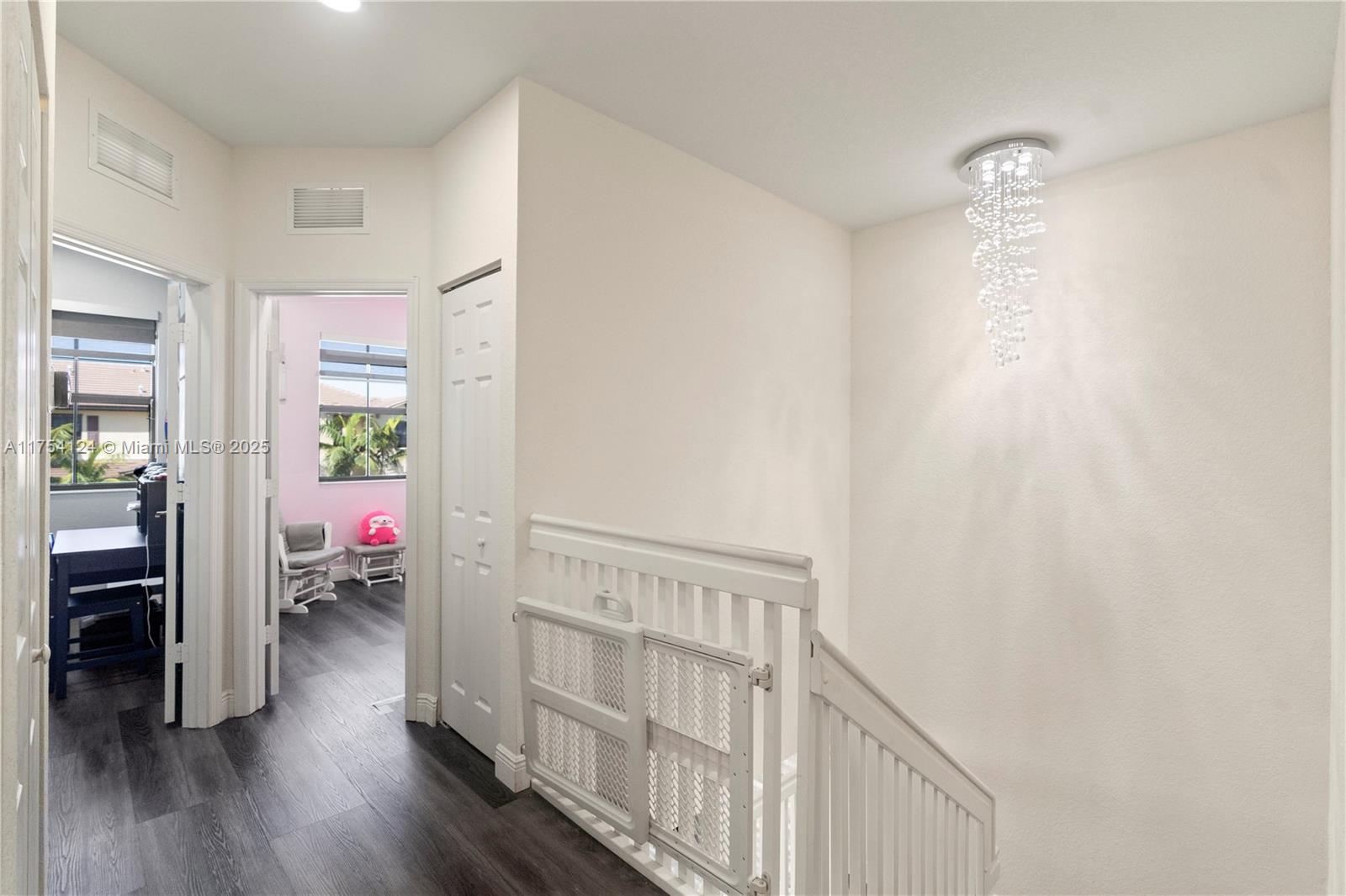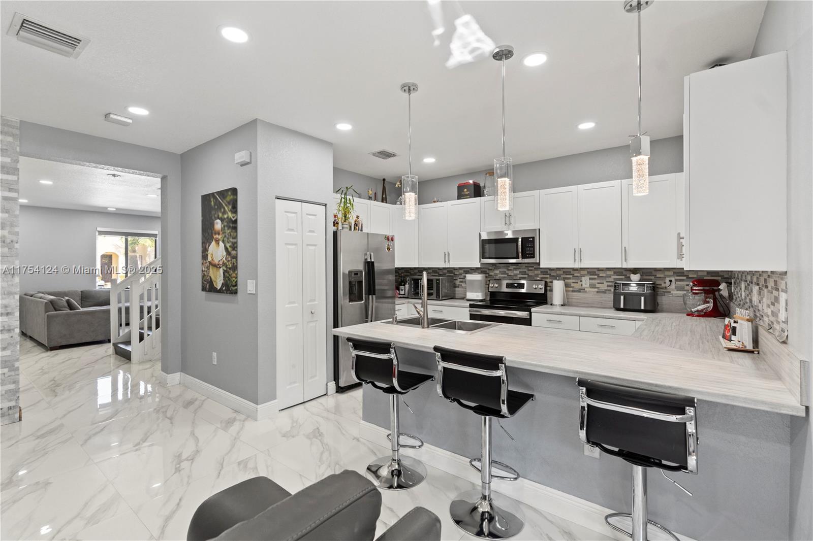 This is the ONE!! Come fall in love with this STUNNING turn key townhome in the beautiful Resort Style community of Aquabella in Hialeah Gardens. As you enter , you can't help but notice the HUGE 32 inch MARBLE FLOORS that flow through the entire downstairs. Fresh paint and newer fixtures Impact windows and doors on first floor. The kitchen has been updated and this unit has 2 family room areas and separate dining. The patio has an extended Aluminum roof that is impact resistant for extra entertaining space and lovely pavers too. Going upstairs you will notice the modern floors in all bedroom. The bathroom are gorgeous with marble floors, Glass enclosed showers and updated vanities. Blackout shading on all windows too! The Ac has a UV light for cleaner air! Come see this Beauty TODAY