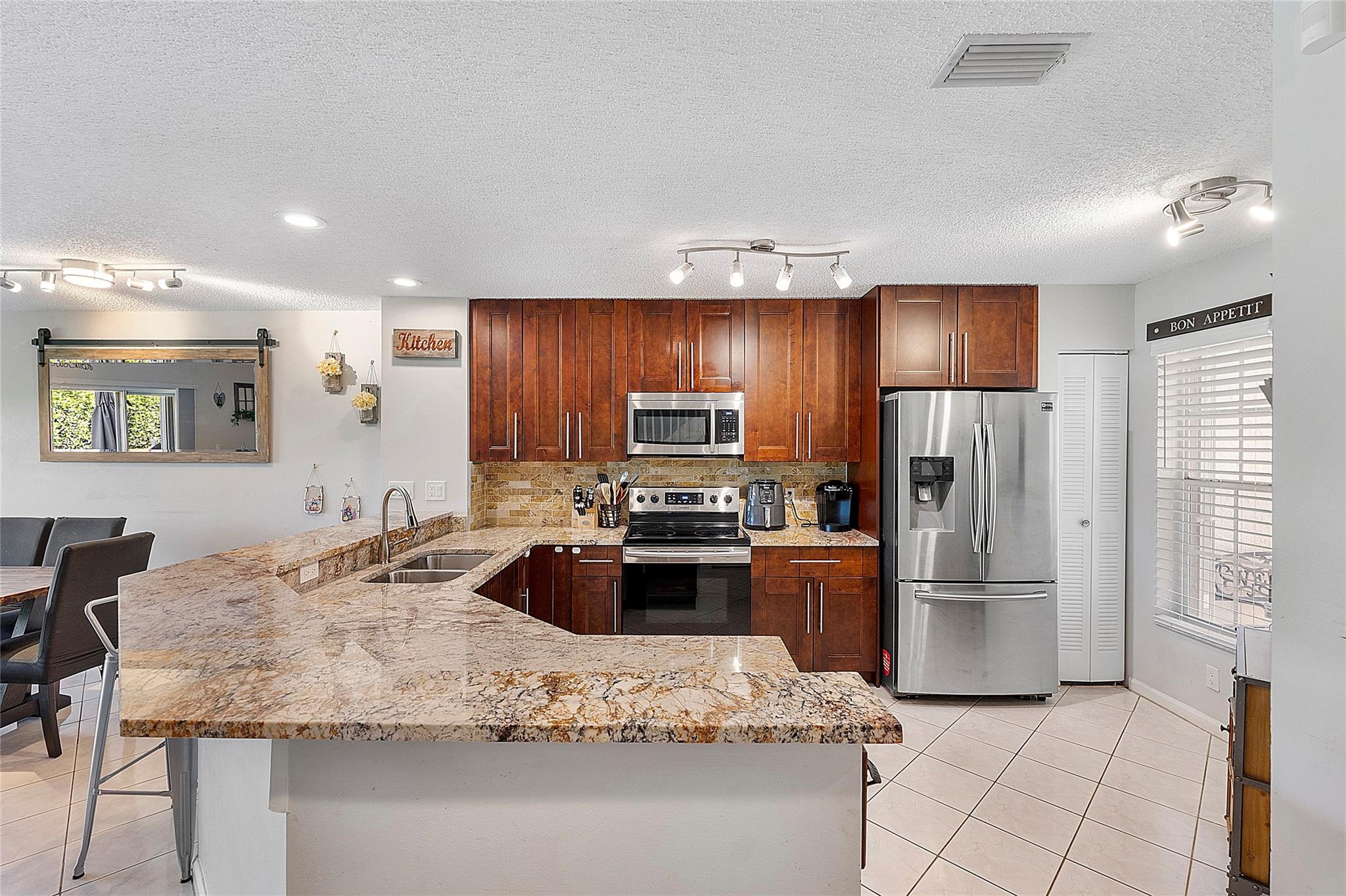 Incredible location for this 3/2.5 townhome in Coral Lake of Boca Raton. Just steps away from the new and very popular Uptown Boca Plaza. This amazing townhome has an attached 1 car garage with 2 parking spots in front, interior features an open floor plan, a remodeled kitchen with wood cabinets, stone countertops and stainless steel appliances, tile flooring downstairs and high-end laminate upstairs with no carpet in the home, upgraded bathrooms, front porch with seating area, extended paver private patio with lots of land behind the home. This home is a must see!