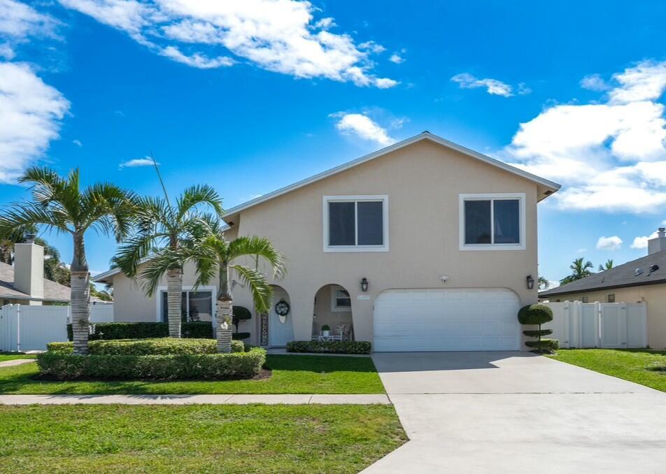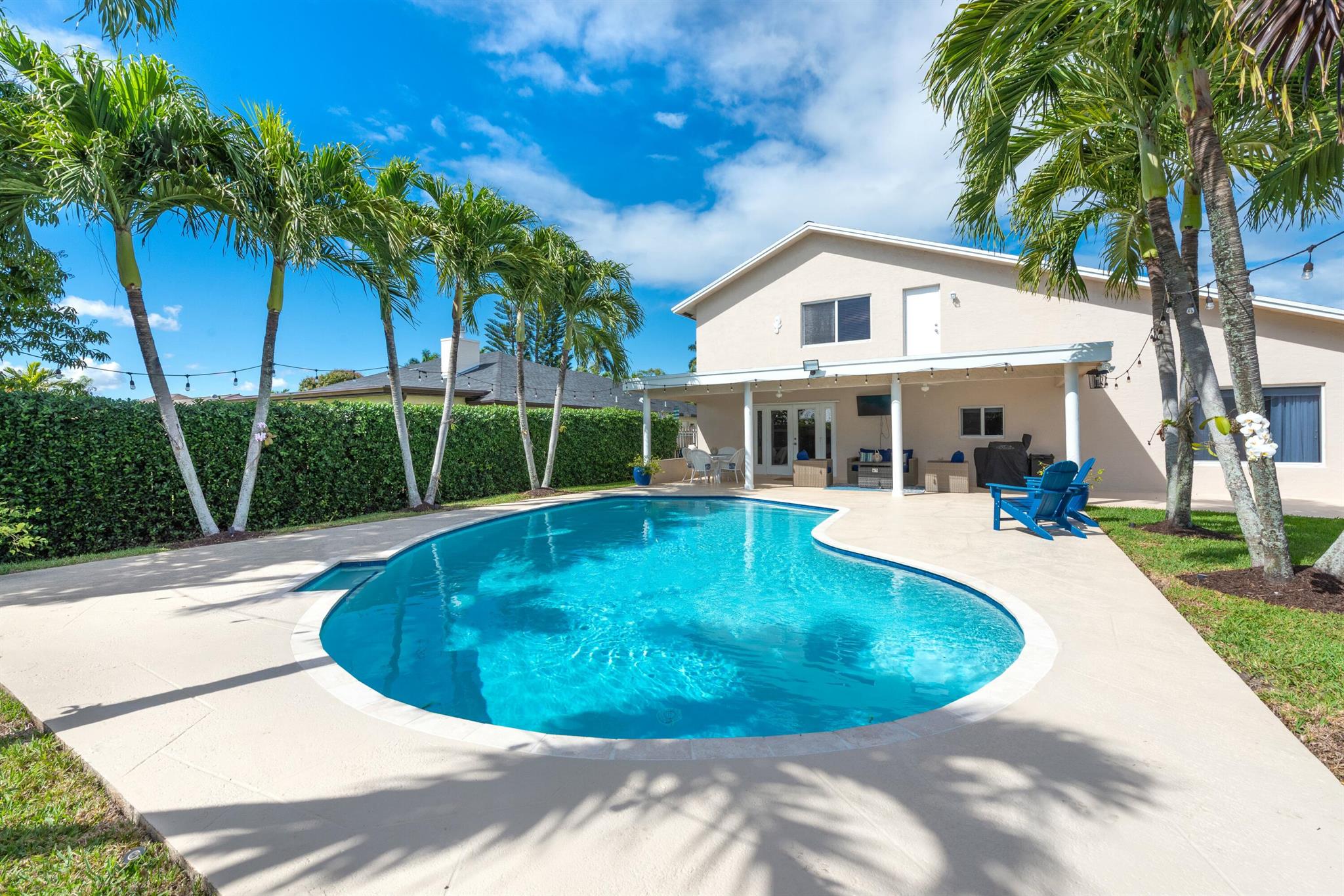 Experience the Best of South Florida Living!Tucked away on a quiet cul-de-sac in the desirable Lake Mango Shores neighborhood, this beautifully updated 3bed/2 bath, two-story pool home offers the perfect blend of style, comfort, and convenience. High ceilings with exposed beams, an airy open-concept layout, and modern finishes create a bright and inviting atmosphere. The light-filled living and dining areas seamlessly flow to a covered patio, perfect for entertaining or unwinding. Step into your private backyard oasis, featuring a renovated pool (2022), lush tropical landscaping, and a spacious seating area designed for year-round gatherings. This move-in-ready home boasts a brand-new roof (2023), a completely remodeled interior, and hurricane-impact windows for peace of mind.