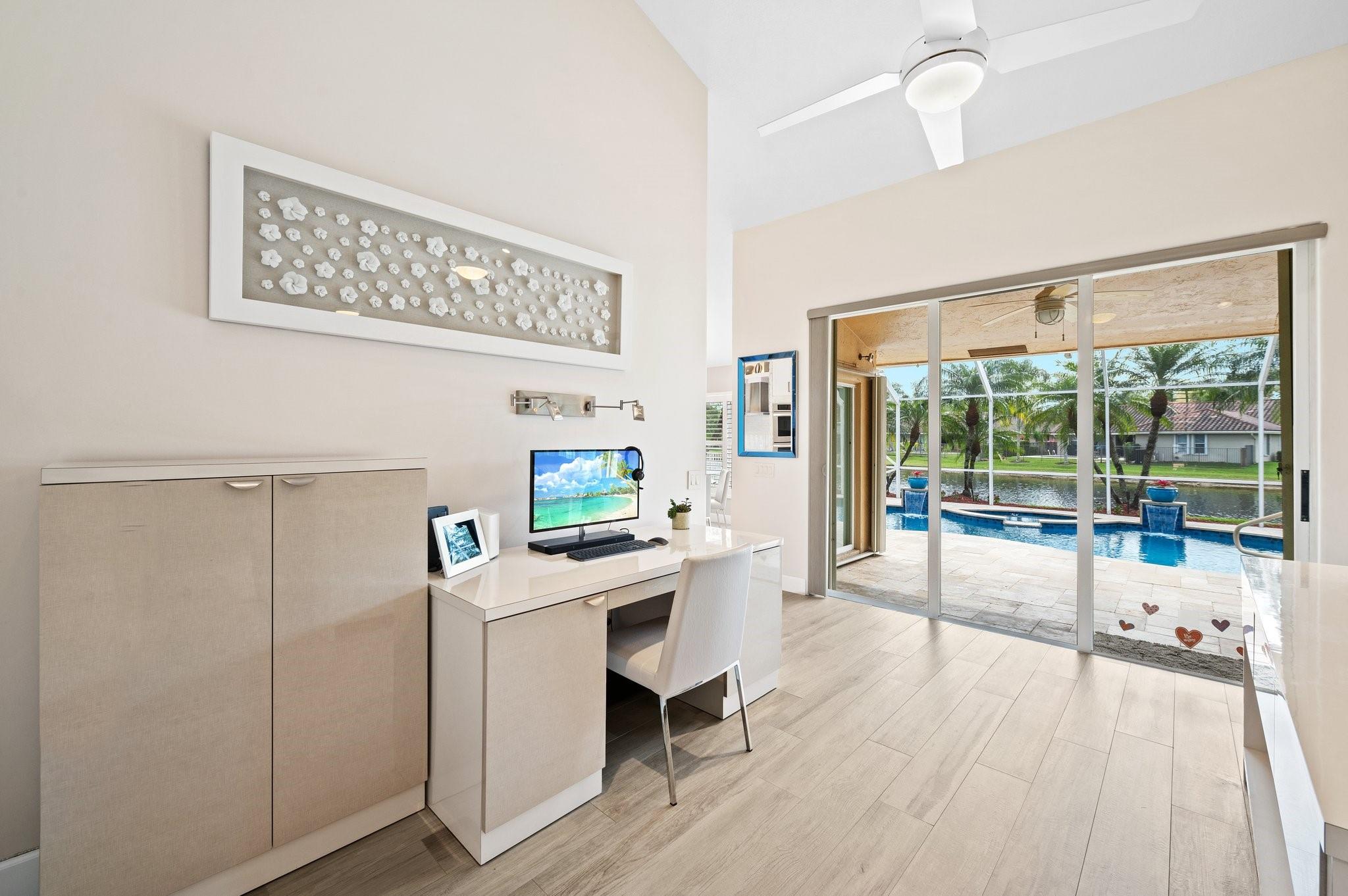 As you step inside this meticulously maintained residence, you're welcomed by breathtaking water views that span the entire back of the home. Sliding glass doors open wide to let the outside in. Every room offers functional upgrades with great attention to detail. This custom designed kitchen features wooden pullout cabinet organizers, stainless steel doors, and real marble countertops. The pantry and all closets provide ample storage with sturdy custom-built shelving and drawers. Both bathrooms have been upgraded with luxurious finishes, including a spacious jetted tub in the primary. The fenced enclosure beside the screened pool area is perfect for children and pets. Full hurricane protection and security system for your comfort. This beautiful home is ready for you to move right in!