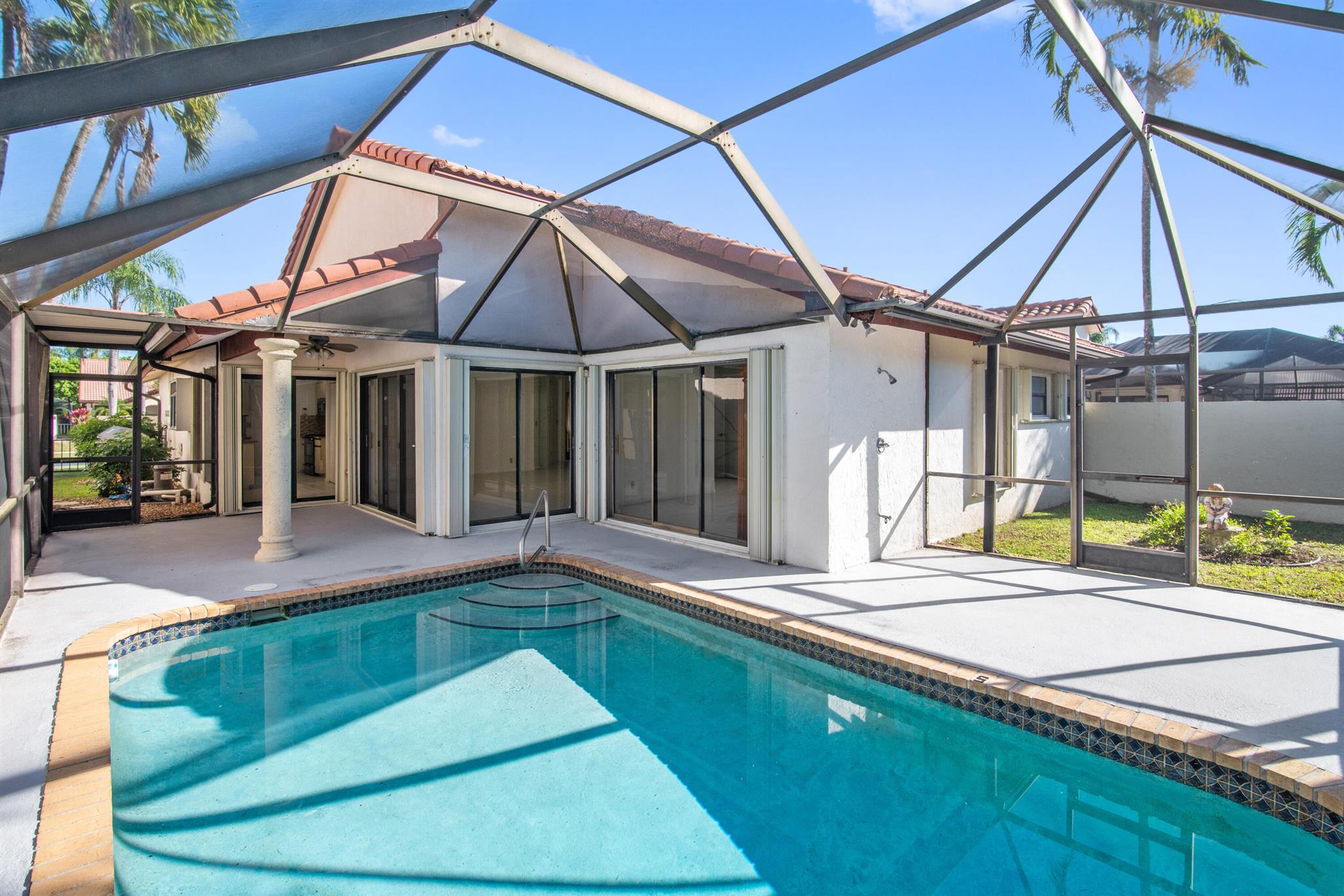 Come see this turnkey 3 bedroom/2 bathroom 1576 SQFT home with granite kitchen countertops, a stainless-steel split sink, a bright and naturally lit living room overlooking the covered patio and private screened-in pool, vaulted ceiling throughout, dual vanities in the master bath, jacuzzi tub with separate shower, walk-in closets, hurricane protection, two-car garage, poolside outdoor shower, low HOA fees, community tennis court, conveniently located next to Del Prado Elementary, near 3 grocery stores (Grove Kosher/Winn Dixie/Publix), the Boca Raton Town Center Mall, Sugar Sand Park, Boca Del Mar parks, schools, highways, and places of worship. It is investor friendly and can be rented immediately with a long-term Lease. Roof is 2008. AC is 2020.