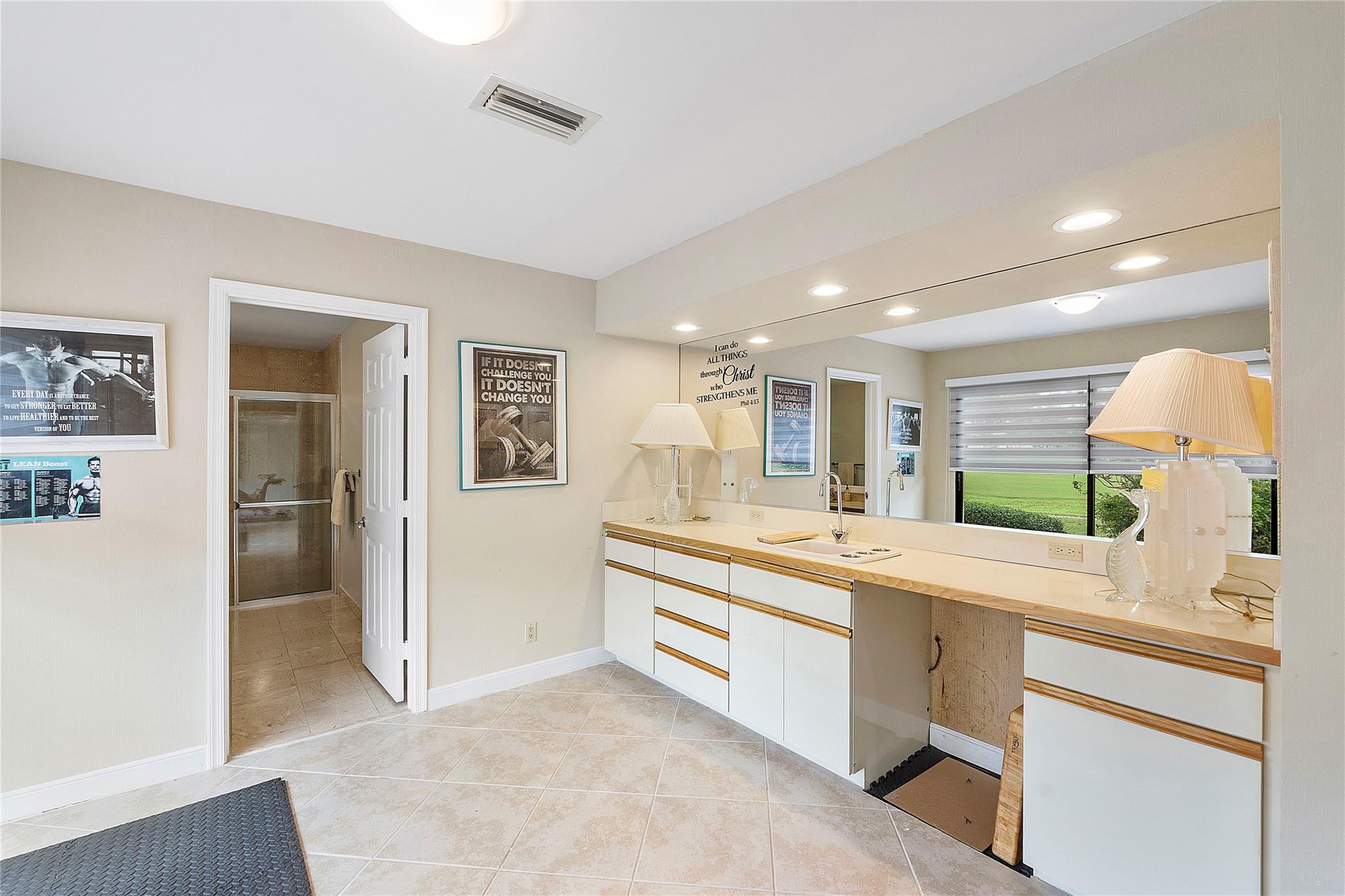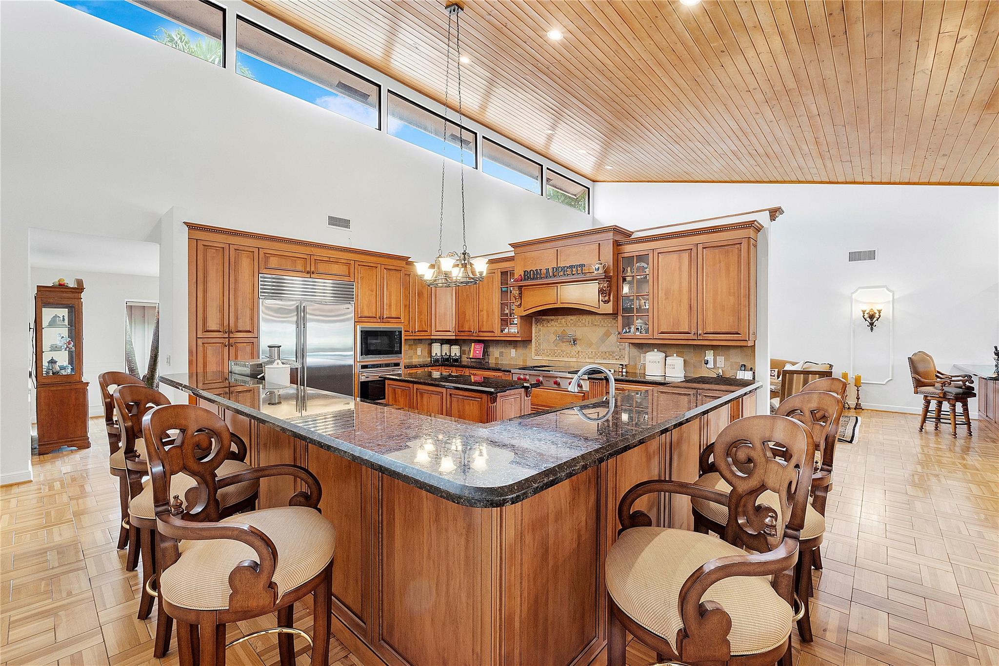Welcome to your dream home on a tranquil cul-de-sac, Spectacular views of the 14th and 15th holes at Eagle Trace.! This stunning 5-bedroom, 4.5-bathroom. Enter to find a chef's kitchen equipped with a spacious center island, abundant counter space, a Sub-Zero refrigerator, and a Wolf gas stove with a built-in grill. Fully entertain at your own bar area equipped with sink and icemaker. 3 bedrooms enjoys its own en-suite bathroom, ensuring privacy for all. All rooms are very large! The expansive primary suite features an oversized closet and a spa-like bathroom complete with a dual vanity, a shower with dual showerheads, and a relaxing Jacuzzi tub. Enjoy the sparkling pool overlooking the beautiful golf views and gorgeous sunsets. One of the best golf course locations in Eagle Trace.