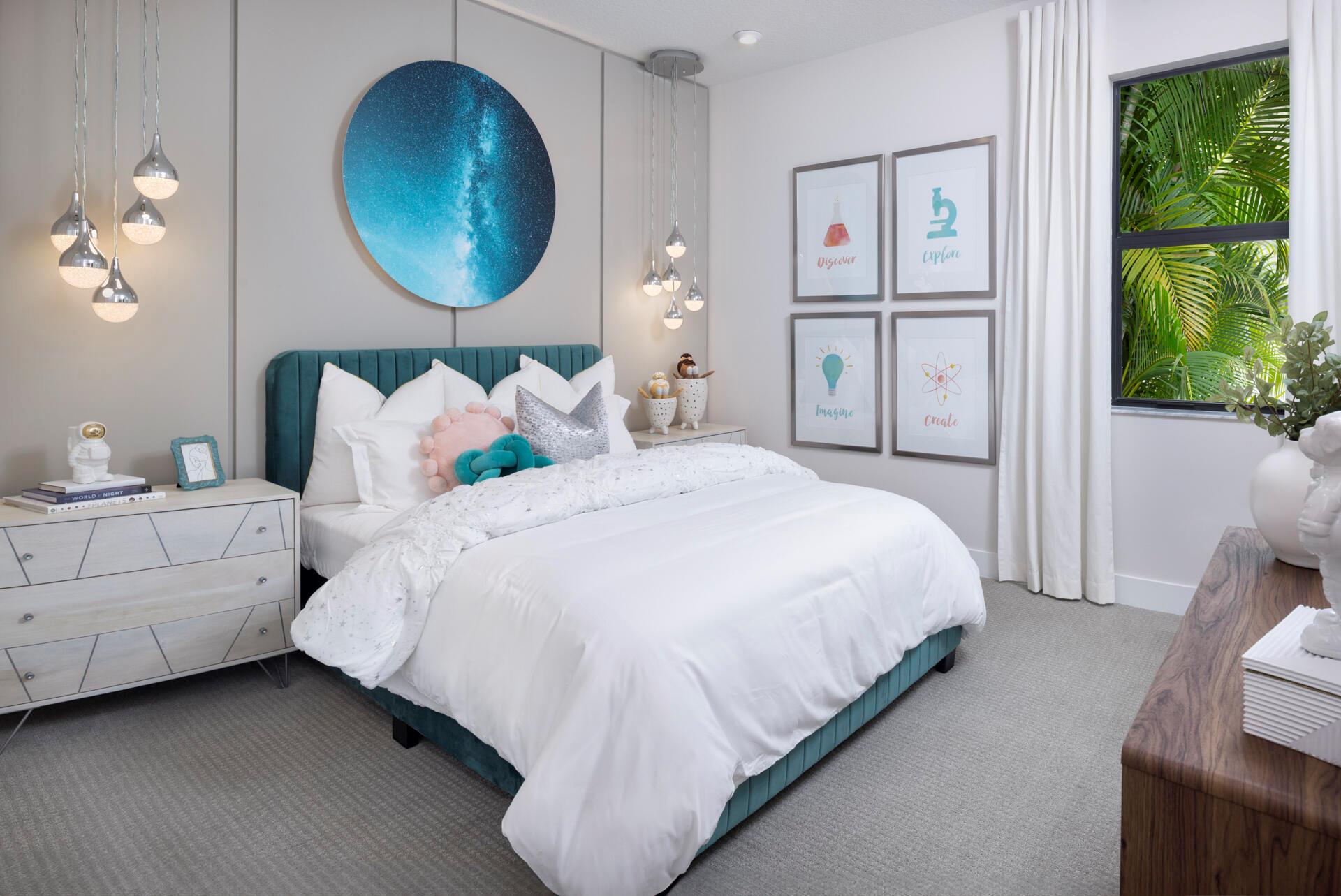 Located in the heart of Cooper City, just 15 miles southwest of Fort Lauderdale, this new 5-bed, 4.5-bath home sits on an intimate cul-de-sac. With 4,395 sq. ft. of living space, the Cezanne open floorplan offers luxury and comfort. The gourmet kitchen includes a walk-in pantry and island breakfast bar, while a sliding door opens to a backyard oasis with a custom pool and spa. The first floor features a guest bedroom with en-suite bath and a flex room with wet bar. Ascend the glass-railed staircase to the second floor where a cozy loft overlooks the great room, and the owner's suite offers a spa-inspired bathroom and dual walk-in closets. Bedroom 3 has a private balcony for scenic views of the neighborhood.