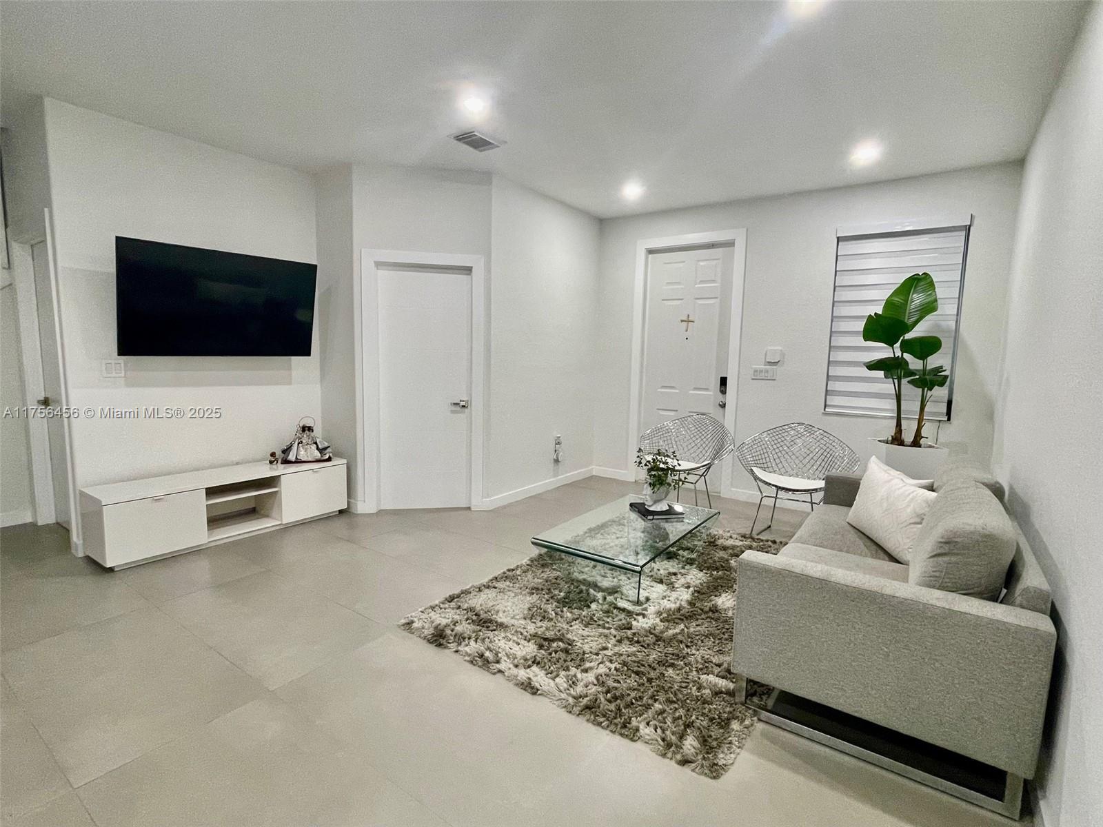 This stunning 3-bedroom, 2.5-bathroom home boasts 1,520 sq. ft. of modern, stylish living space. Designed with an open-concept layout, the living room, kitchen, and dining area flow seamlessly together, creating a bright and inviting atmosphere filled with natural light. The recently updated gourmet kitchen is a chef’s dream, featuring sleek quartz countertops, stainless steel appliances, and a spacious center island—ideal for meal prep and entertaining guests. The home’s interior exudes sophistication, with matte gray ceramic tile flooring throughout the downstairs. Each bathroom has been beautifully updated. This home effortlessly combines modern elegance with practical comfort, making it the perfect choice for contemporary living