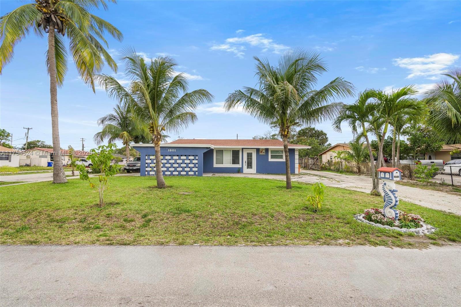Modern 4-bed, 2-bath corner-lot home in fast-growing Pompano Beach! Features a large circular driveway with space for multiple cars or a boat, plus a covered carport for added protection. Fully remodeled with impact windows, modern tile flooring, and spacious closets. Major updates already done! New roof, A/C, and electrical panels—only 2 years old. A solid, worry-free investment for your buyers. The backyard includes a newly remodeled pool, only needing the final Diamond Brite finish, allowing buyers to customize the final touch. Also features a 12x26 covered patio with a dedicated grill area, perfect for barbecues or relaxing in the shade with family and friends. Includes a separate storage/laundry room for added convenience. No HOA—flexibility for homeowners and investors!